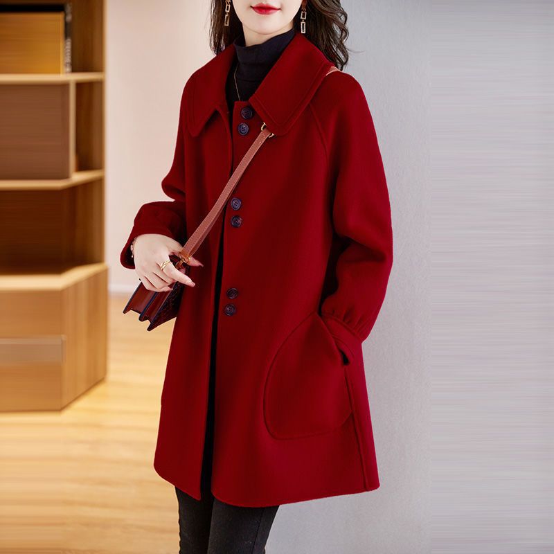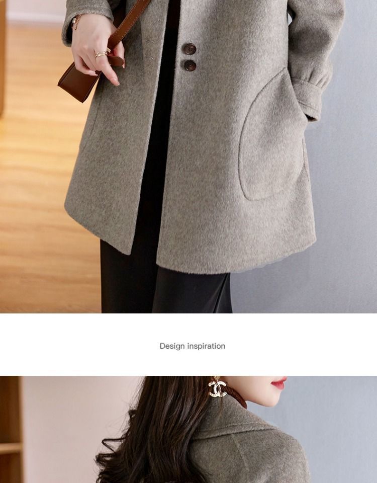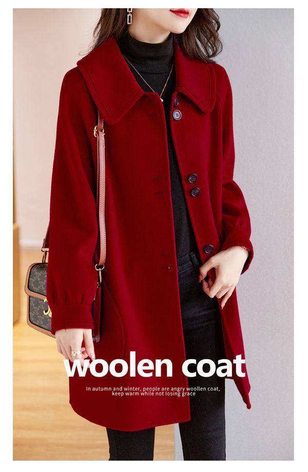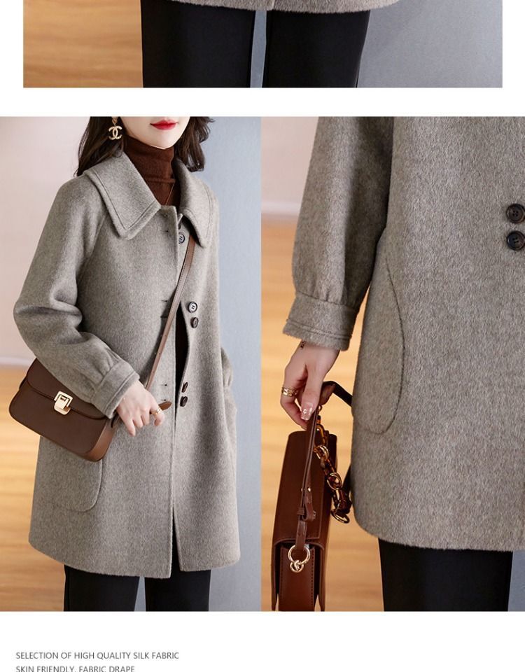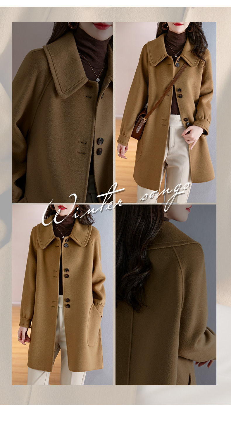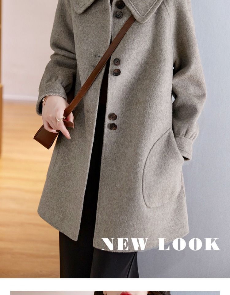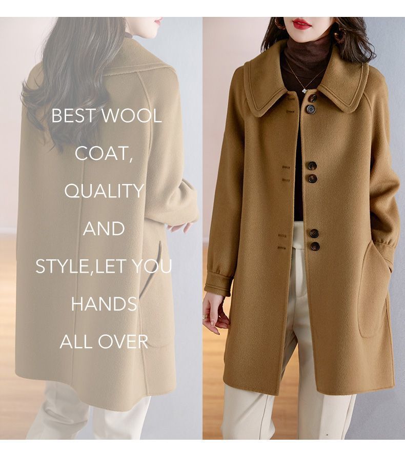 2025 여성 봄, 가을 새로운 한국 스타일 패션 느슨한 슬림 인형 칼라 하이 엔드 외국 스타일 모직 코트