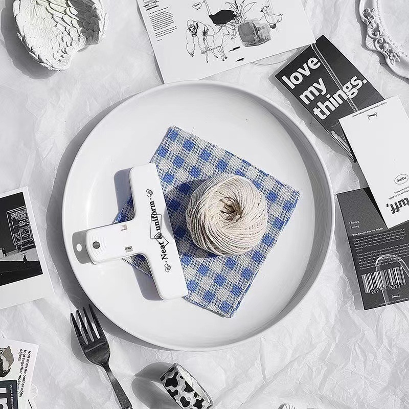 노르딕 플레이트 + 블루 그리드 매트 + 면 로프 + 마그네틱 클립