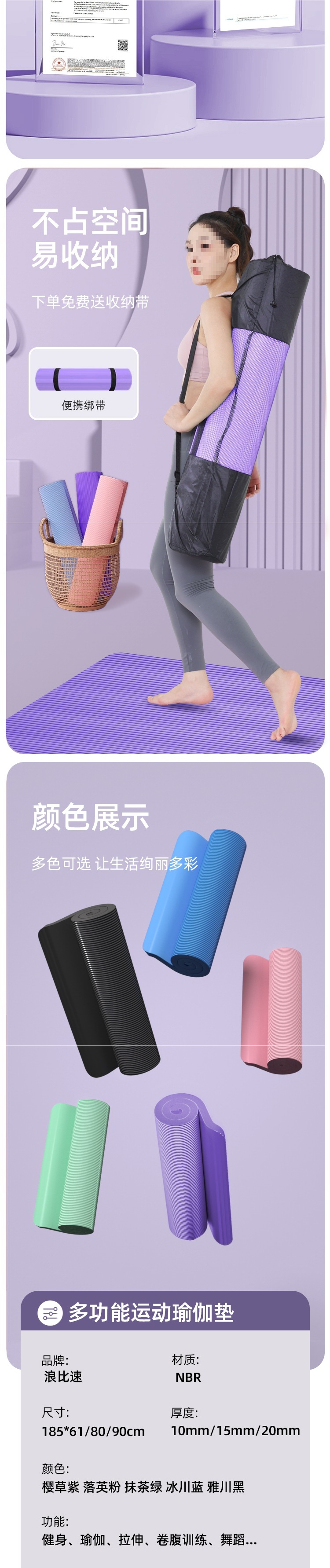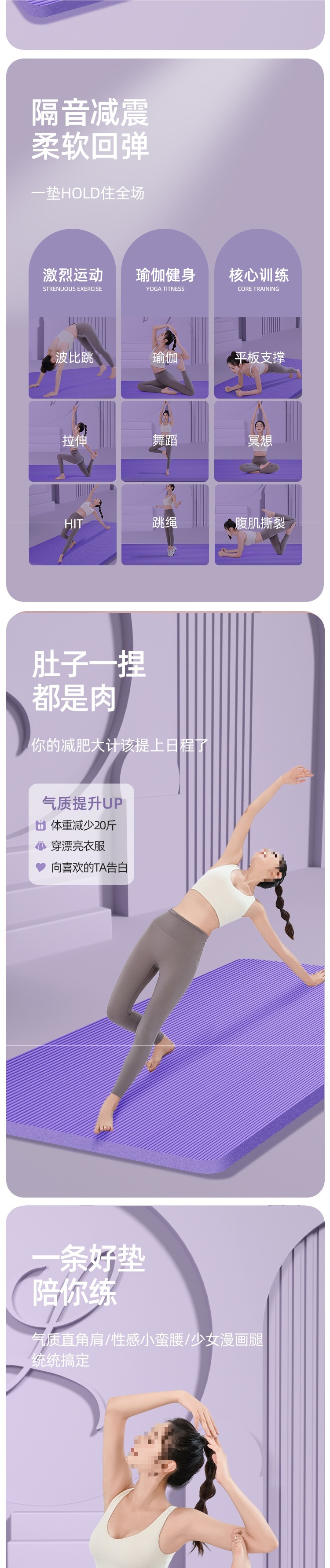 요가 매트, 피트니스 매트, 가정용 여성용 미끄럼 방지, 충격 흡수, 방음, 두껍고 넓어진 남성용 요가 댄스 매트