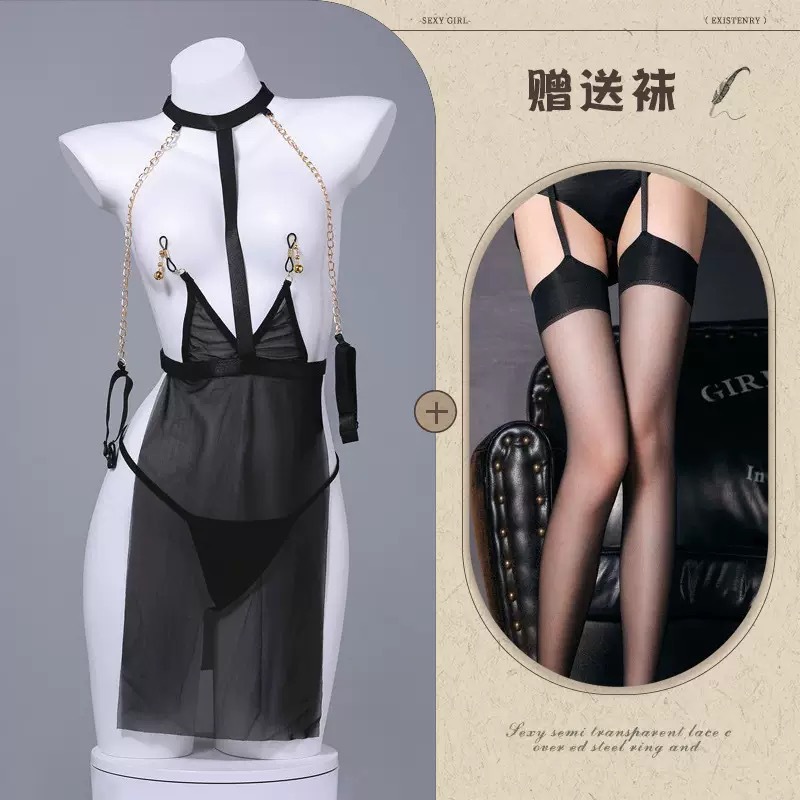 Ruyue의 섹시한 서스펜더 시스루 의상, 탈부착이 필요 없는 홀터넥 섹시한 잠옷, 속이 빈 등이 없는 유혹 SM 배송