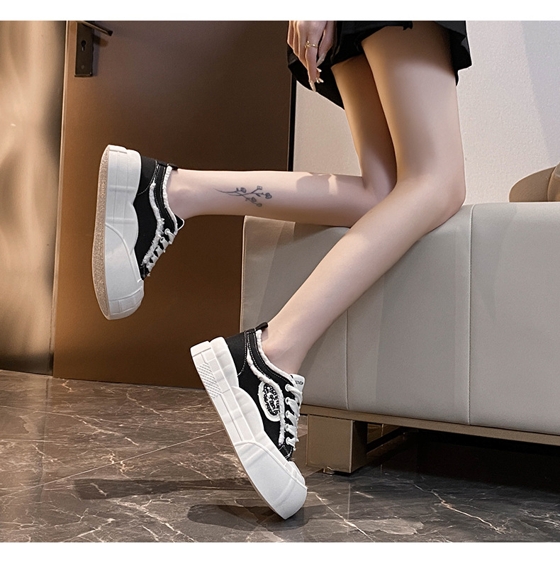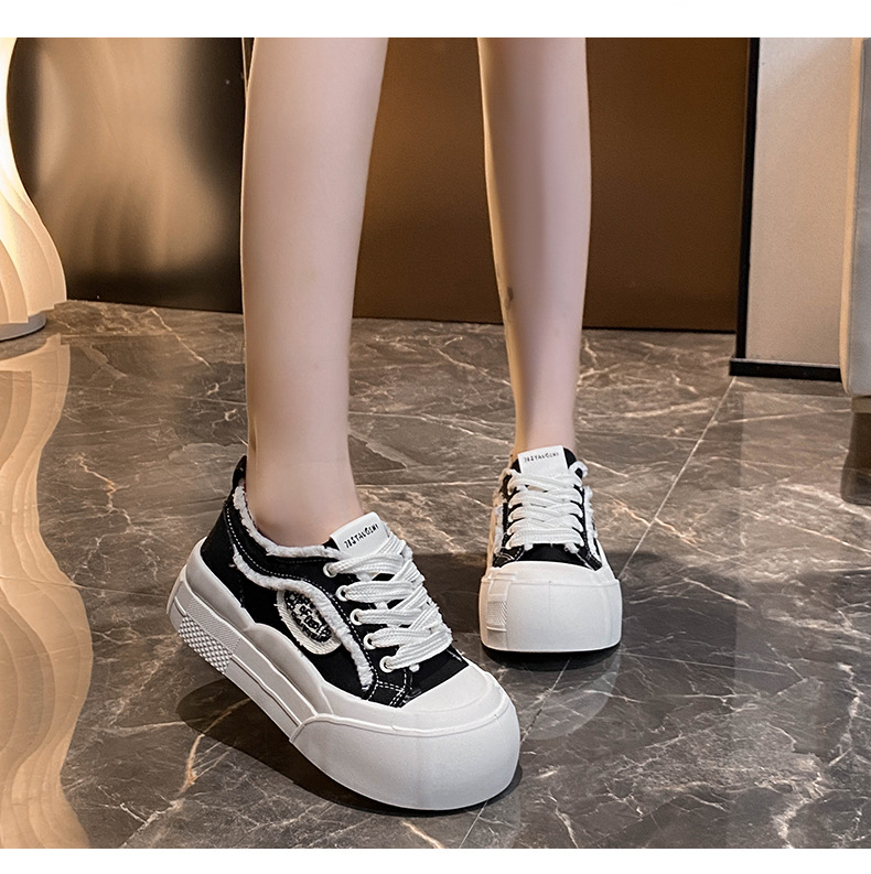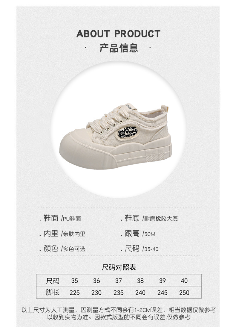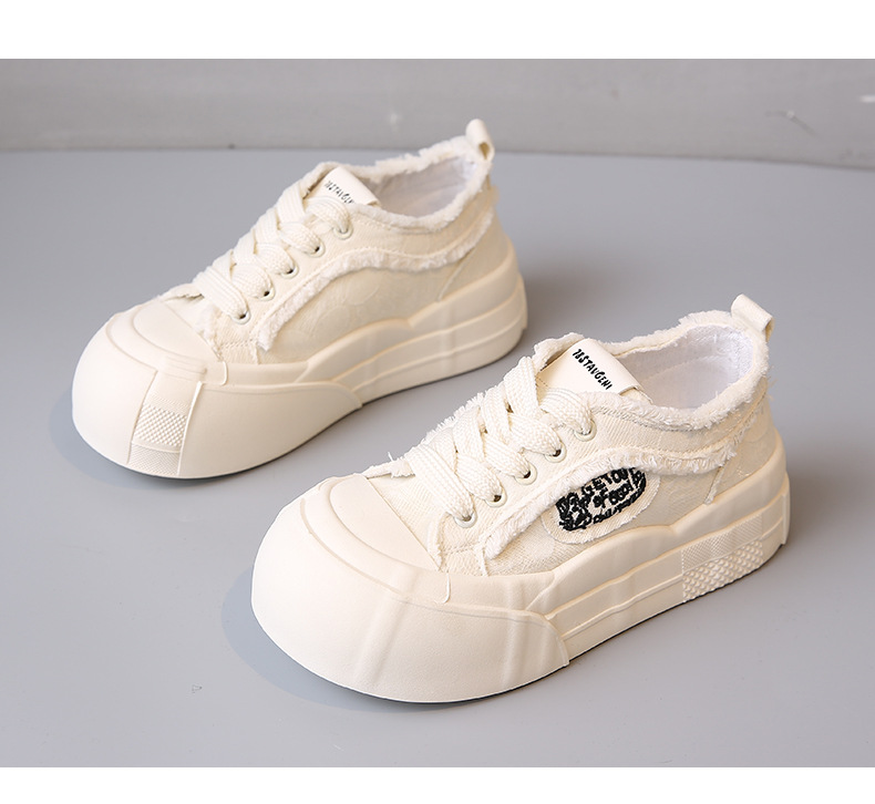 여성용 두꺼운 밑창 캔버스 신발, 로우탑 2025 봄 여름 신상 흰색 신발, 다용도 학생 캐주얼 운동화