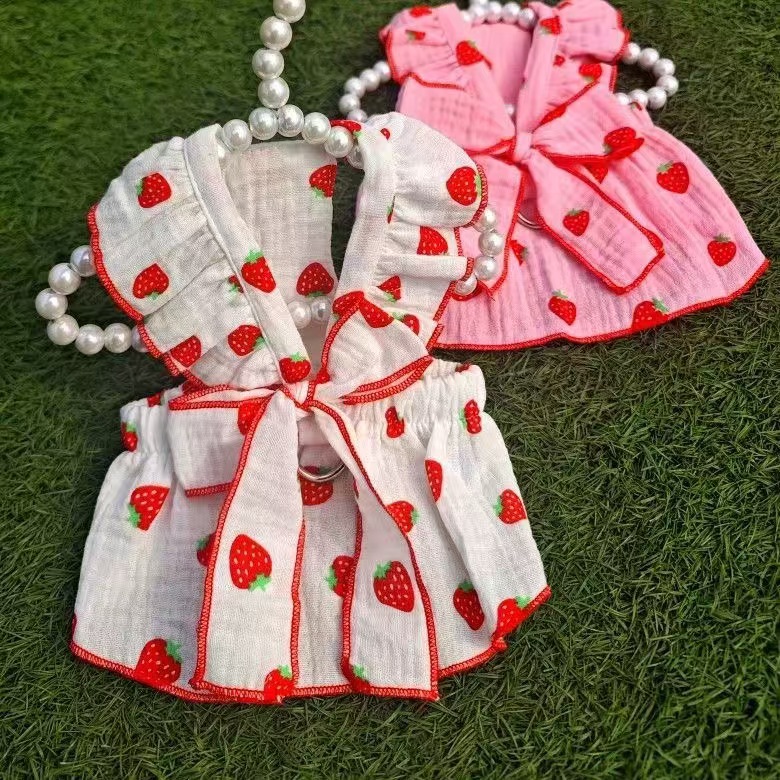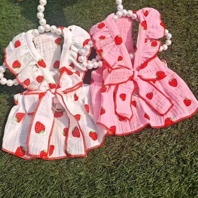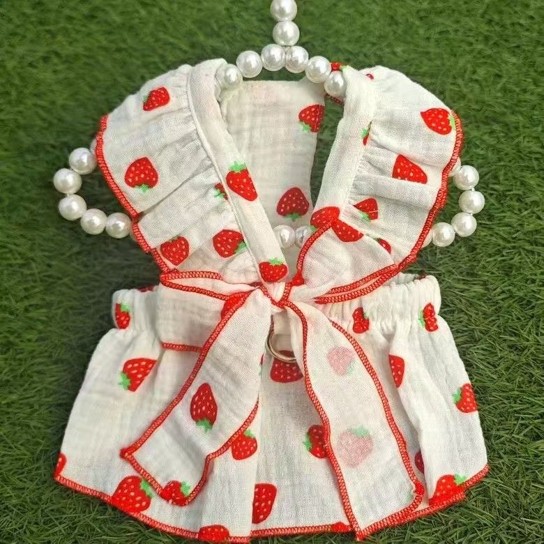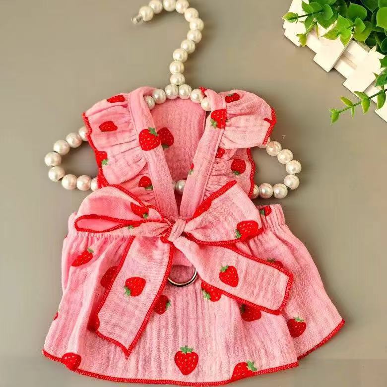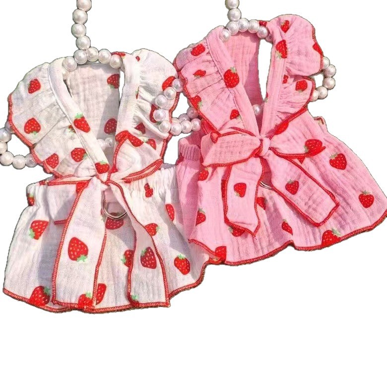 애완 동물 옷 여름 귀여운 딸기 활 공주 스타일 작은 개 테디 비숑 포메라니안 푸들 고양이 옷