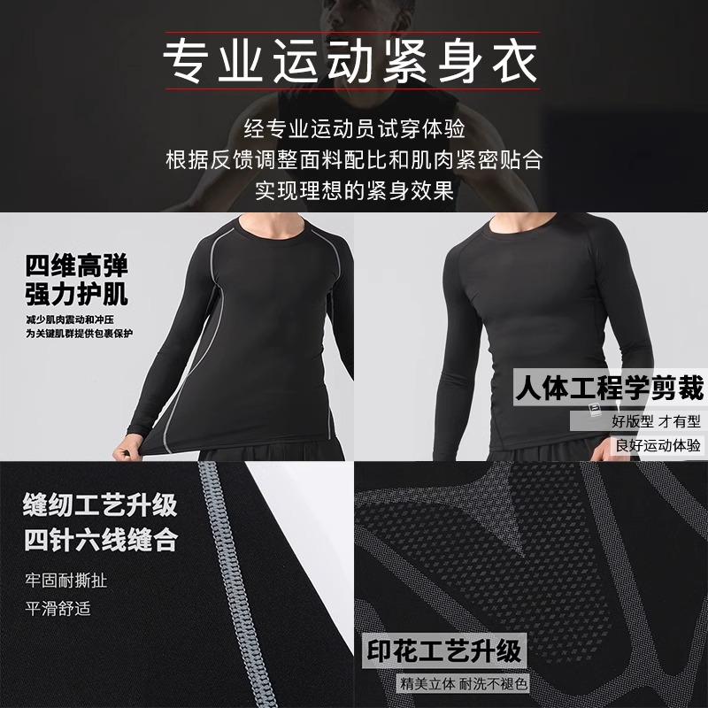 스포츠 스타킹 남성용 고탄성 속건성 긴팔 농구 축구 피트니스 사이클링 베이스 화이트 땀 흡수 티셔츠