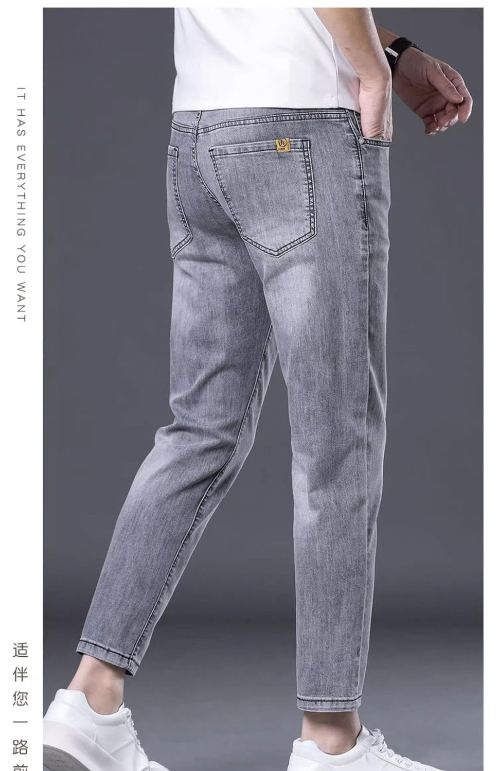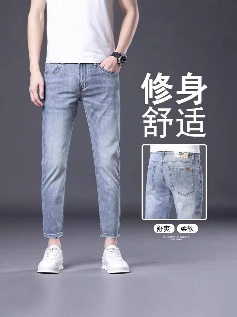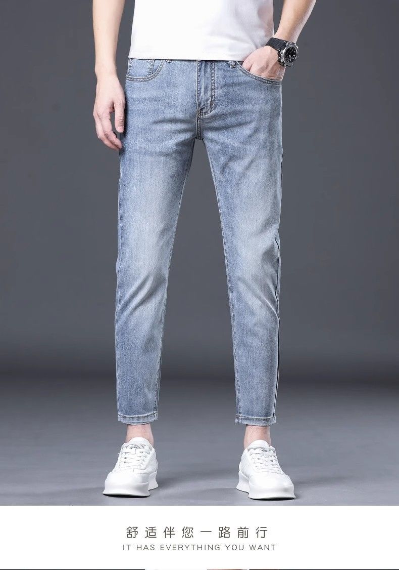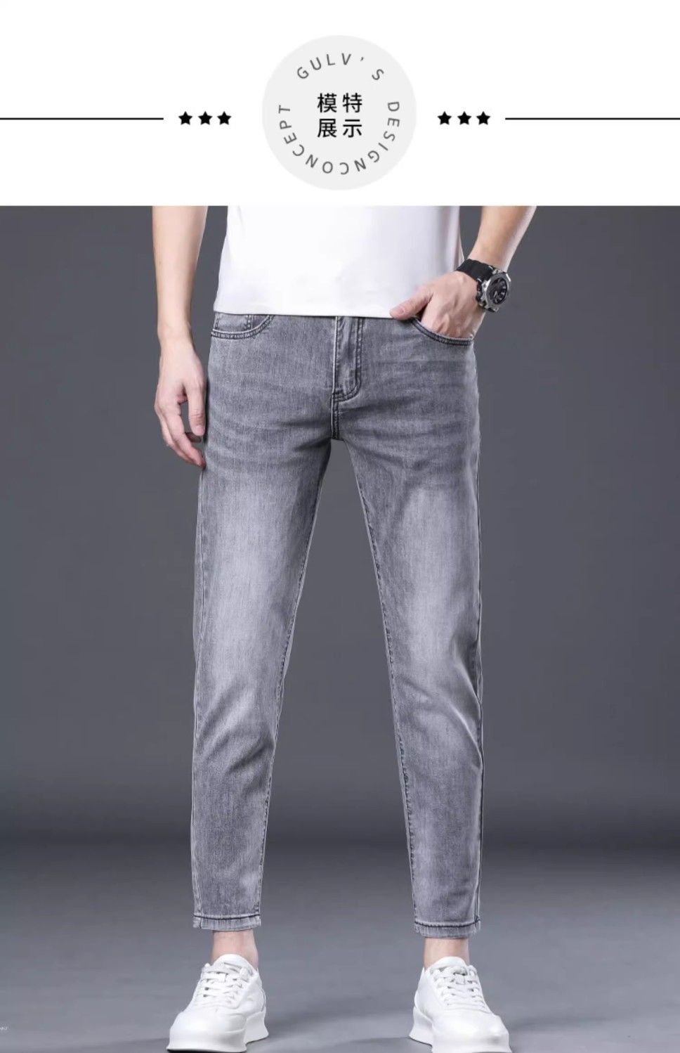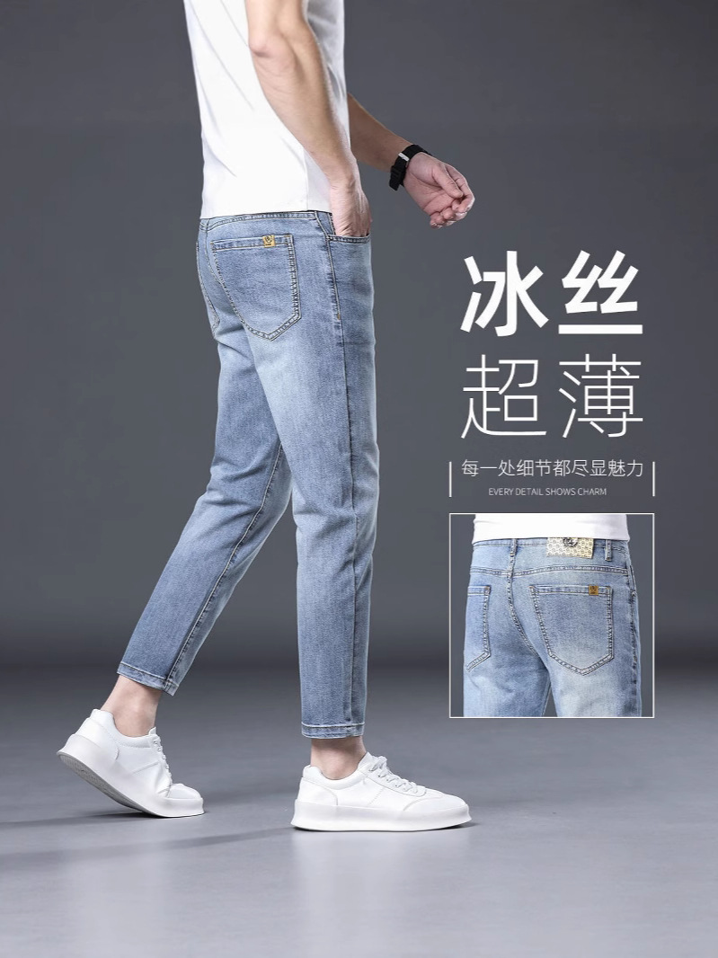 라이트 컬러 9부 팬츠 청바지 남성 스트레이트 슬림핏 팬츠 2025 여름 하이엔드 아이스 실크 스트레치 9부 팬츠