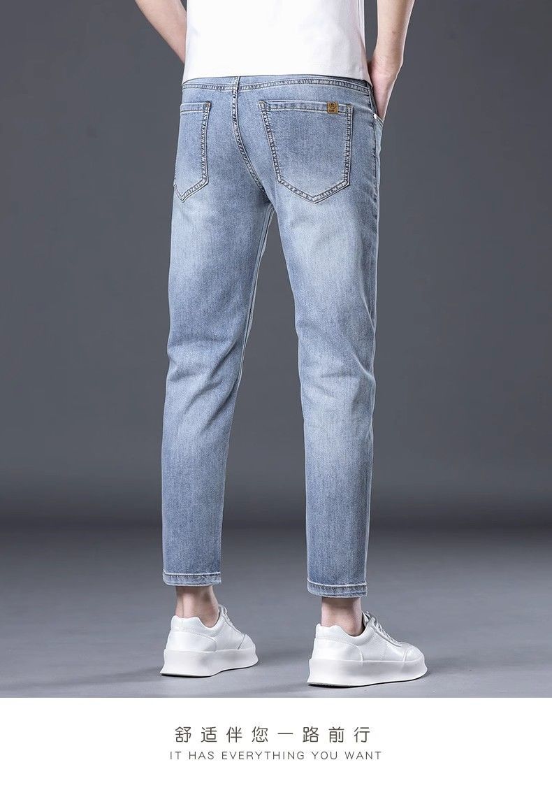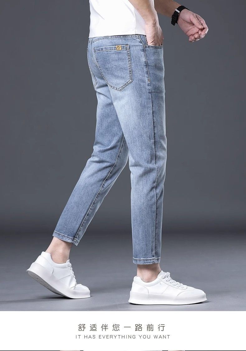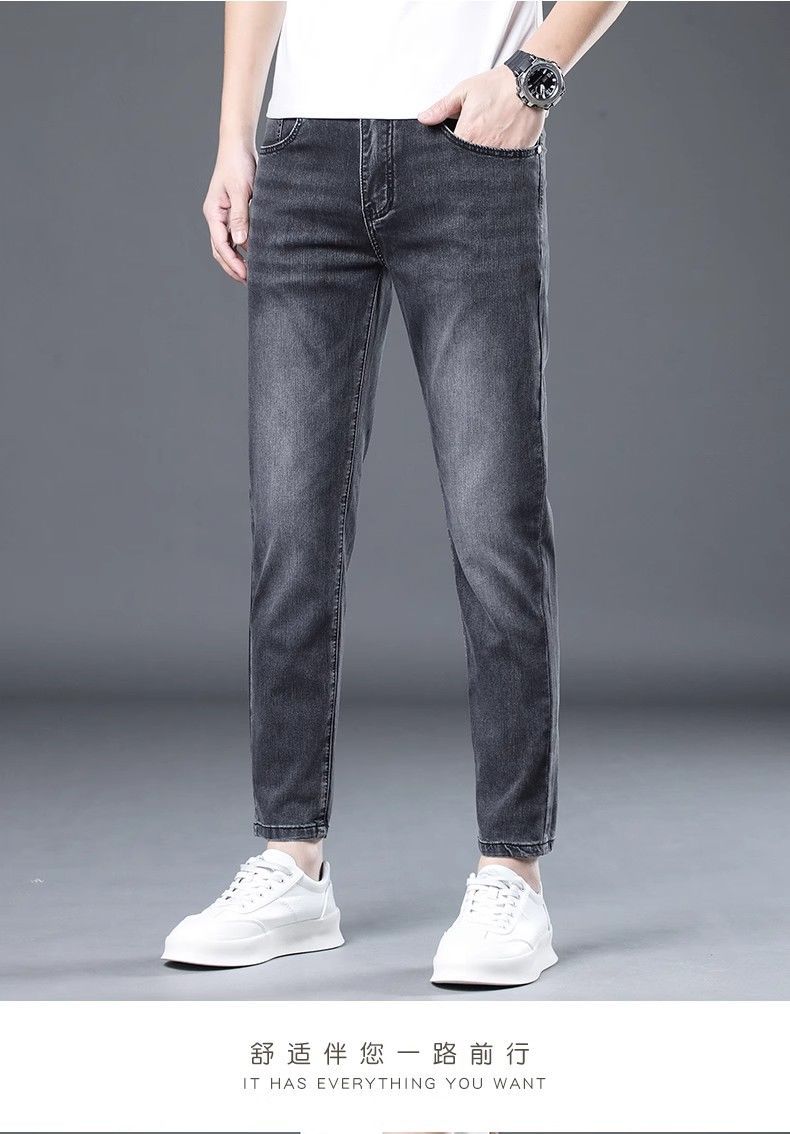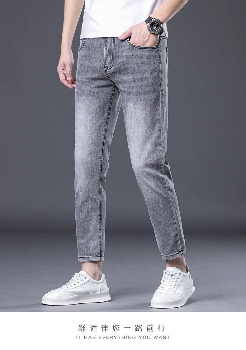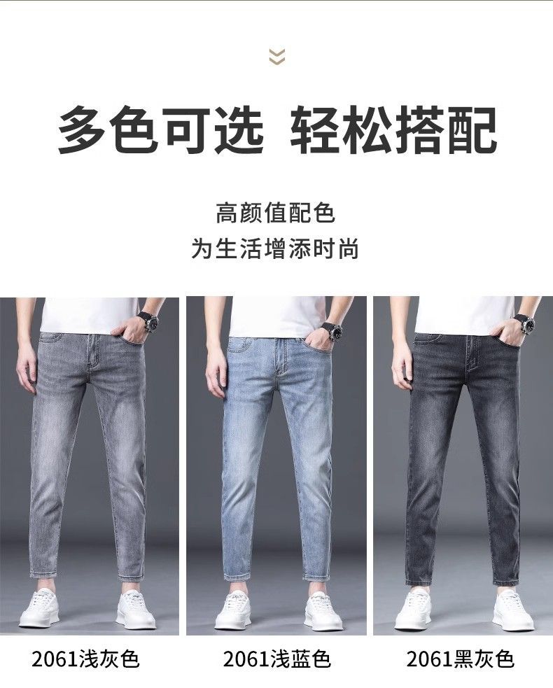 라이트 컬러 9부 팬츠 청바지 남성 스트레이트 슬림핏 팬츠 2025 여름 하이엔드 아이스 실크 스트레치 9부 팬츠