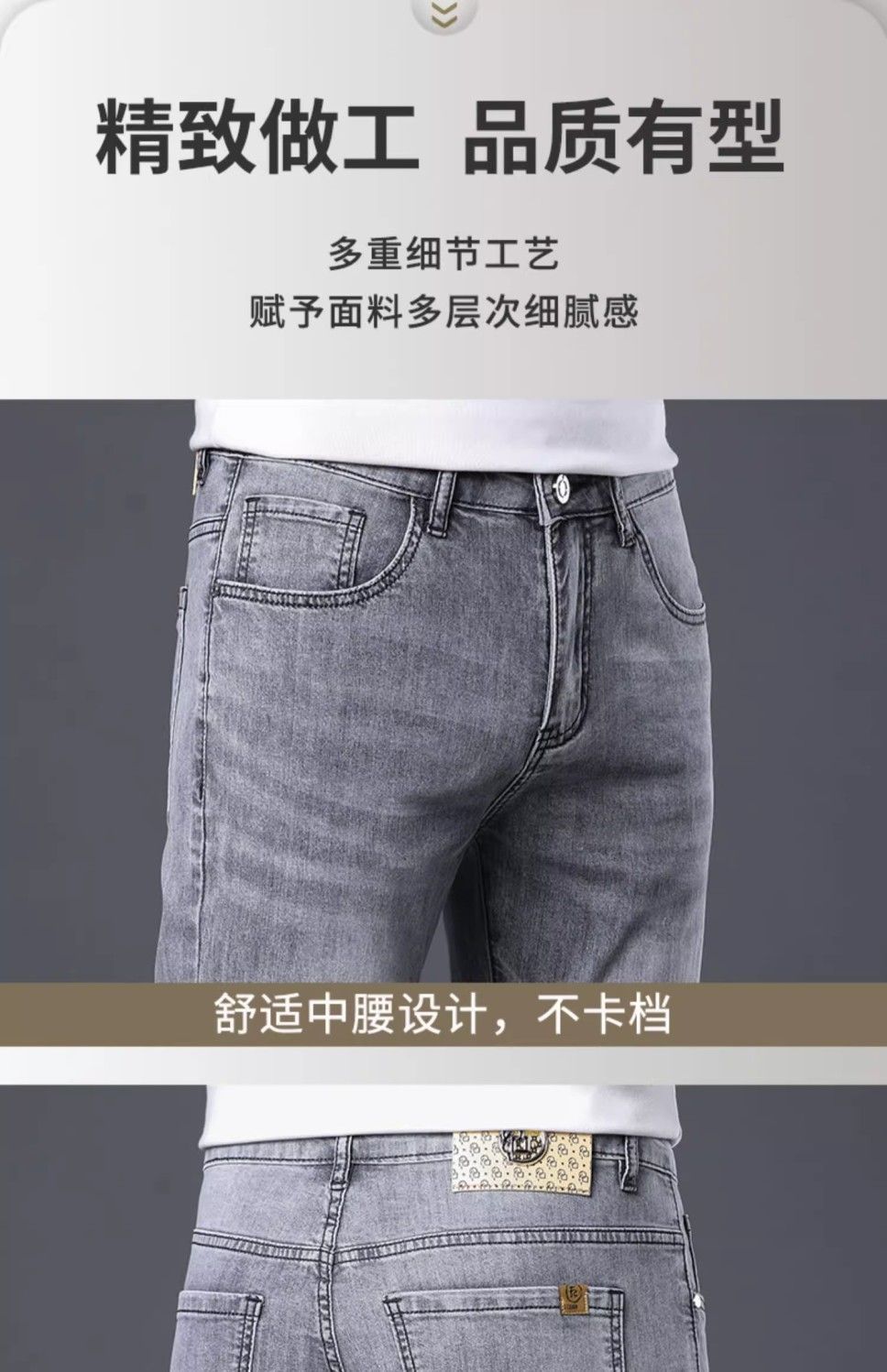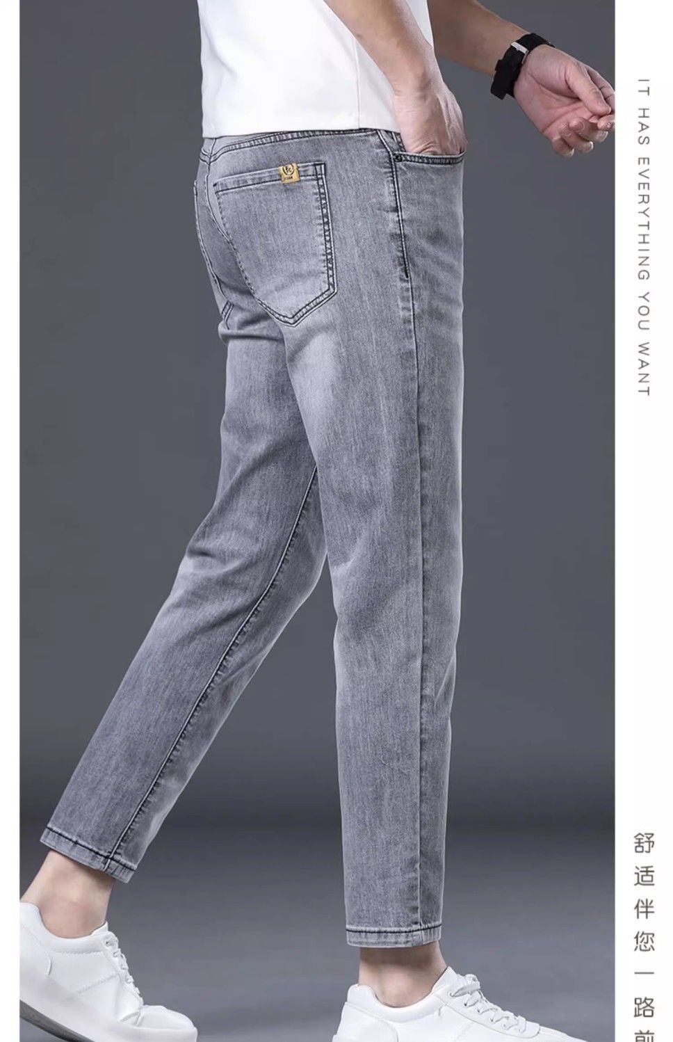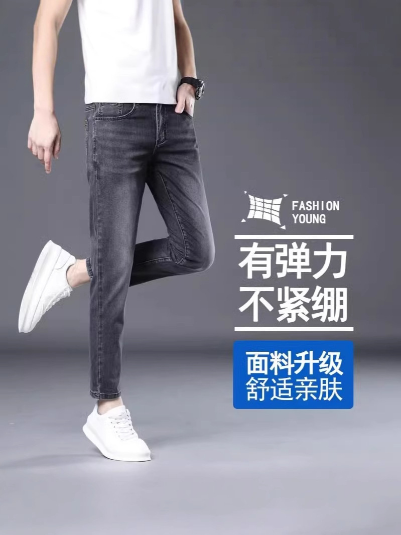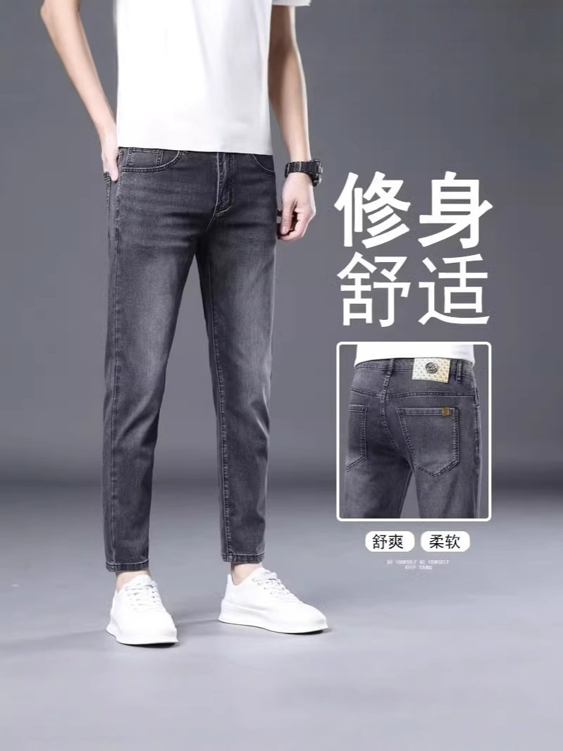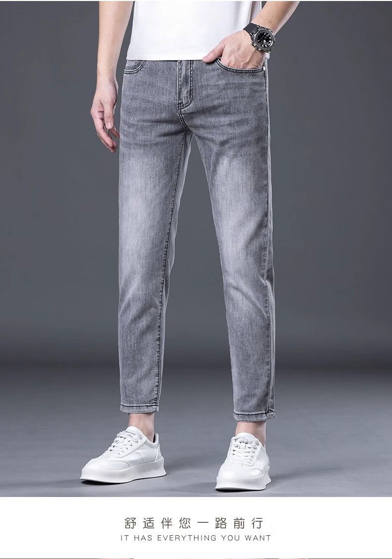 라이트 컬러 9부 팬츠 청바지 남성 스트레이트 슬림핏 팬츠 2025 여름 하이엔드 아이스 실크 스트레치 9부 팬츠