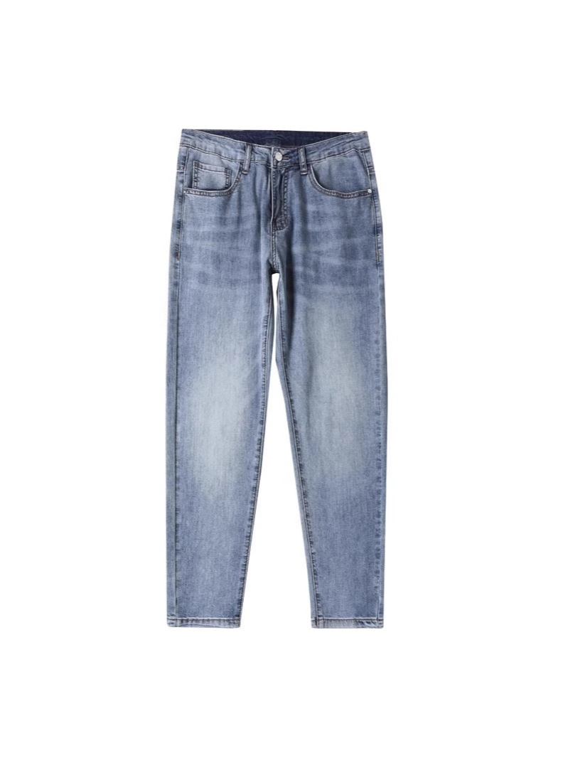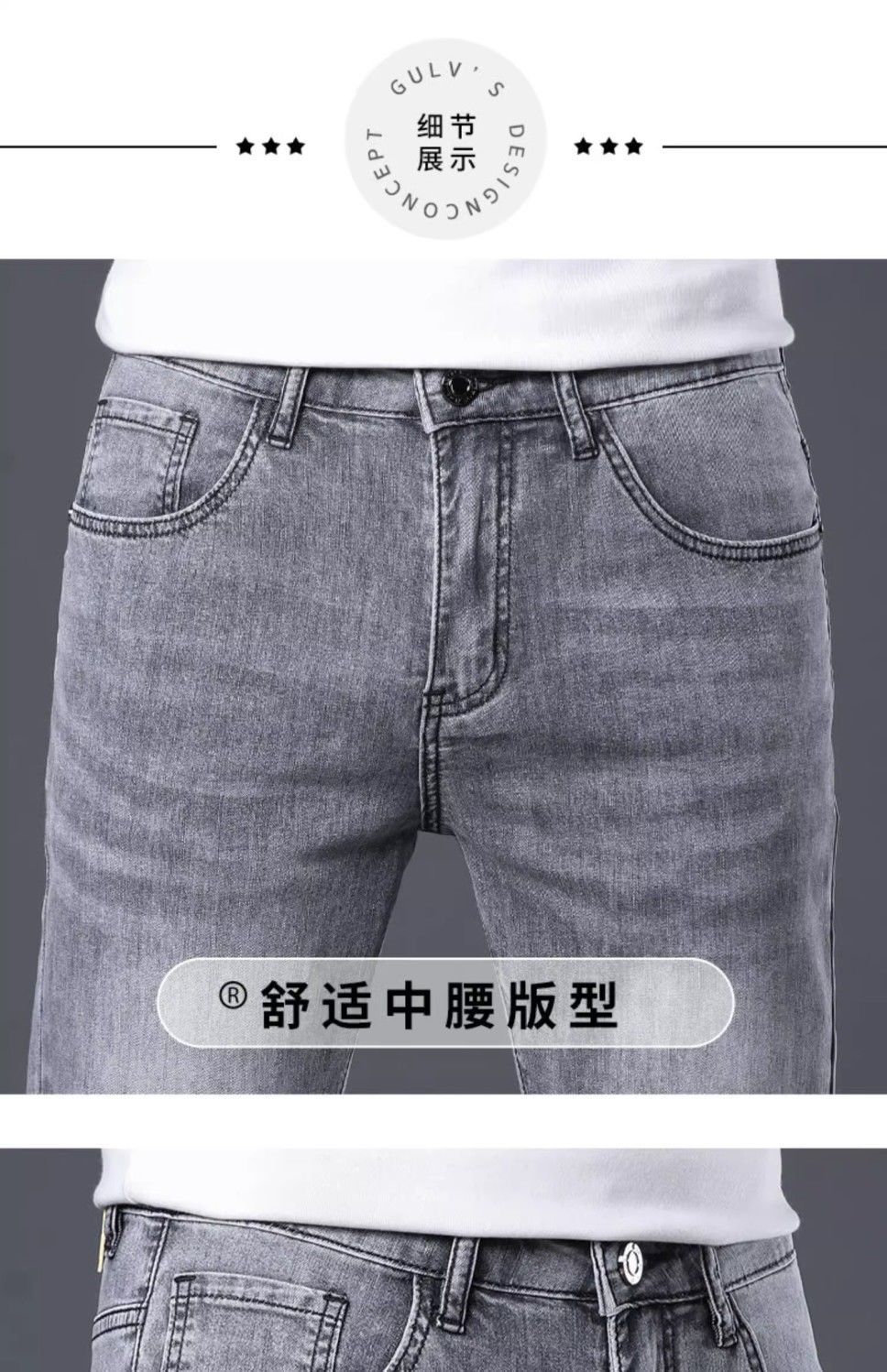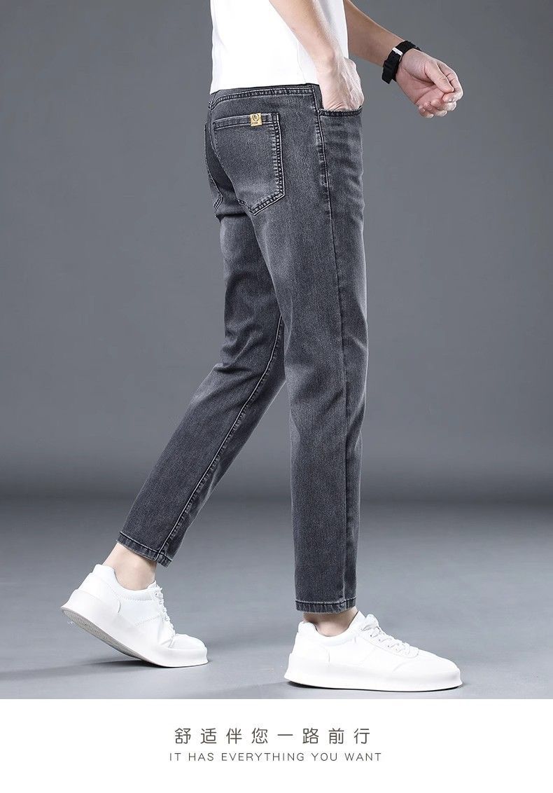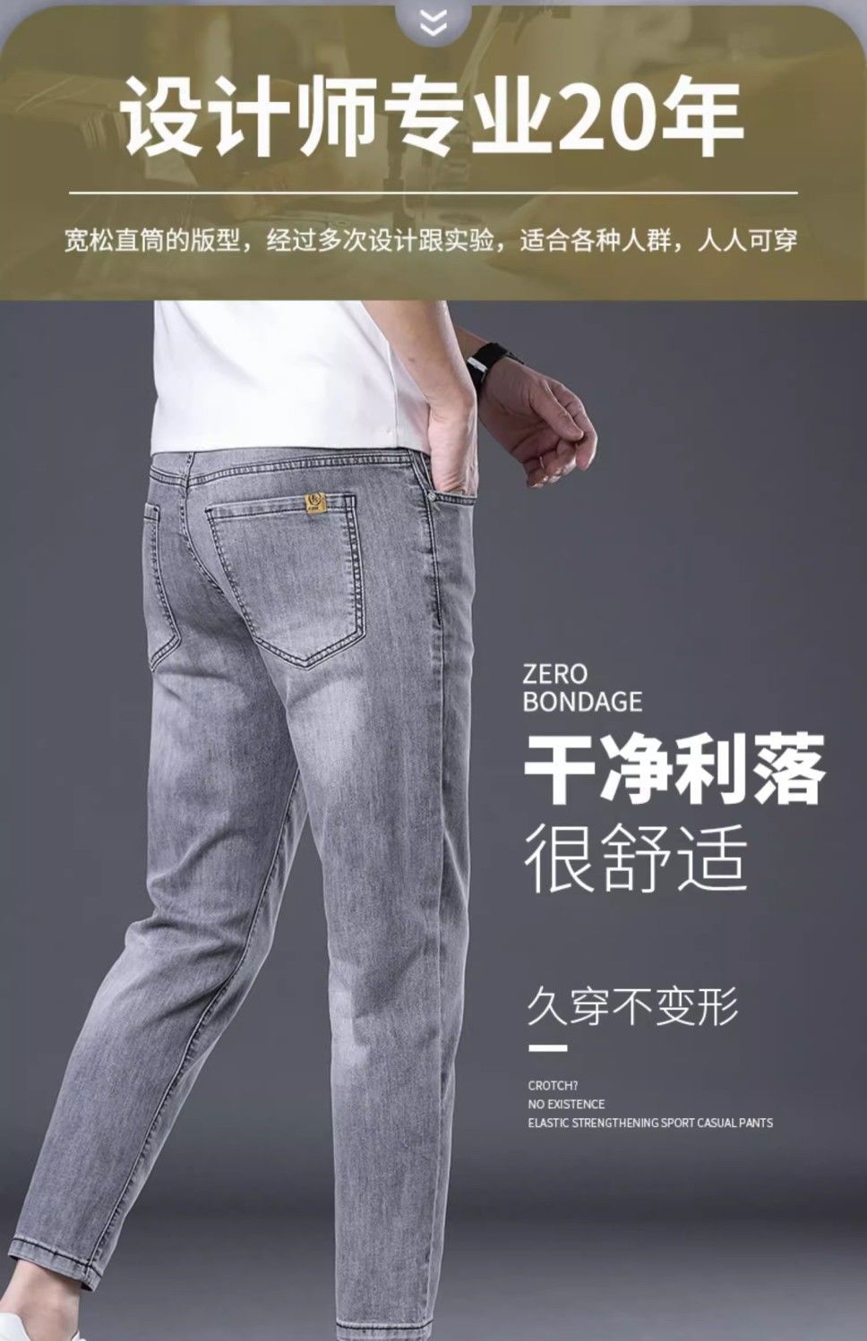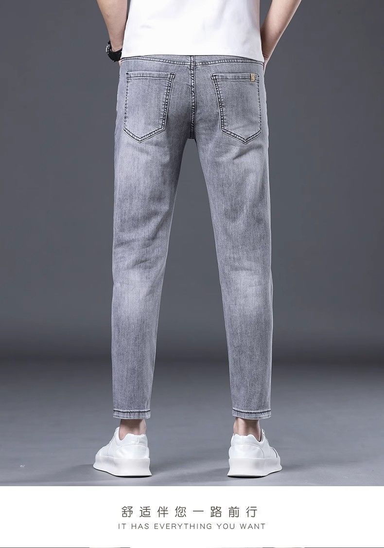 라이트 컬러 9부 팬츠 청바지 남성 스트레이트 슬림핏 팬츠 2025 여름 하이엔드 아이스 실크 스트레치 9부 팬츠