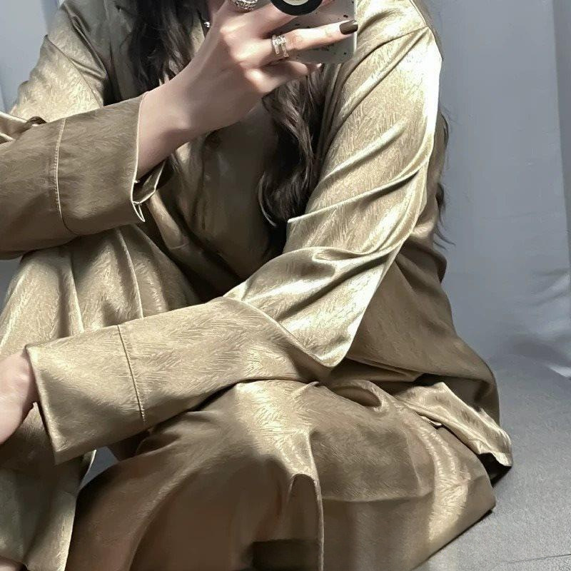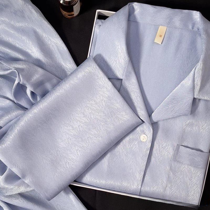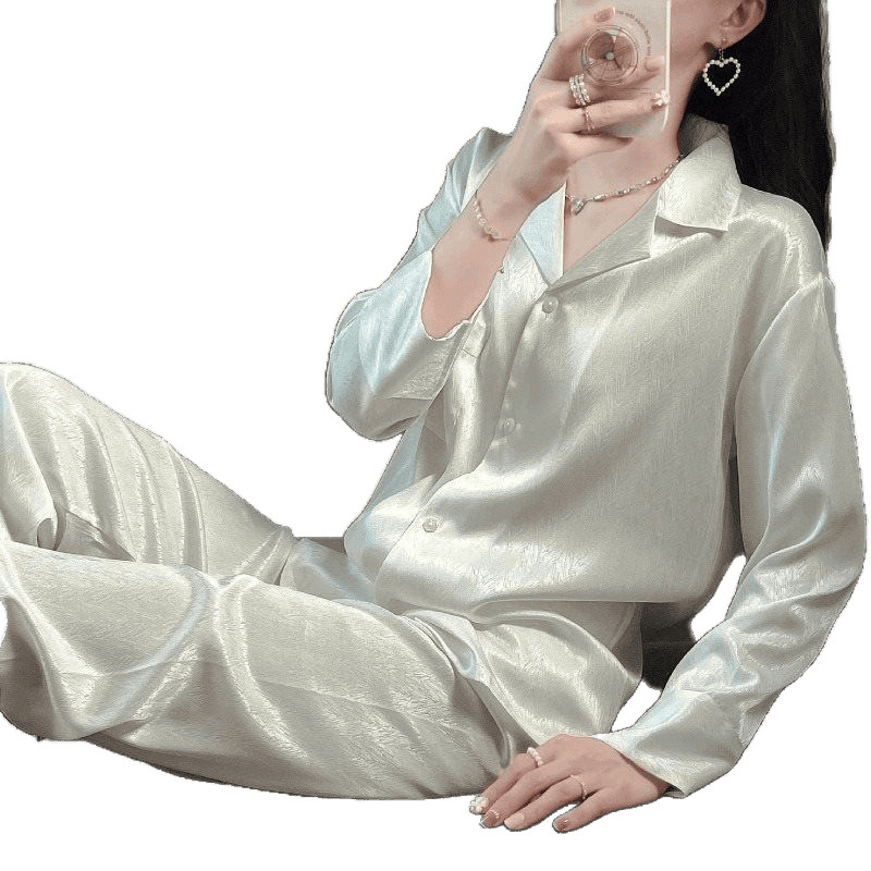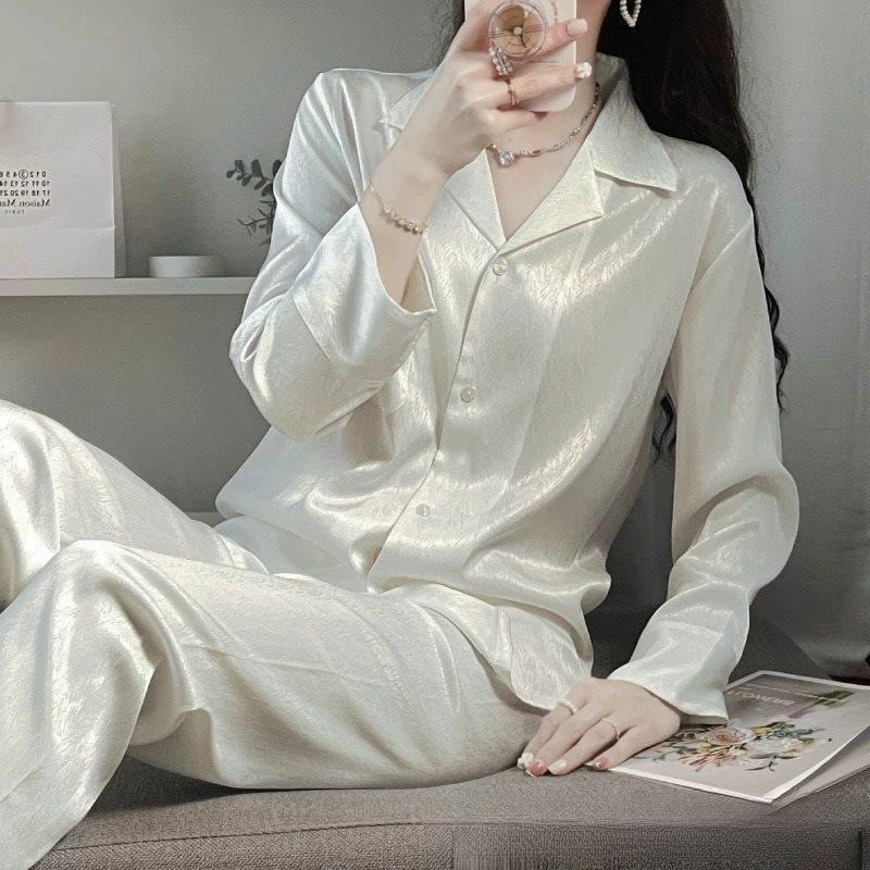 여성을위한 고급 얼음 실크 잠옷 봄과 가을 긴팔 새로운 고급 모조 실크 여름 홈웨어 세트