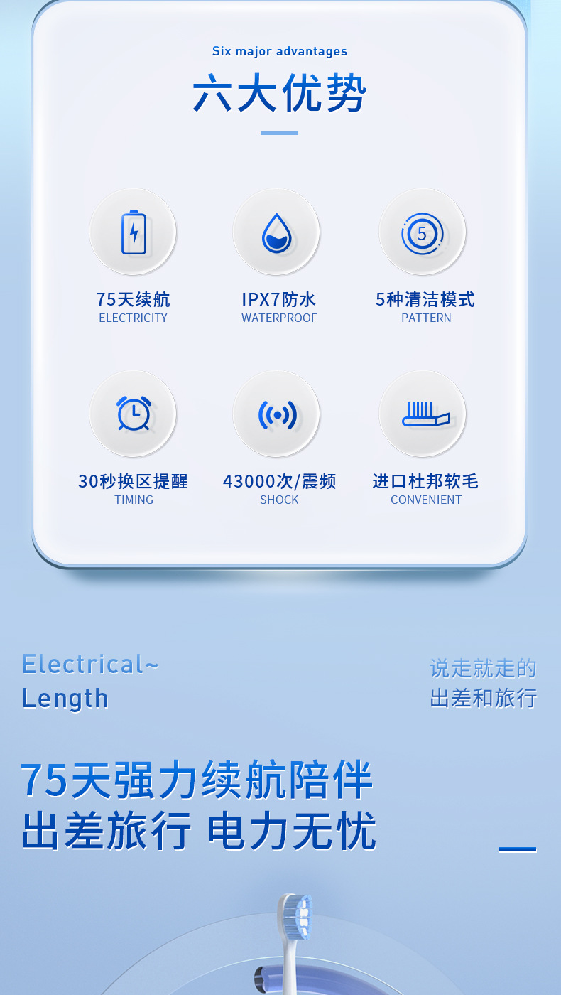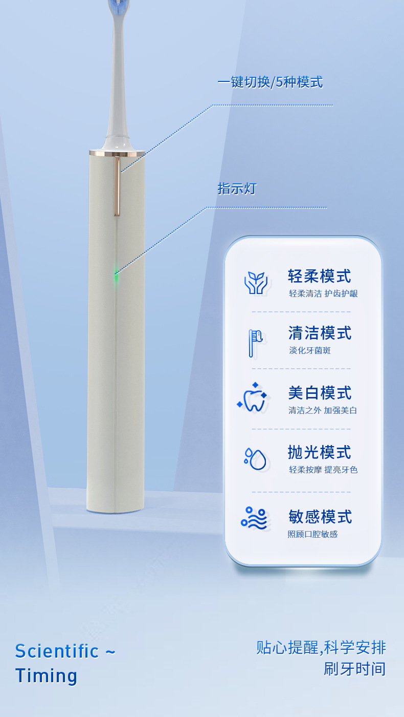 신제품 국경 간 TB-028 자기 부상 전동 칫솔 USB 고속 충전 부드러운 강모 5단 선물 상자 공장