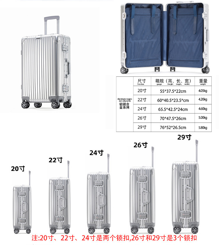 스위스 아미 나이프 고급 풀 마그네슘 알루미늄 합금 여행가방 여성용 트롤리 여행가방 2025년형 하드쉘 기내용 가방 29inch