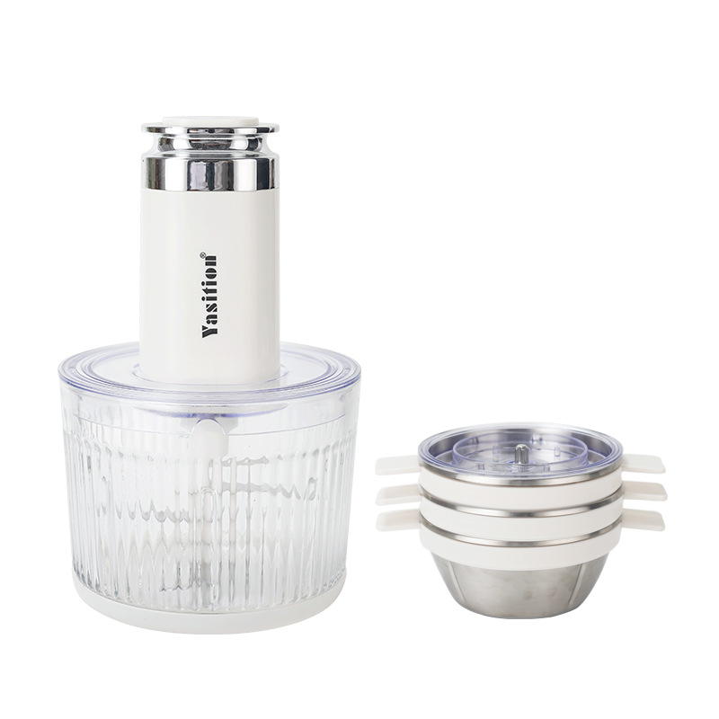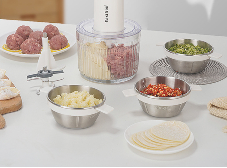 4개의 그릇과 3개의 칼이 있는 다기능 푸드 프로세서