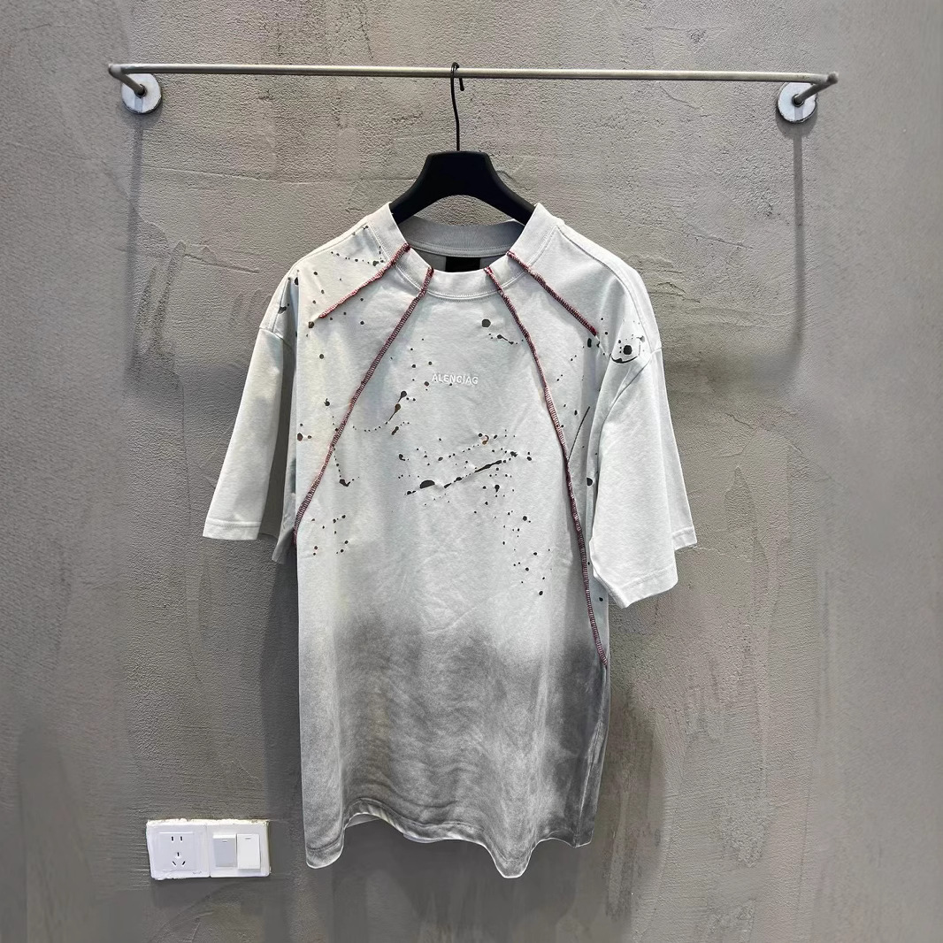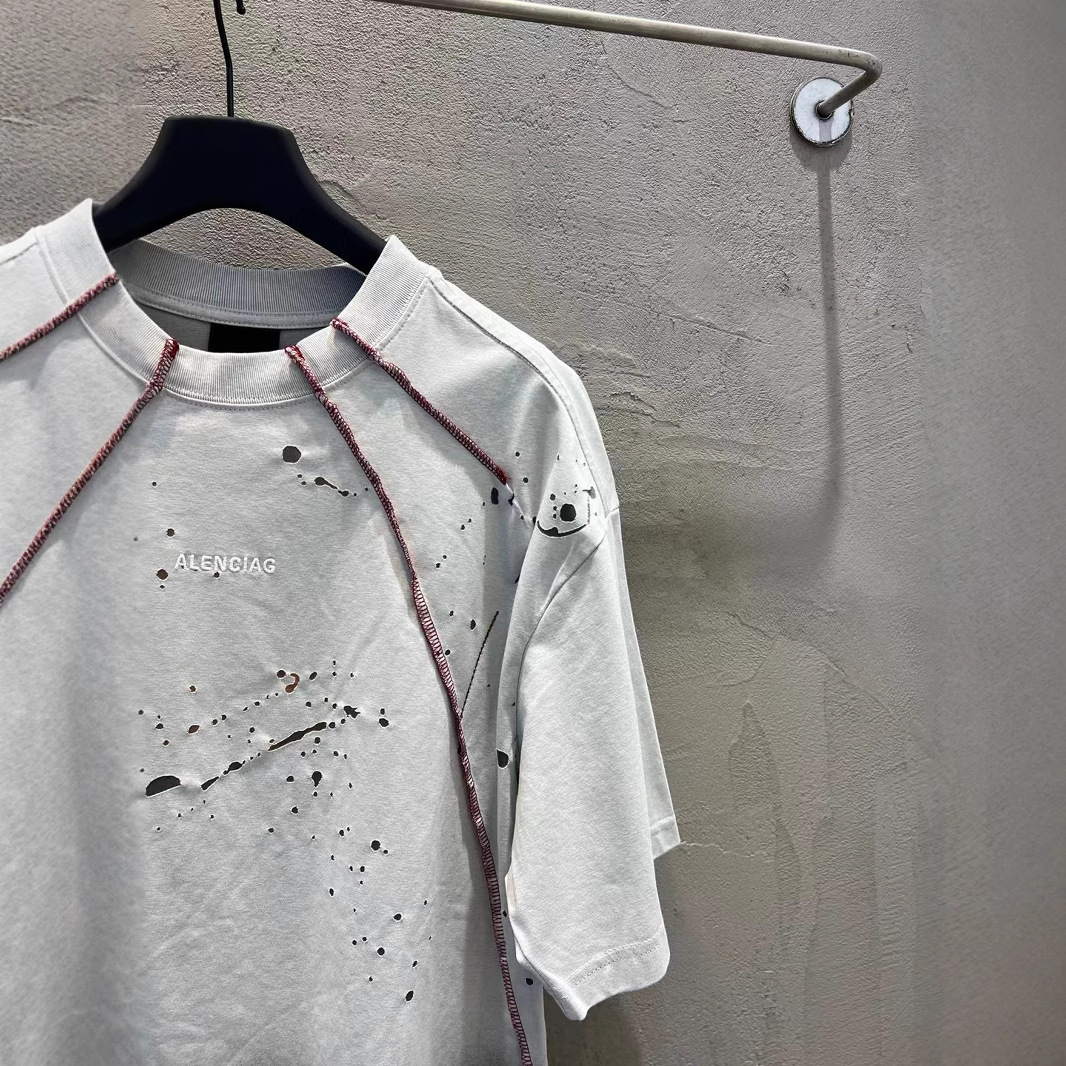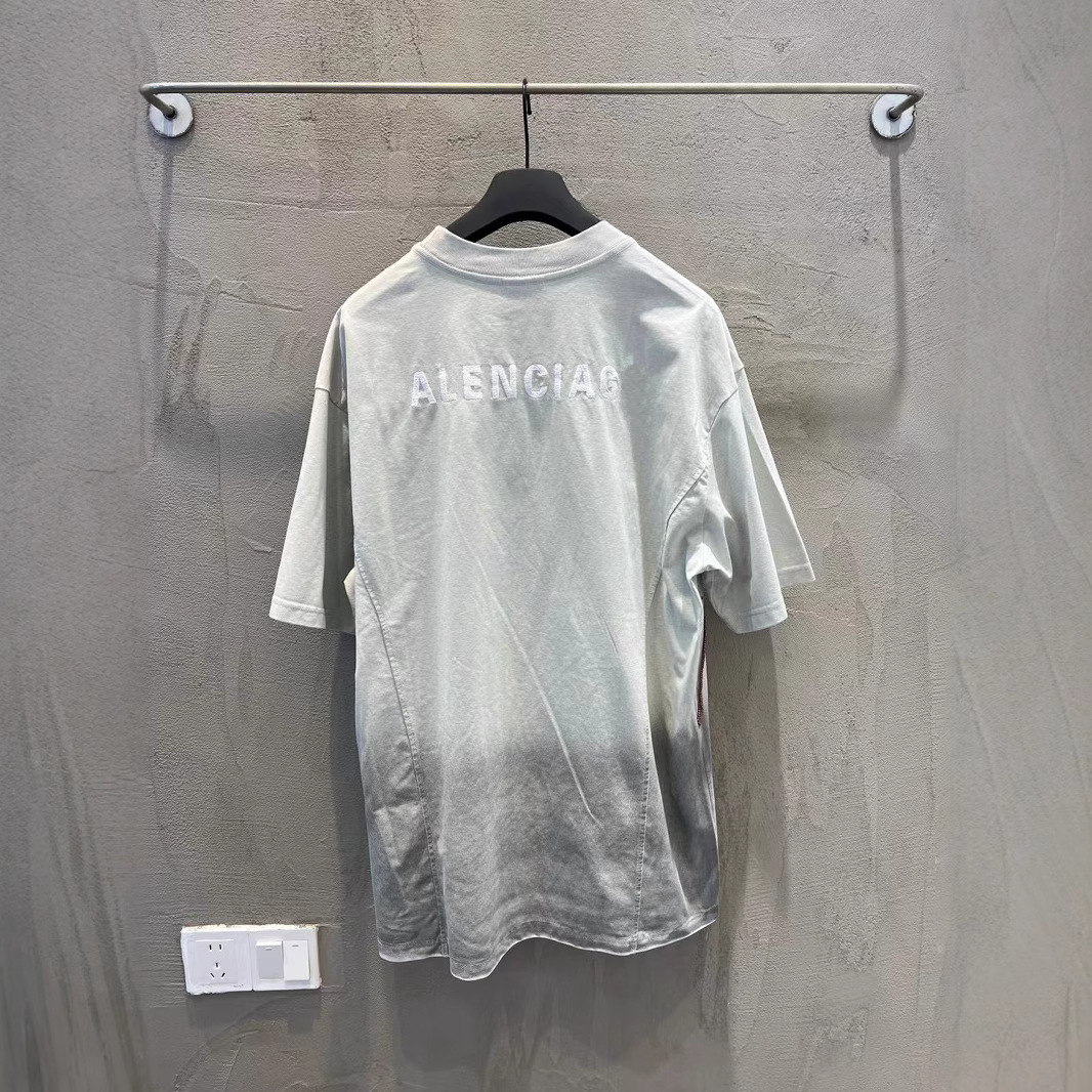 25FW 하이 버전 B의 새로운 여름 스타일 남성과 여성의 같은 스타일 웨이스트랜드 스타일 더블 링 자수 스플라이싱 반팔 티셔츠