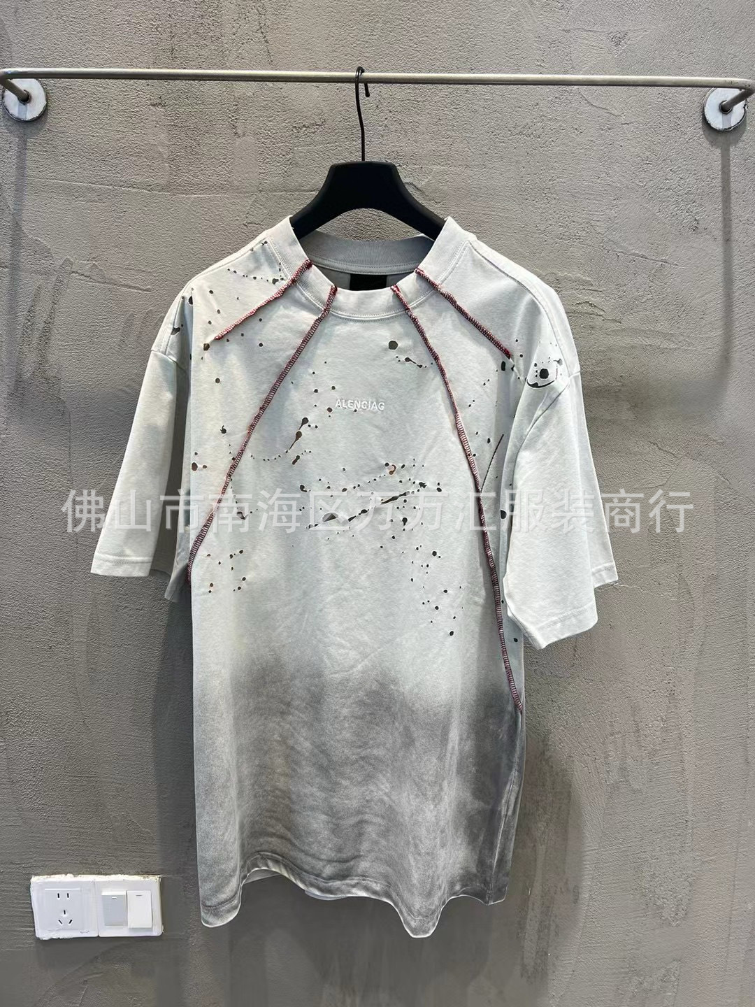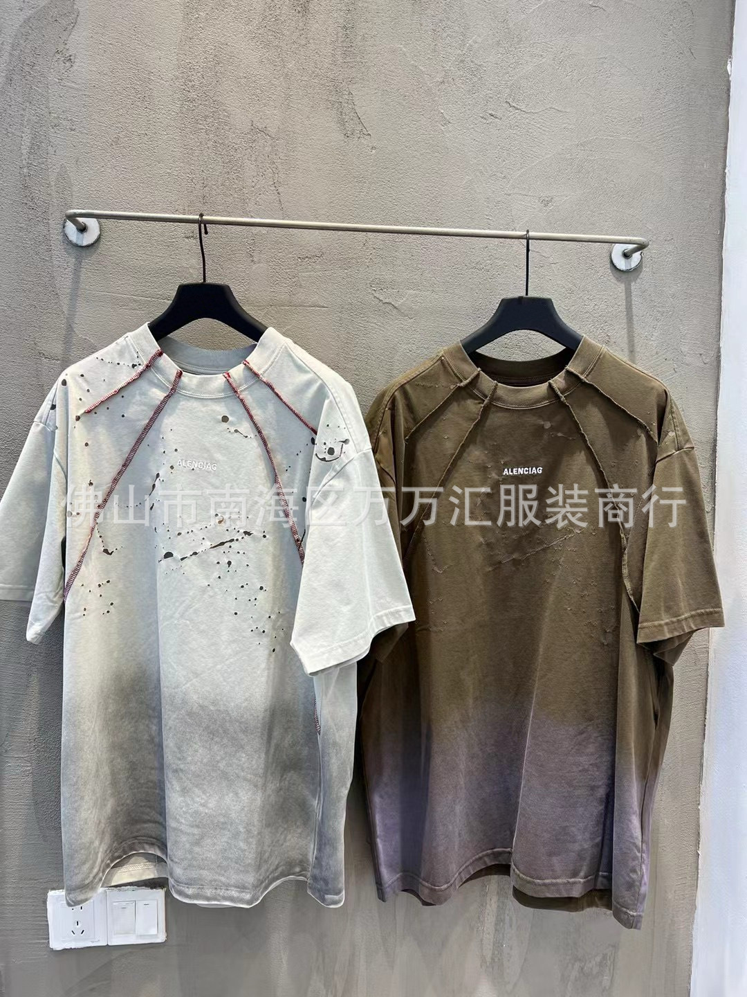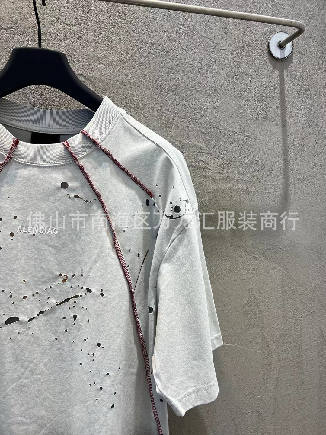 25FW 하이 버전 B의 새로운 여름 스타일 남성과 여성의 같은 스타일 웨이스트랜드 스타일 더블 링 자수 스플라이싱 반팔 티셔츠
