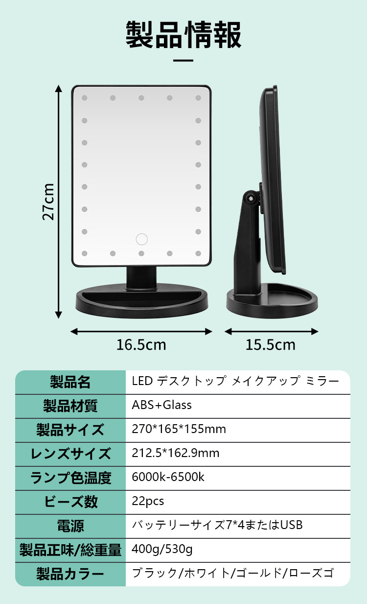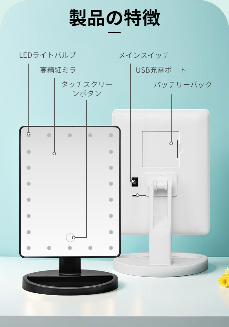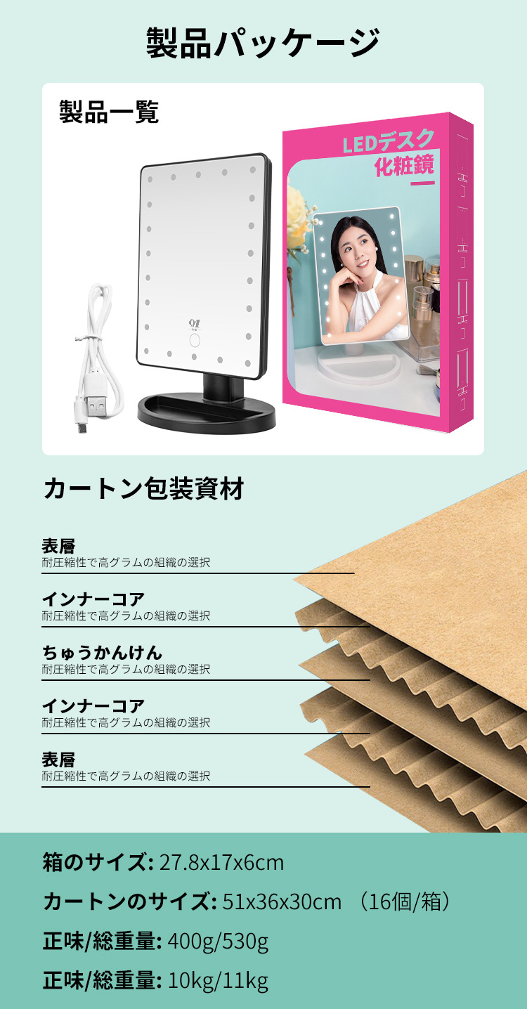 Zhuoshang LED 화장 거울 접이식 가정용 조명 화장품 소품 거울