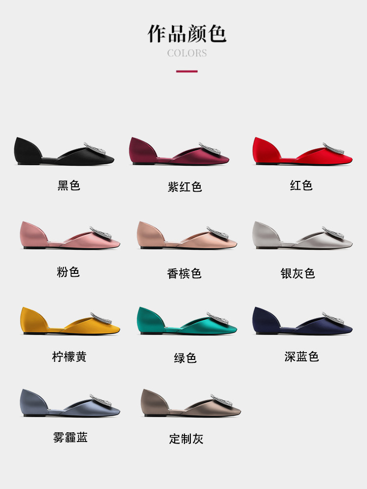 RV 워터다이아몬드 웨딩 슈즈 사각 버클 플랫 슈즈 2026 신상 실크 새틴 라운드 토 얕은 입구 편안한 여성용 발레 슈즈