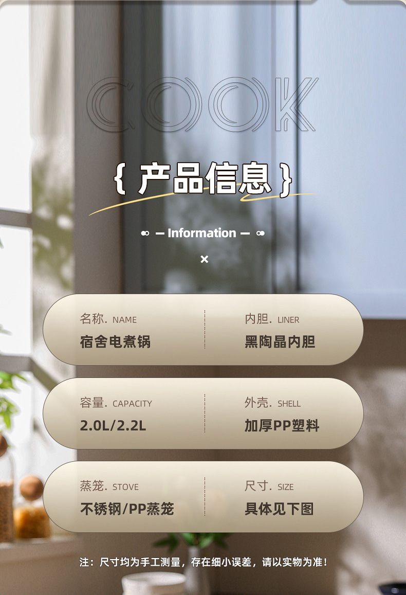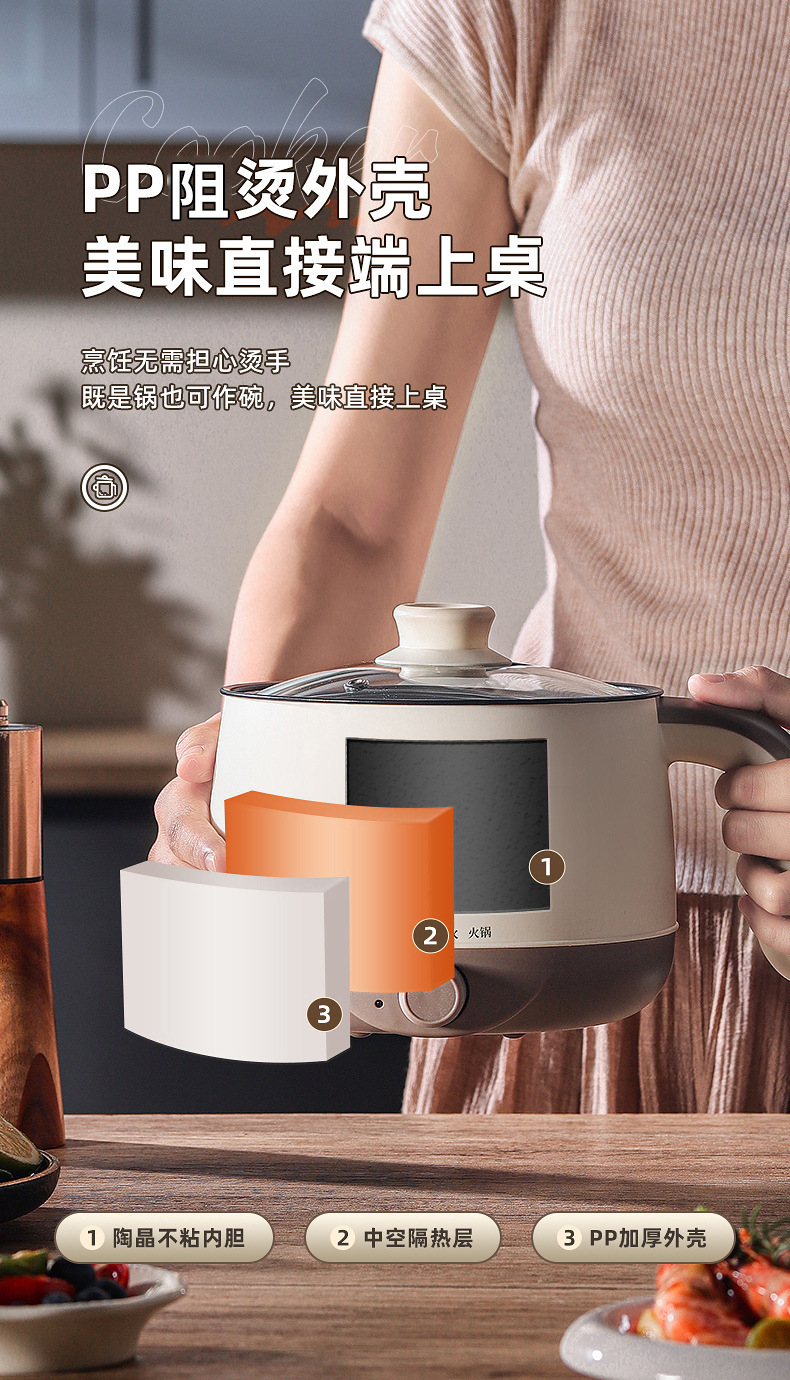 2.0L 단일 냄비 + PP 찜기 [눌어붙지 않는 내솥] 전선 1.5m개