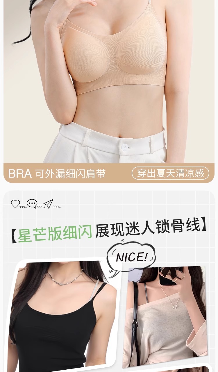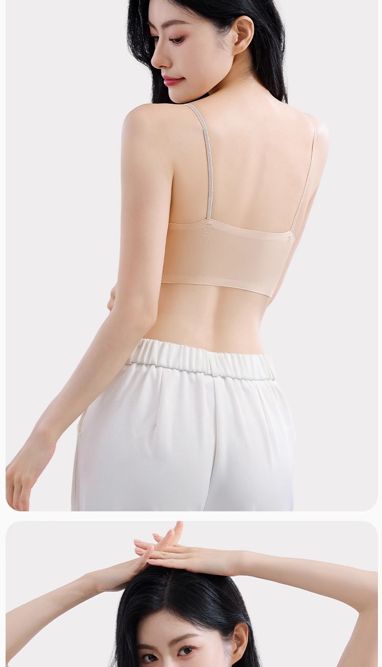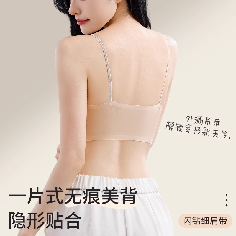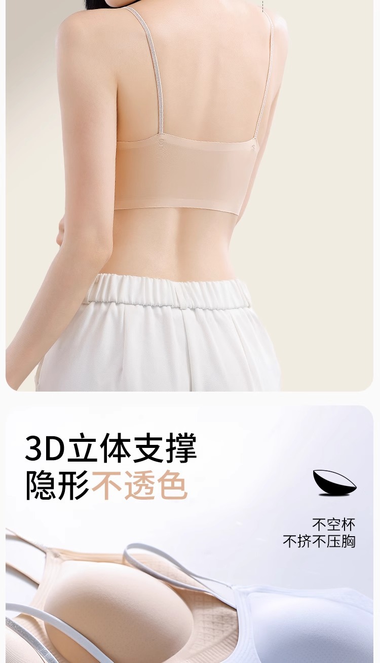 작은 가슴을 가진 여성을 위한 카멜리아 향기 속옷, 여름용 얇은 스파게티 스트랩, 심리스 뷰티 백, 인비저블 베스트 브라