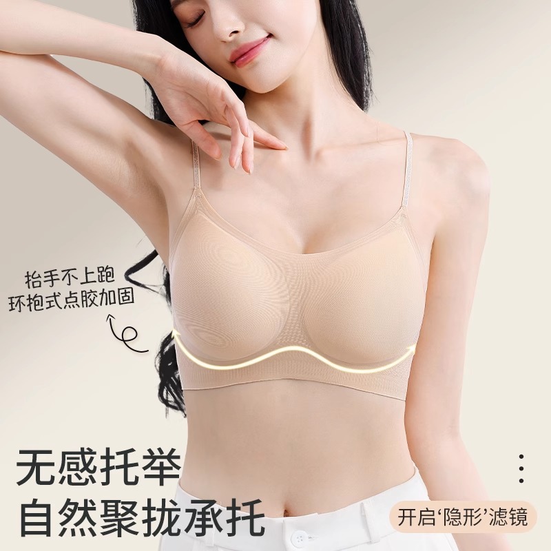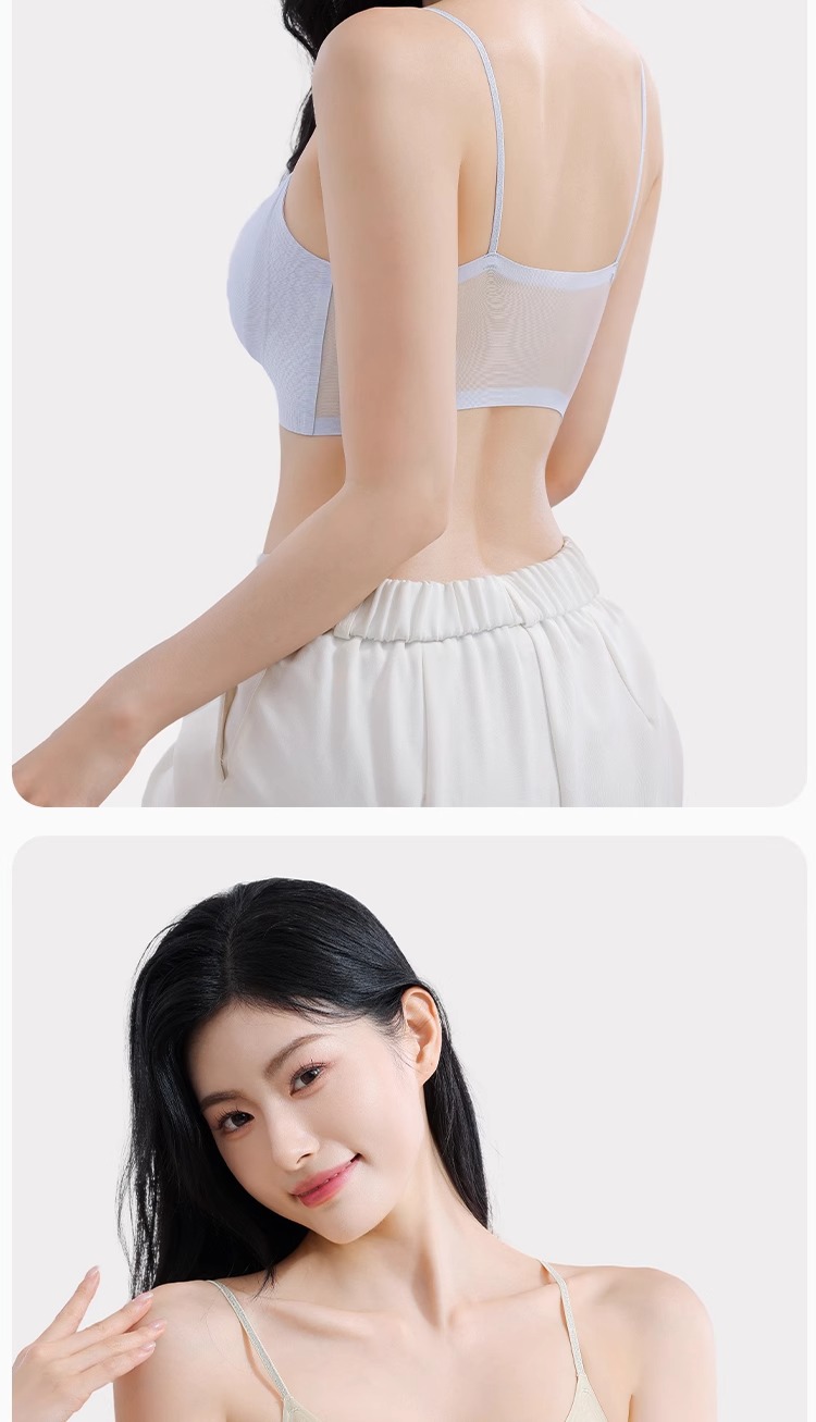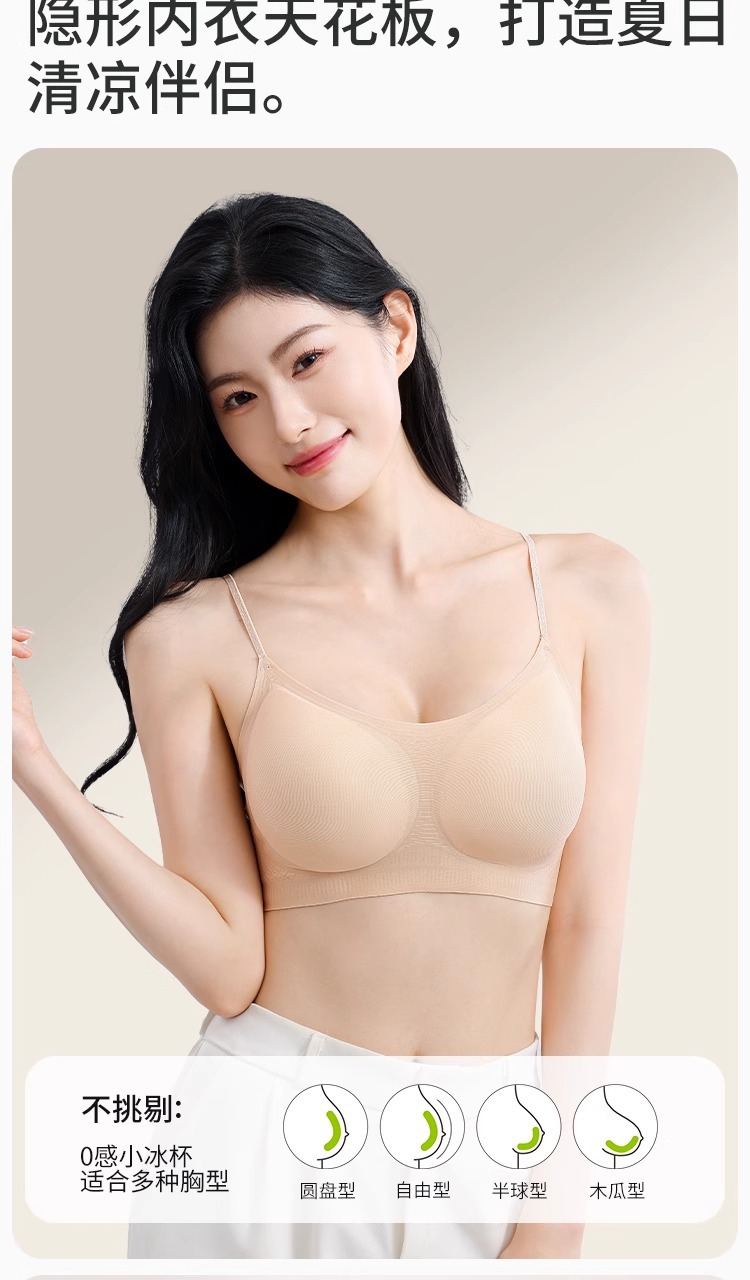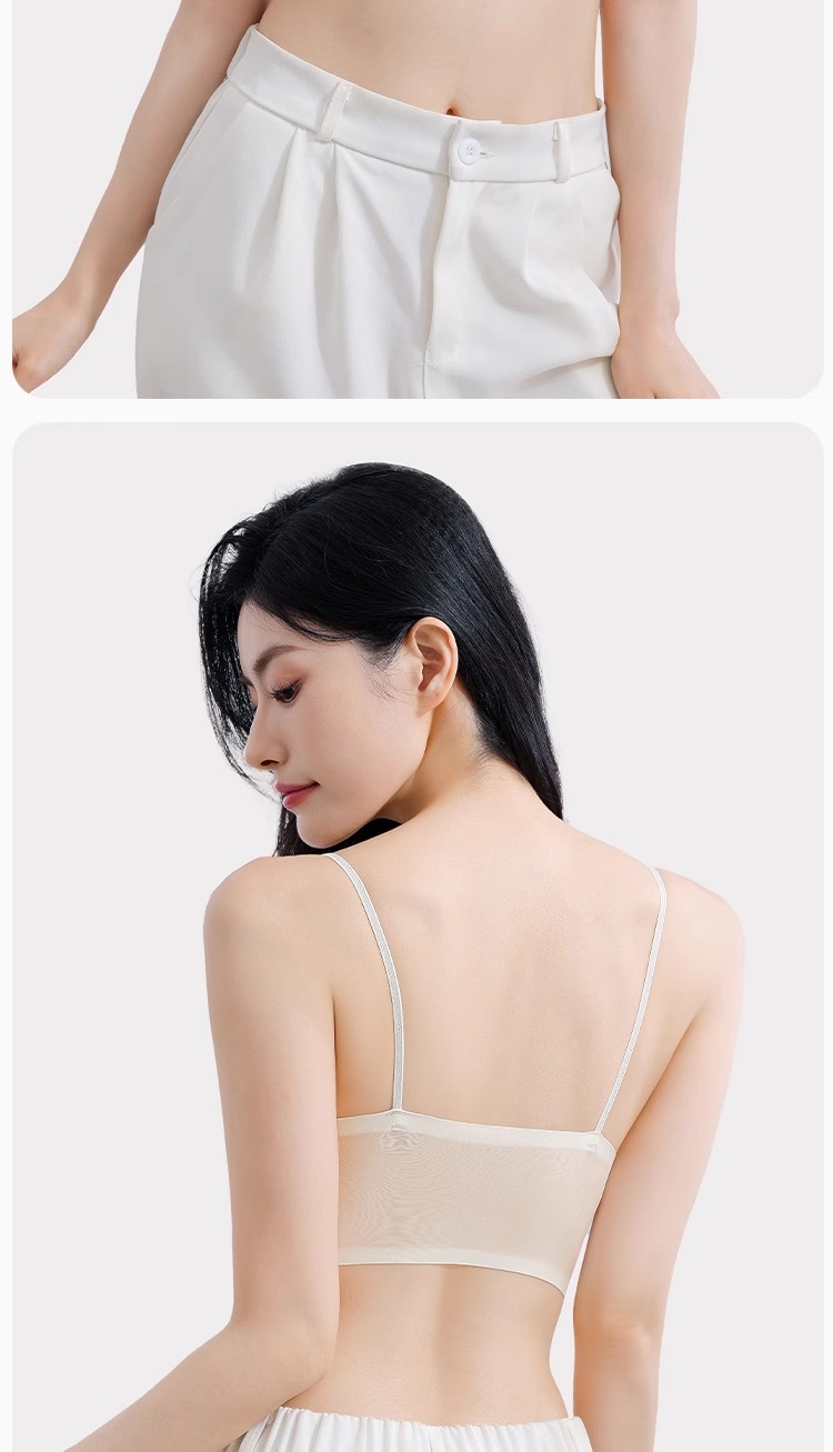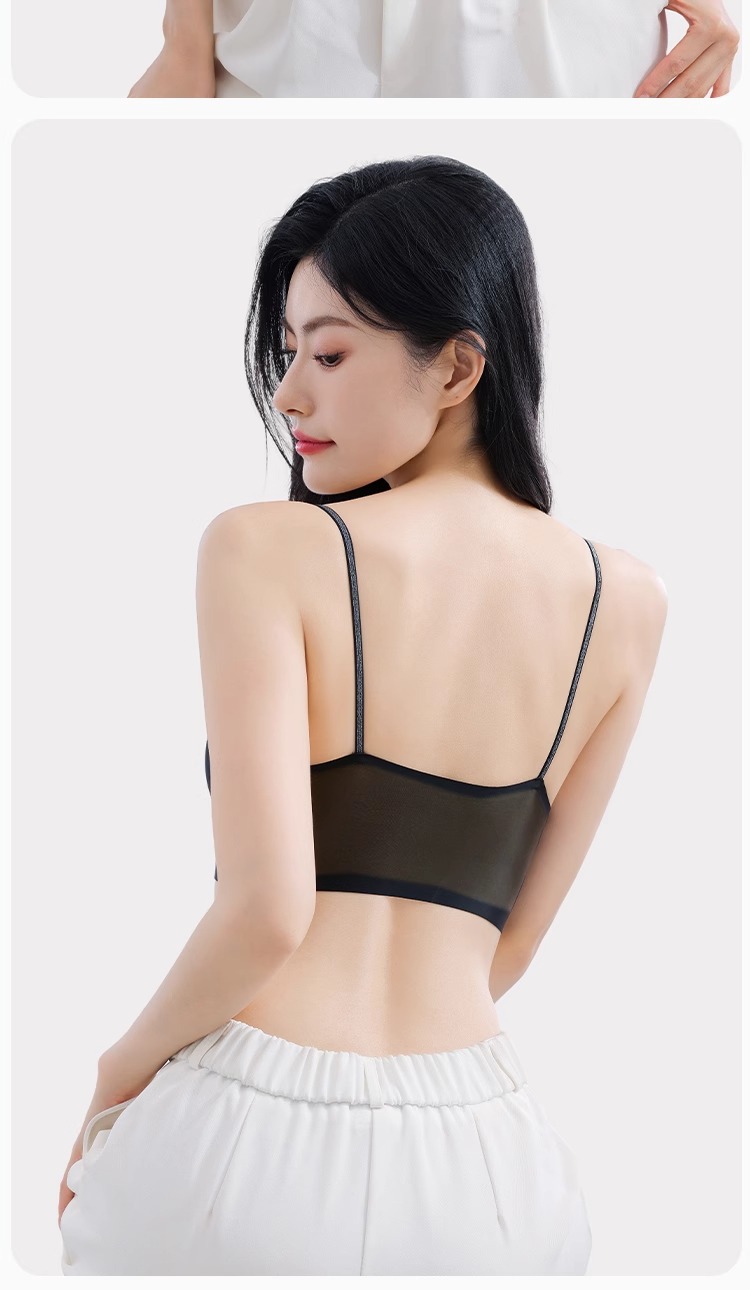 작은 가슴을 가진 여성을 위한 카멜리아 향기 속옷, 여름용 얇은 스파게티 스트랩, 심리스 뷰티 백, 인비저블 베스트 브라