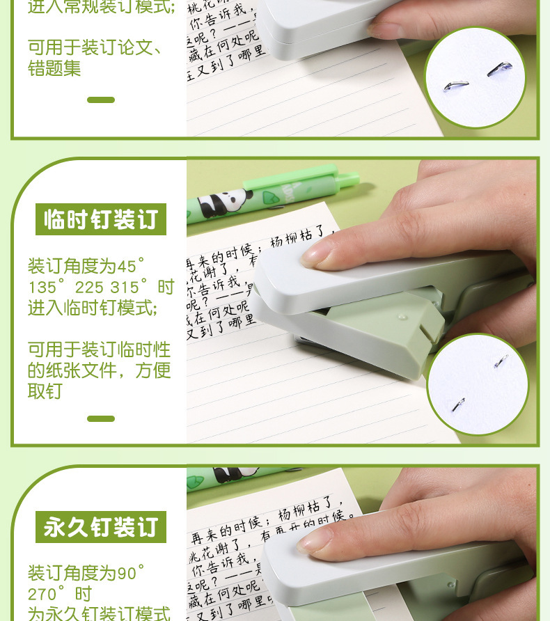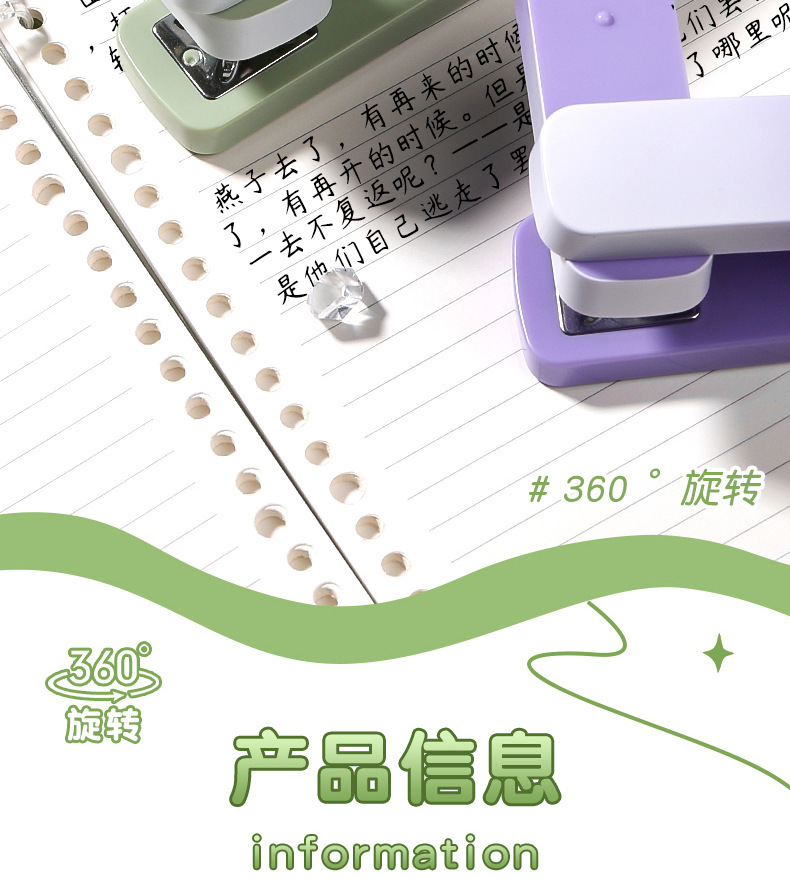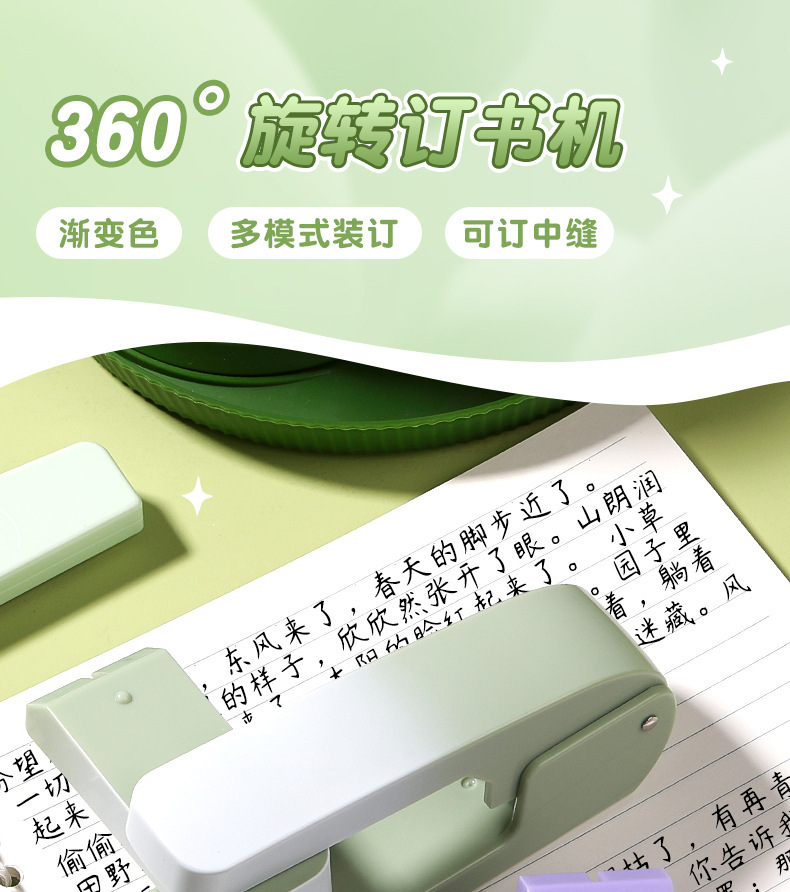 중형 360도 회전 스테이플러, 세련된 사무용 그라데이션 색상, 노동력 절약형, 학생용 고급스러운 디자인, 12호 스테이플러