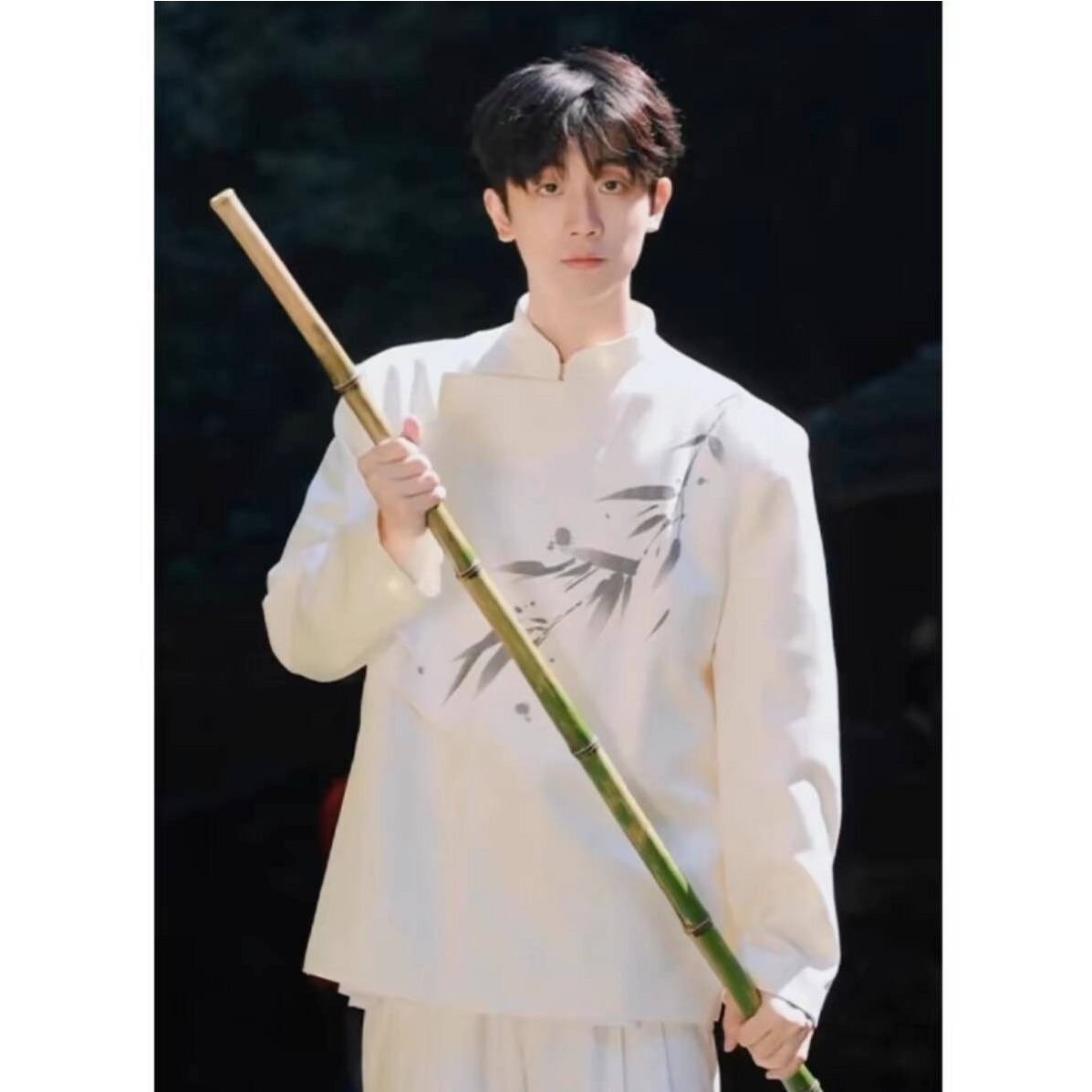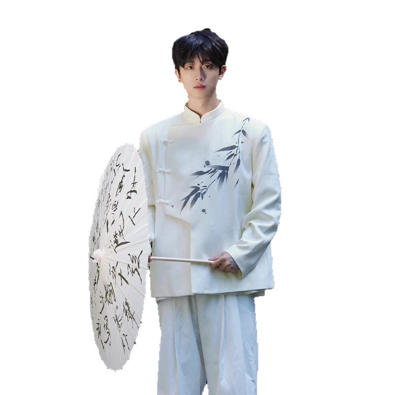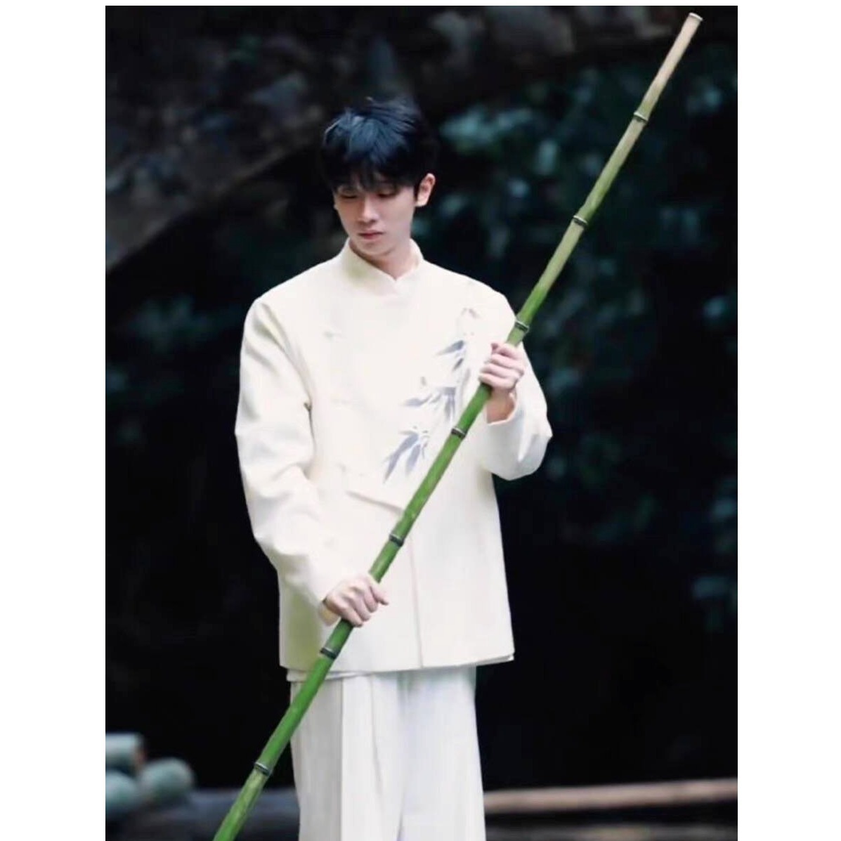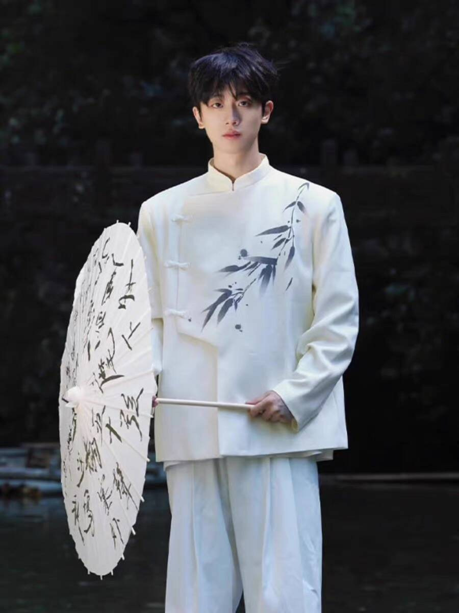 새로운 중국 스타일 남성 흰색 어깨 패드 정장 남성 틈새 디자인 고급 정장 중국 스타일 약혼 남성 재킷