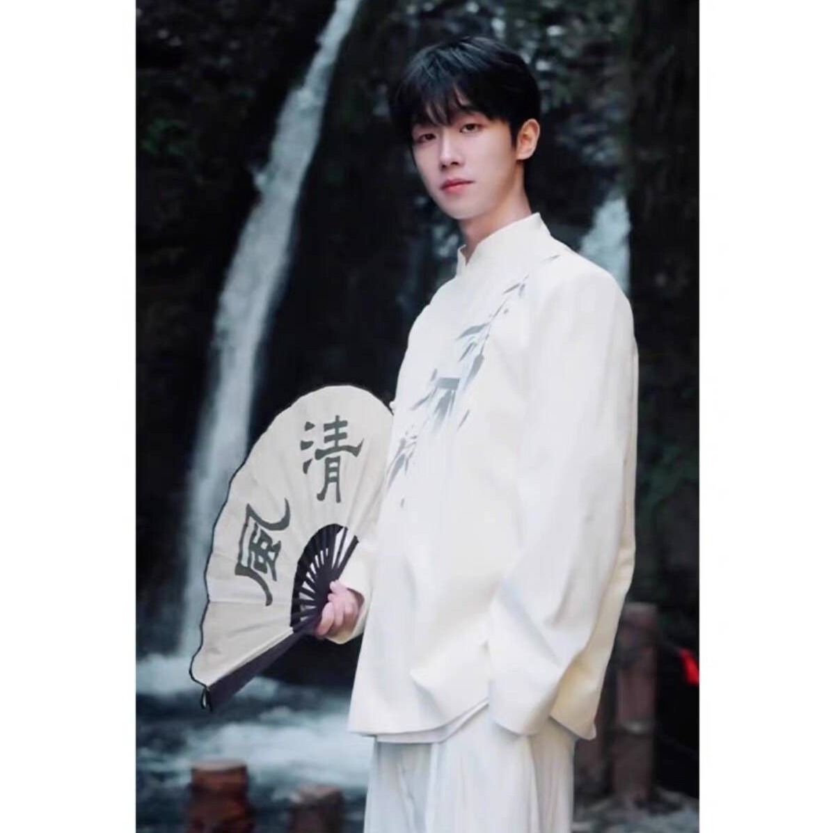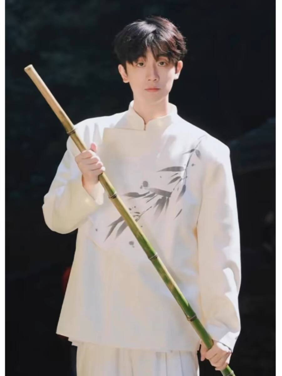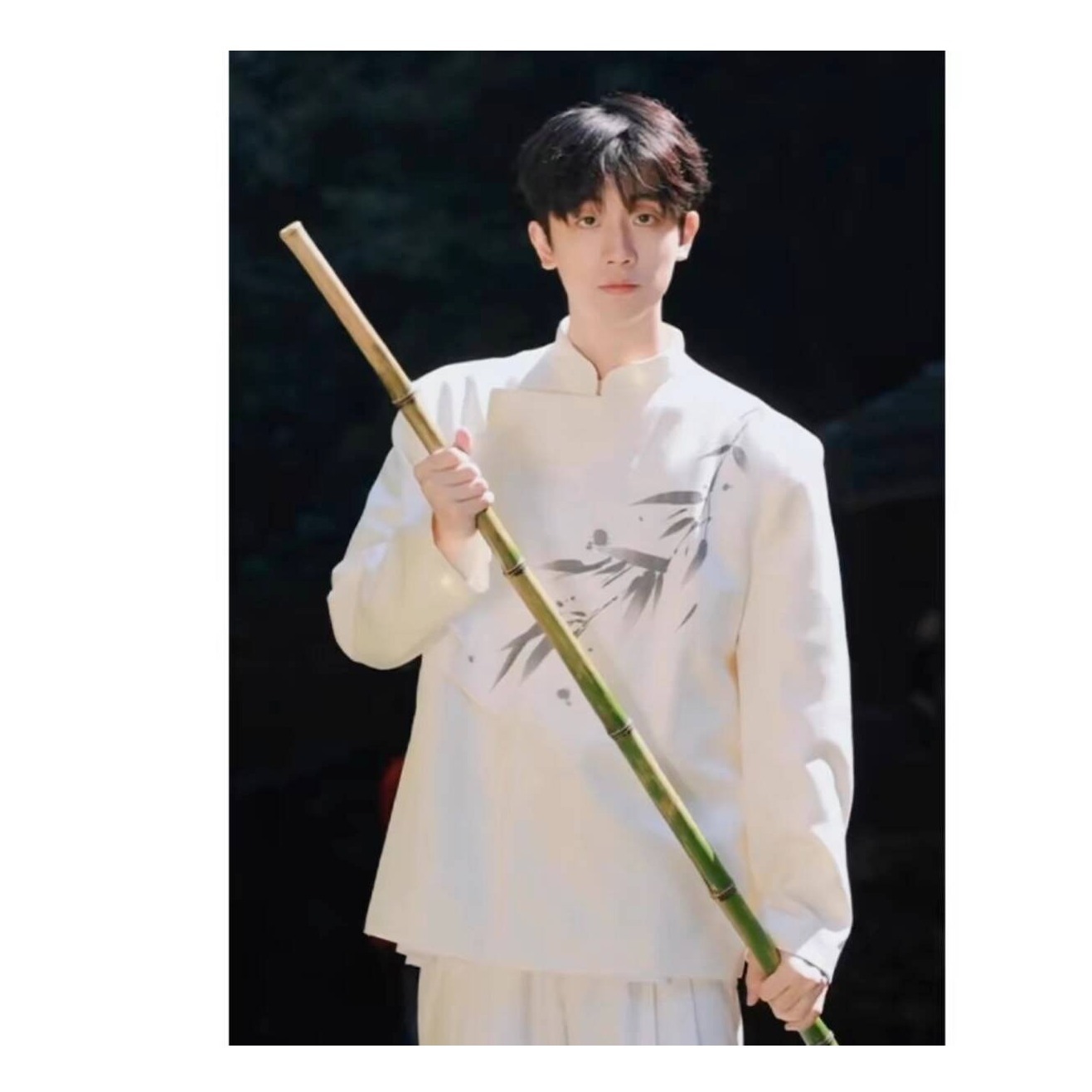 새로운 중국 스타일 남성 흰색 어깨 패드 정장 남성 틈새 디자인 고급 정장 중국 스타일 약혼 남성 재킷