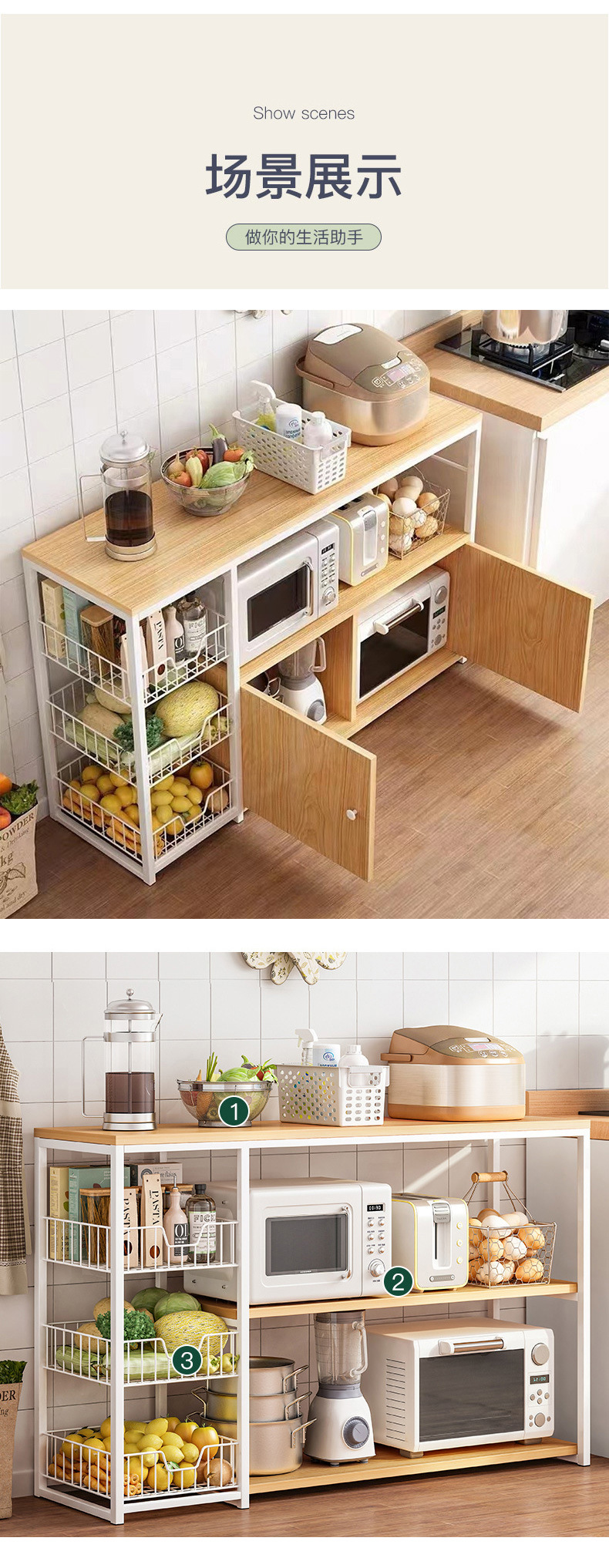 바닥에서 천장까지 다층 전자 레인지 냄비 선반 주방 용품 가정용 수납 바구니 주방 수납 선반