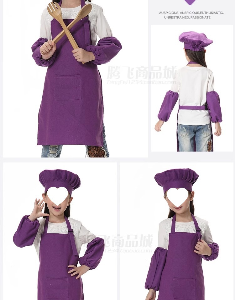 집안일 청소 앞치마 캔버스 슬리브 그림 어린이 요리사 세트 요리사 모자 인쇄 배송 핫 독립 스테이션