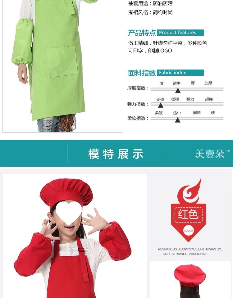 캔버스 확대 앞치마 + 소매 + 모자 - 키 1.4- 1.5m에 적합