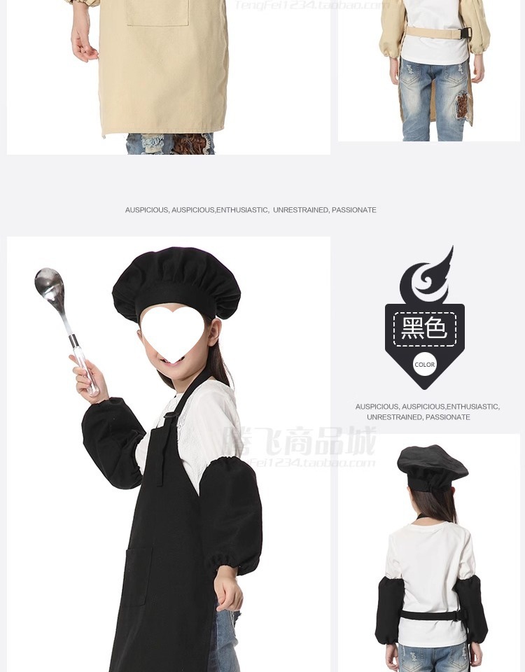 캔버스 대형 앞치마 + 소매 + 모자 - 키 1.2- 1.4m에 적합