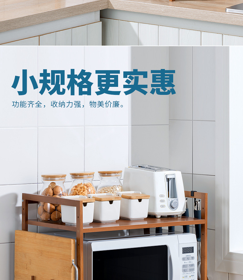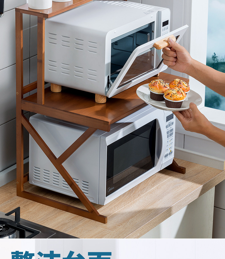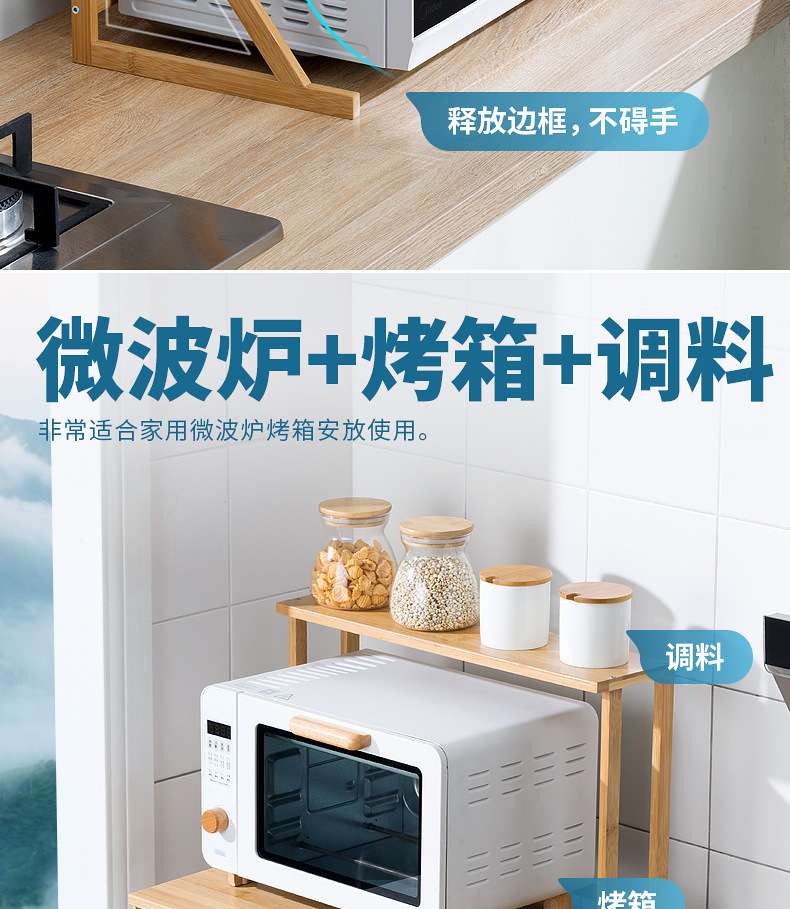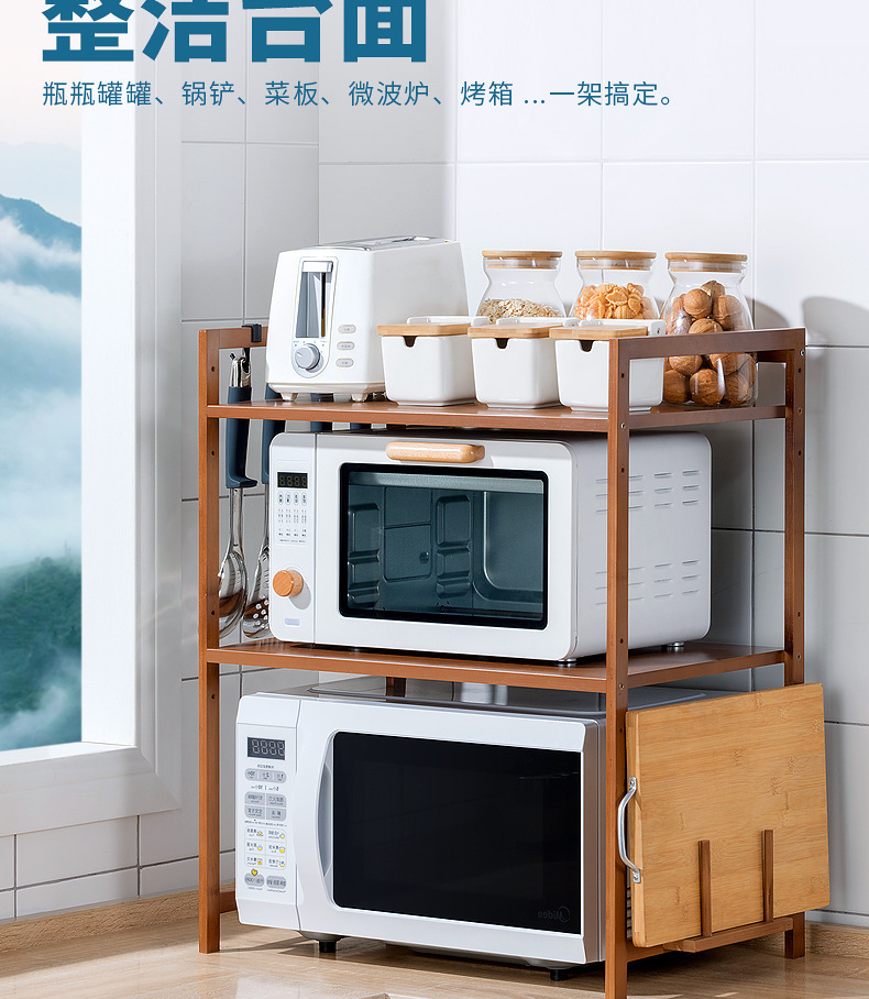 주방 랙 조리대 더블 레이어 전자 레인지 랙 데스크탑 조미료 오븐 보관 랙 대나무 단단한 나무