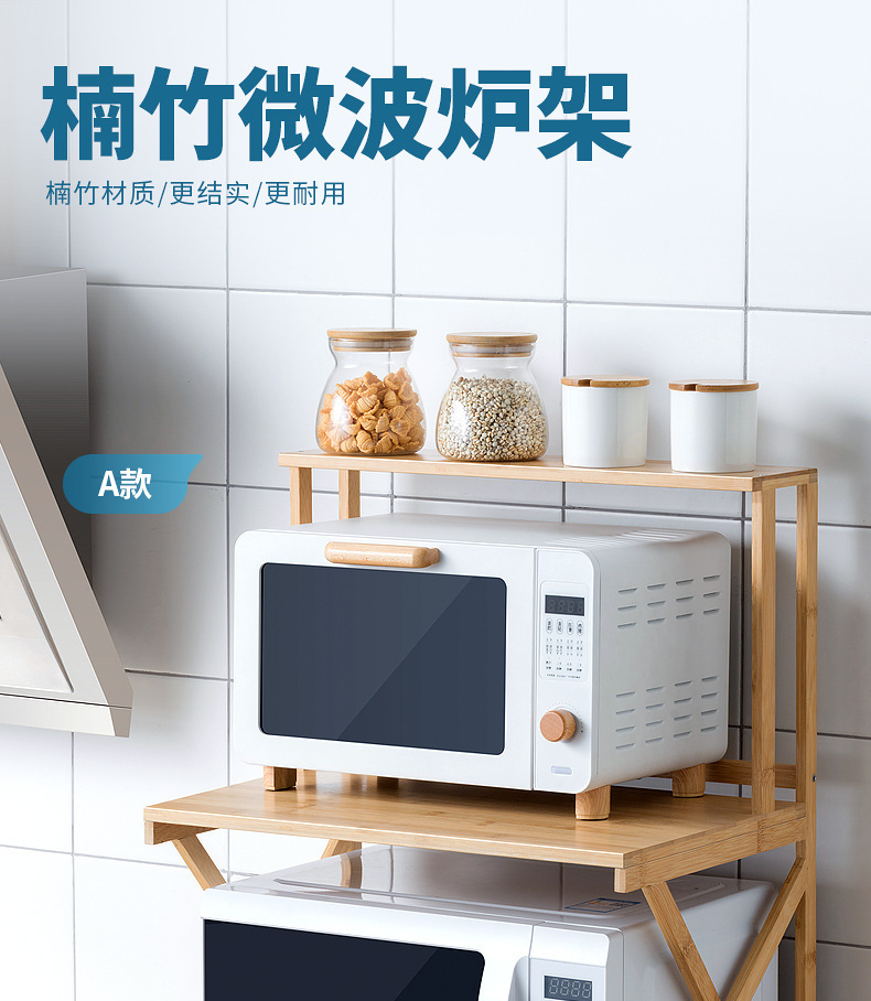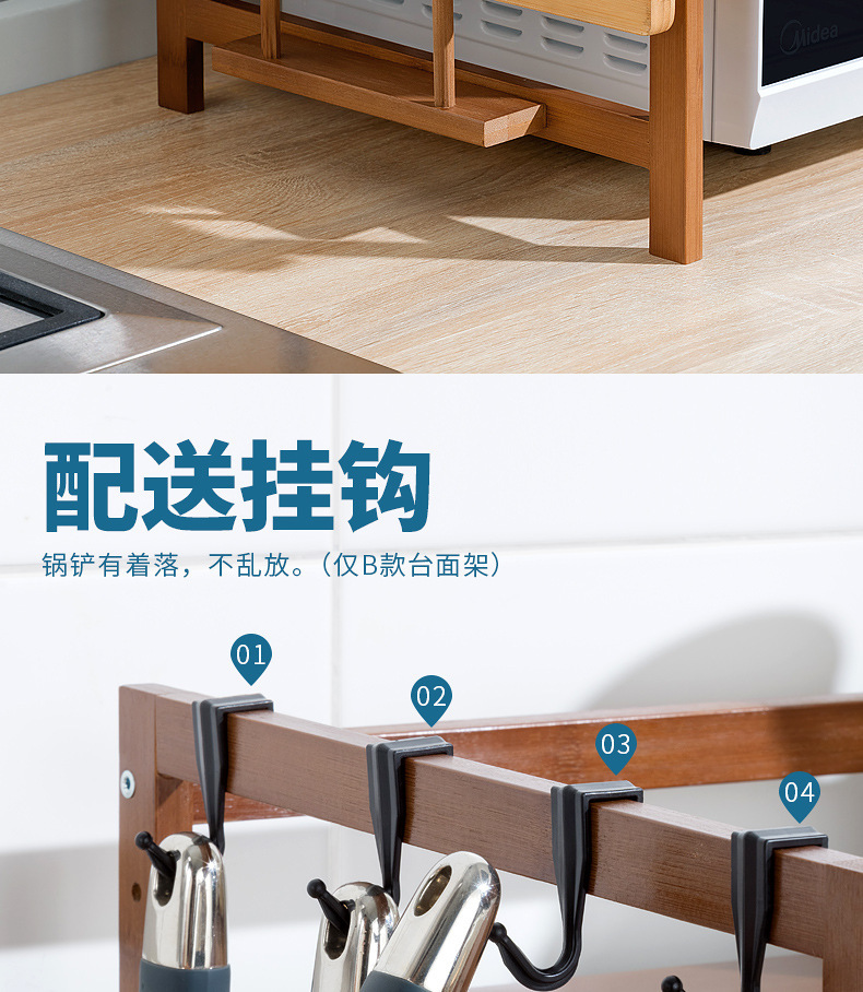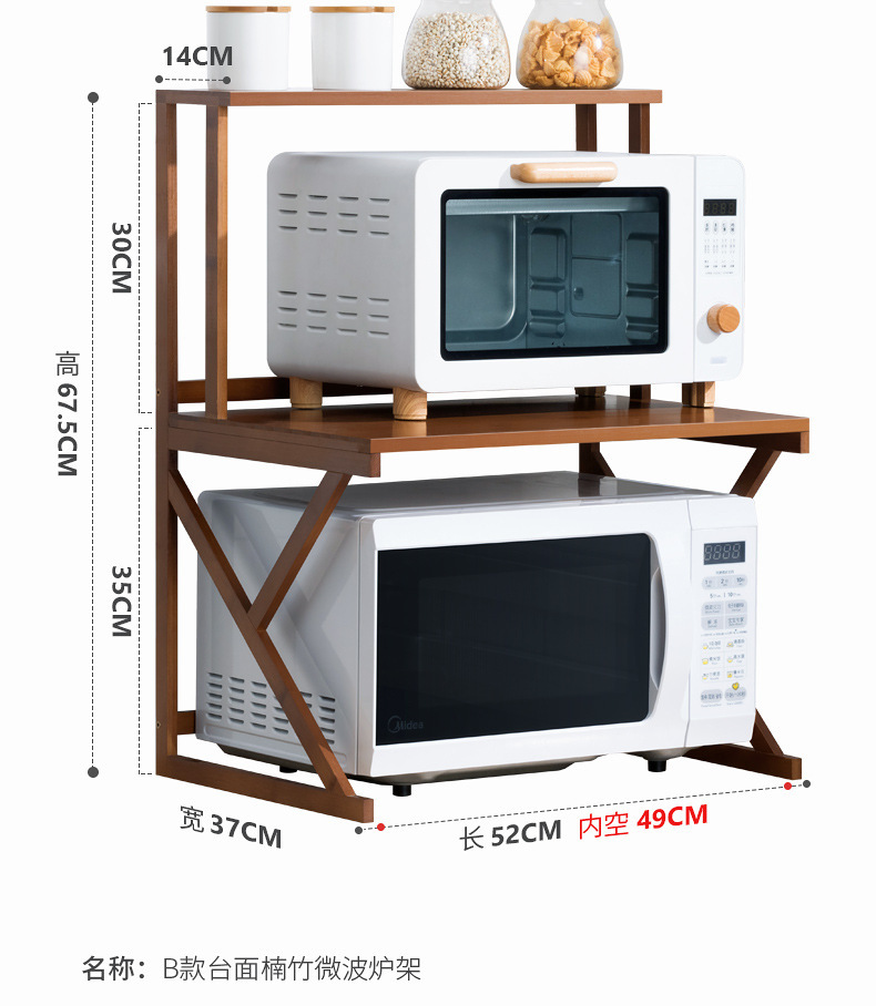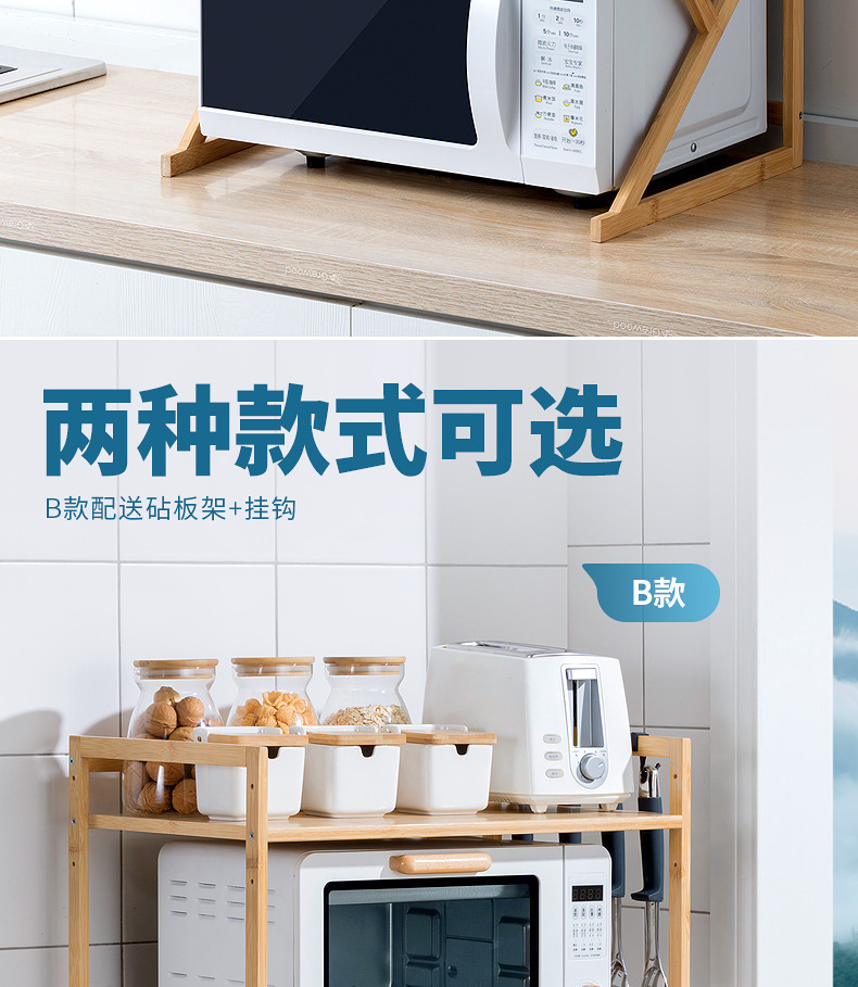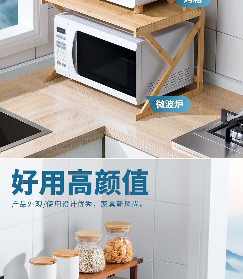 주방 랙 조리대 더블 레이어 전자 레인지 랙 데스크탑 조미료 오븐 보관 랙 대나무 단단한 나무