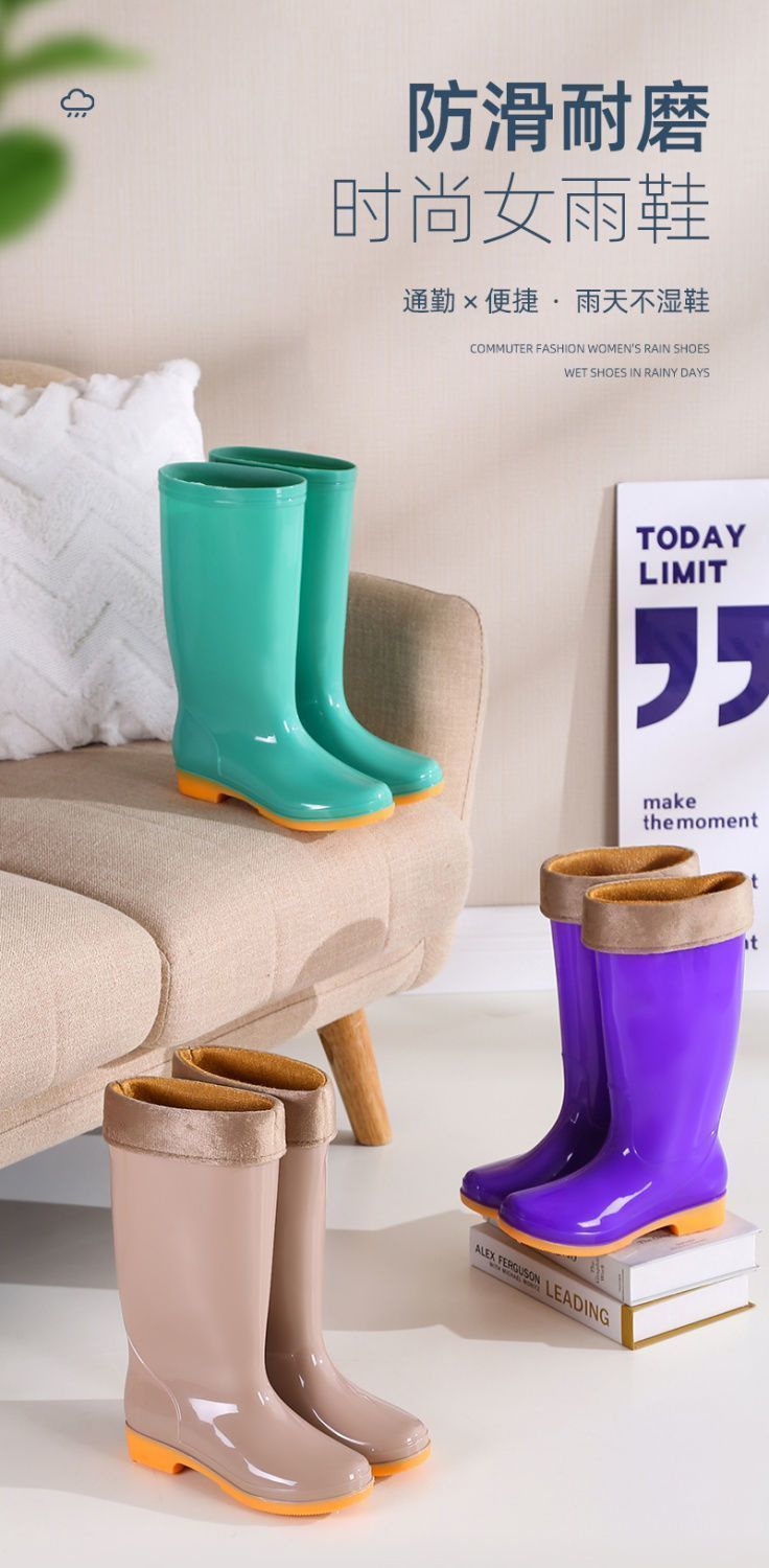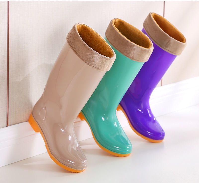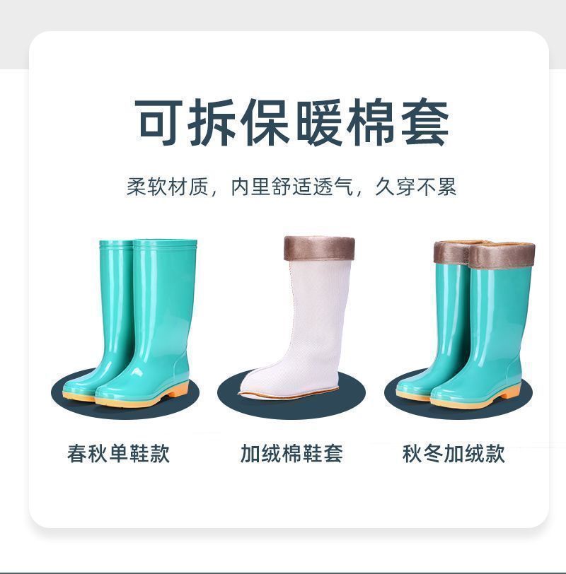 하이탑 쇠고기 힘줄 플러스 벨벳 코튼 레인부츠, 레인부츠, 방수신발, 고무신, 덧신, 워터부츠, 여성성인 주방 겨울여름