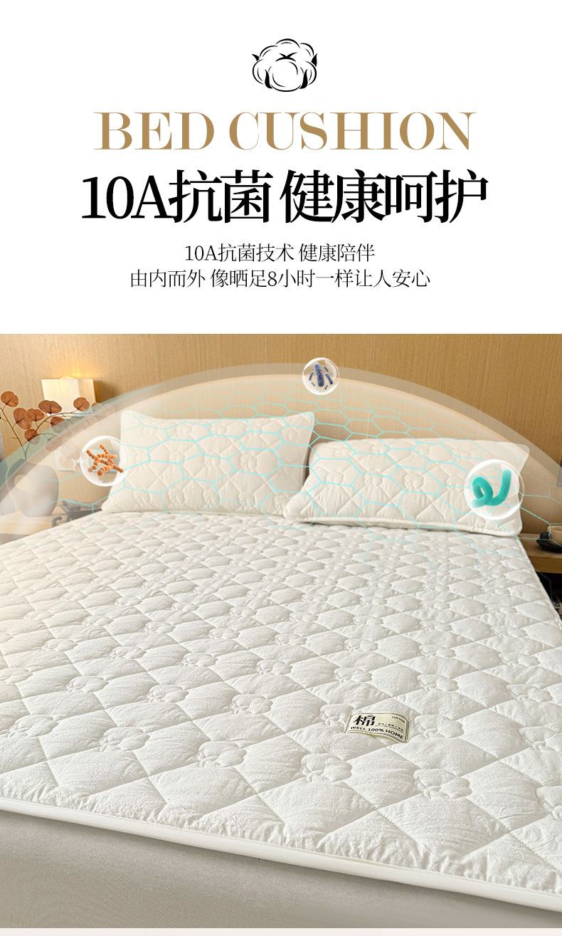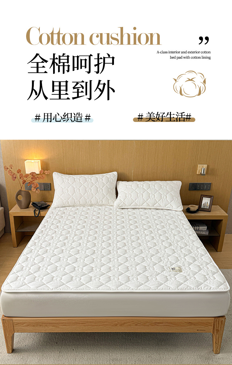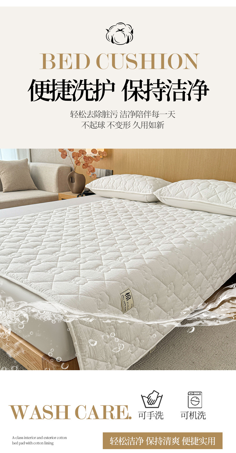 A급 누빔 순면 100% 신장산 면 침대 보호 패드, 순면 세탁 가능한 학생 기숙사용 소프트 패드 침대 시트