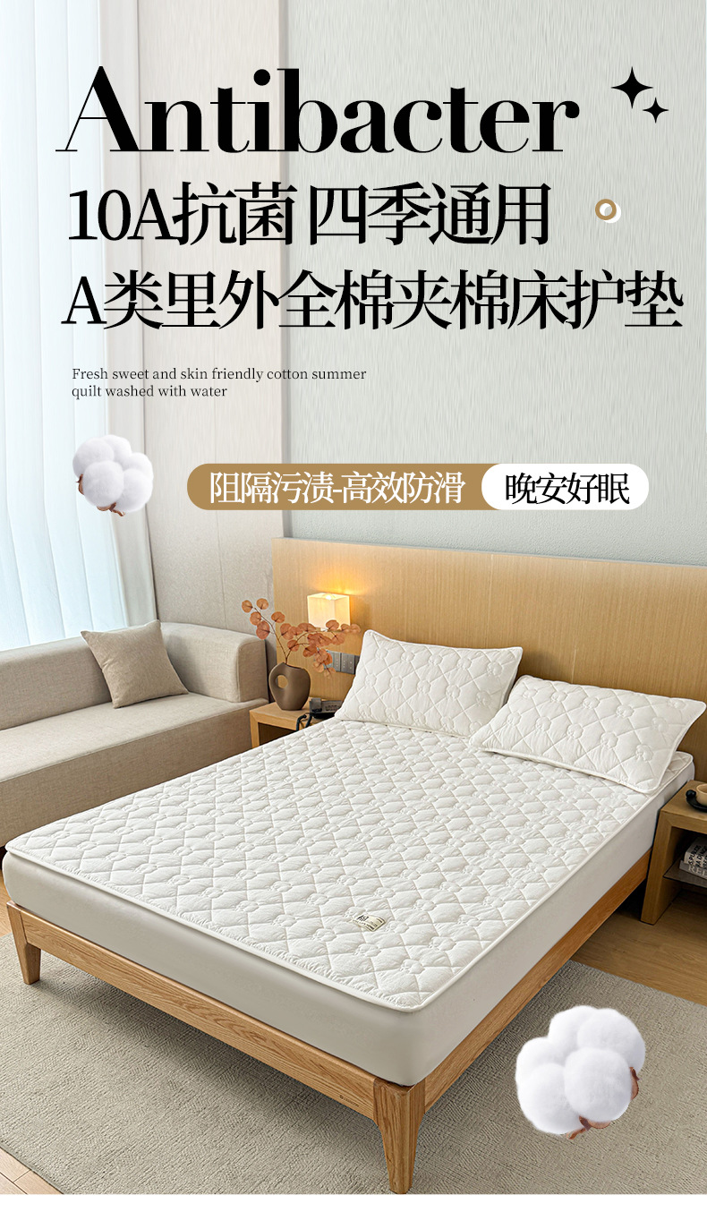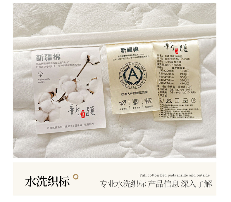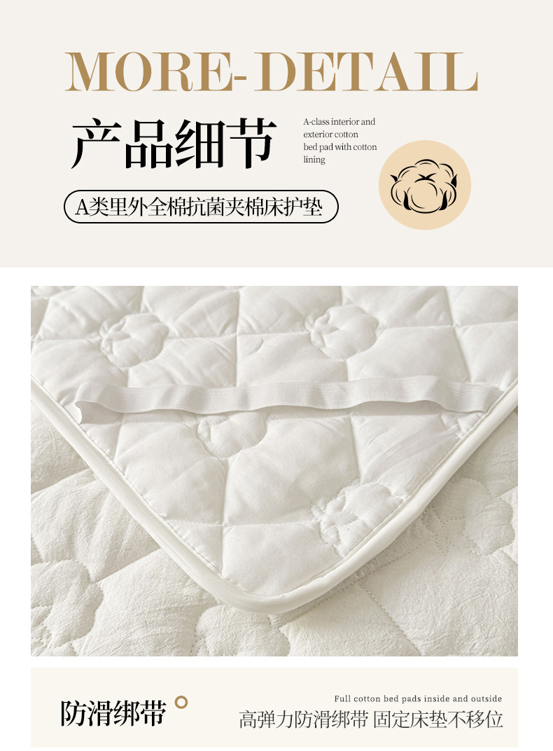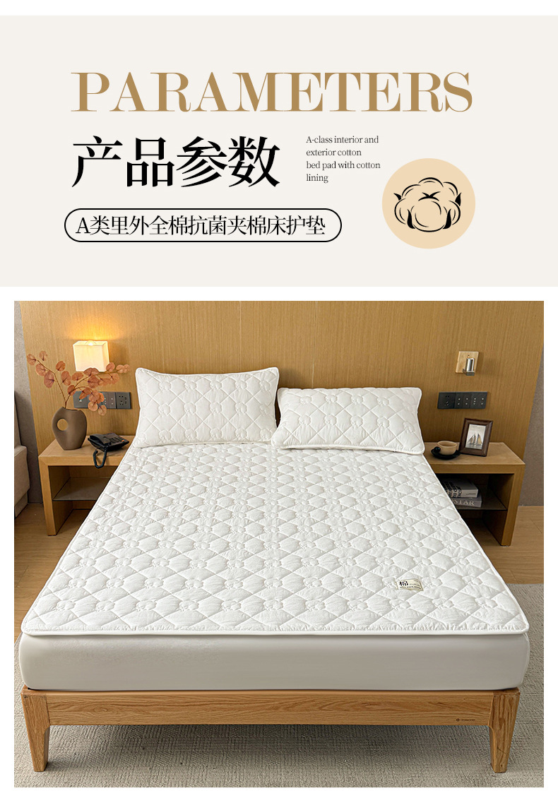A급 누빔 순면 100% 신장산 면 침대 보호 패드, 순면 세탁 가능한 학생 기숙사용 소프트 패드 침대 시트