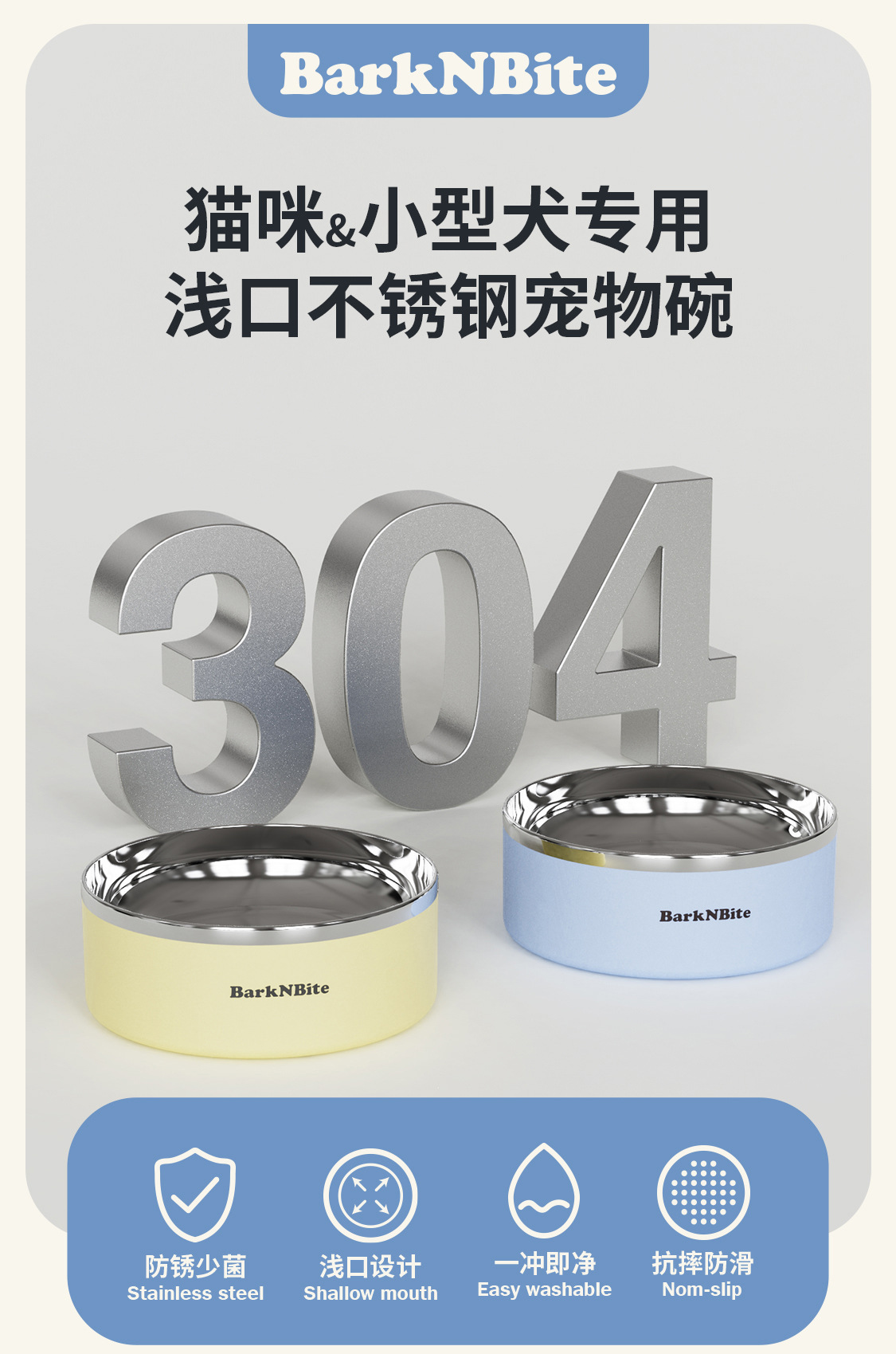 고양이 먹이 그릇 SUS304 스테인레스 스틸 고양이 그릇 낙하 방지 소형 개 먹이 그릇 식수 뒤집기 방지 얕은 개 밥 그릇