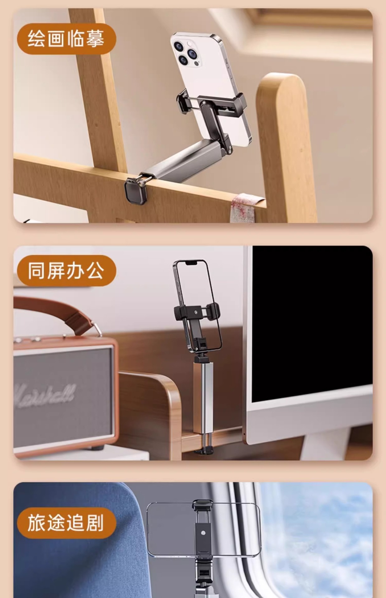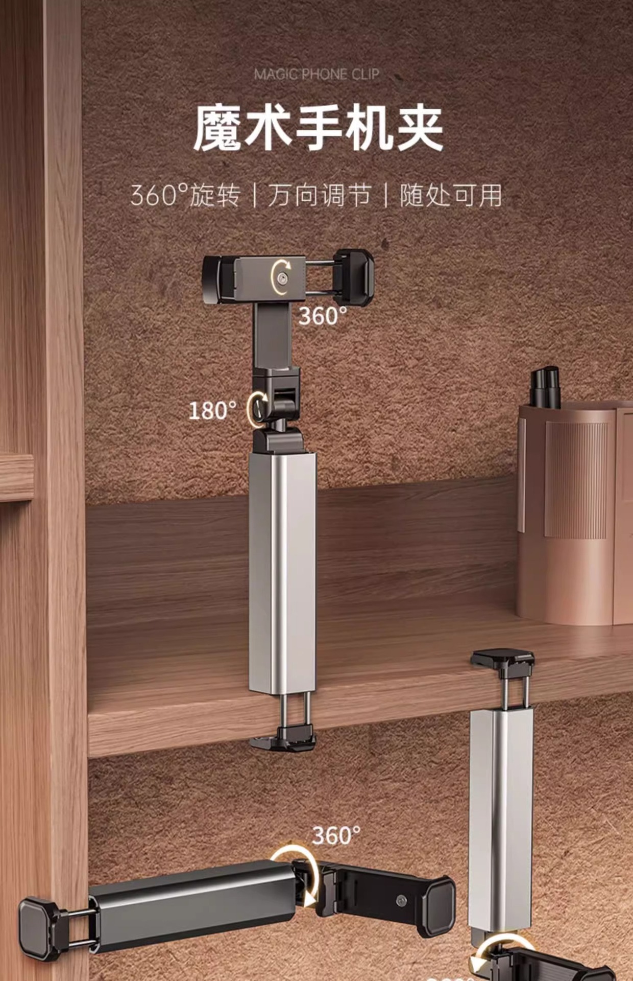 새로운 금속 회전 휴대폰 홀더, 게으른 사람들을 위한 필수품, 휴대용 접이식 사진 촬영 라이브 방송 셀카봉