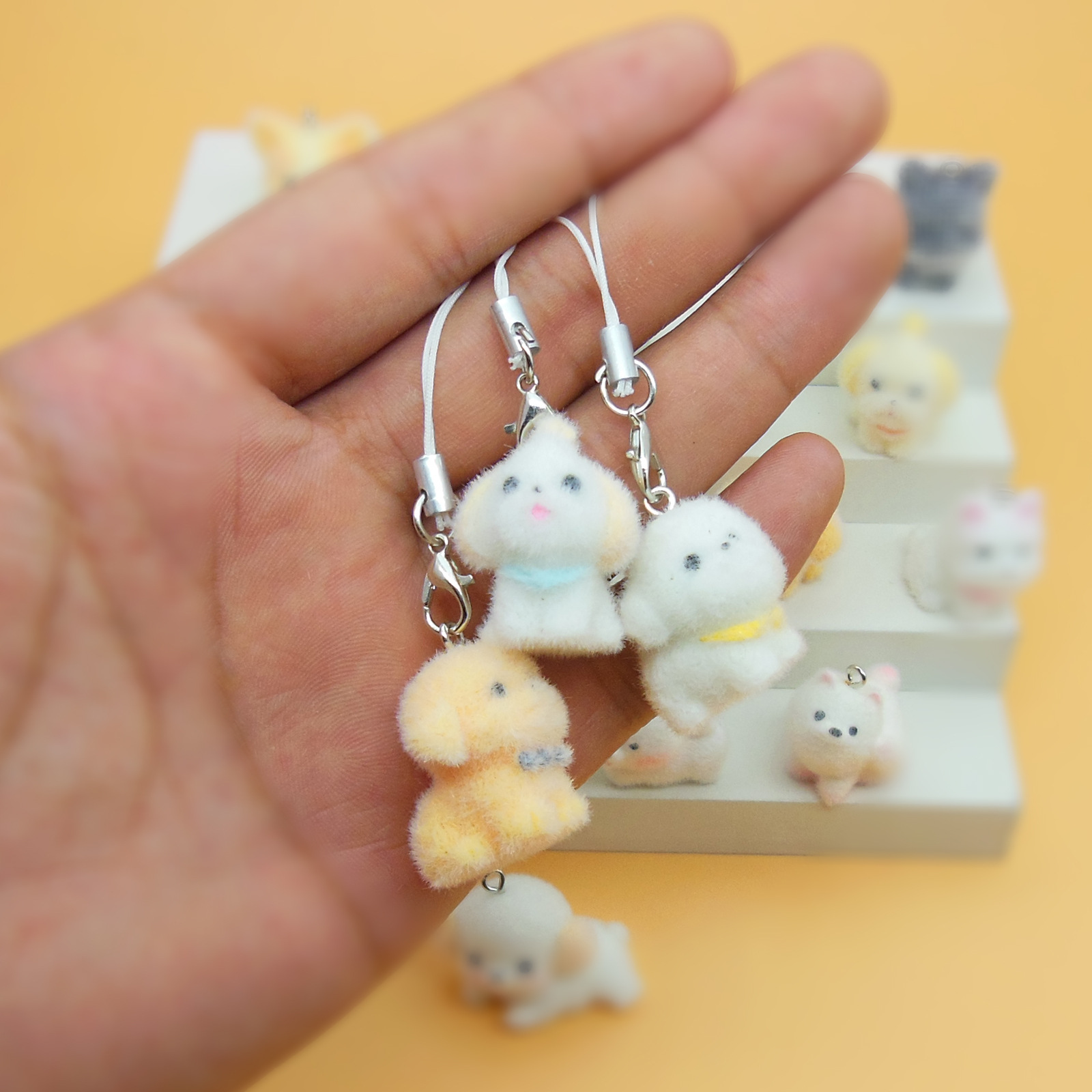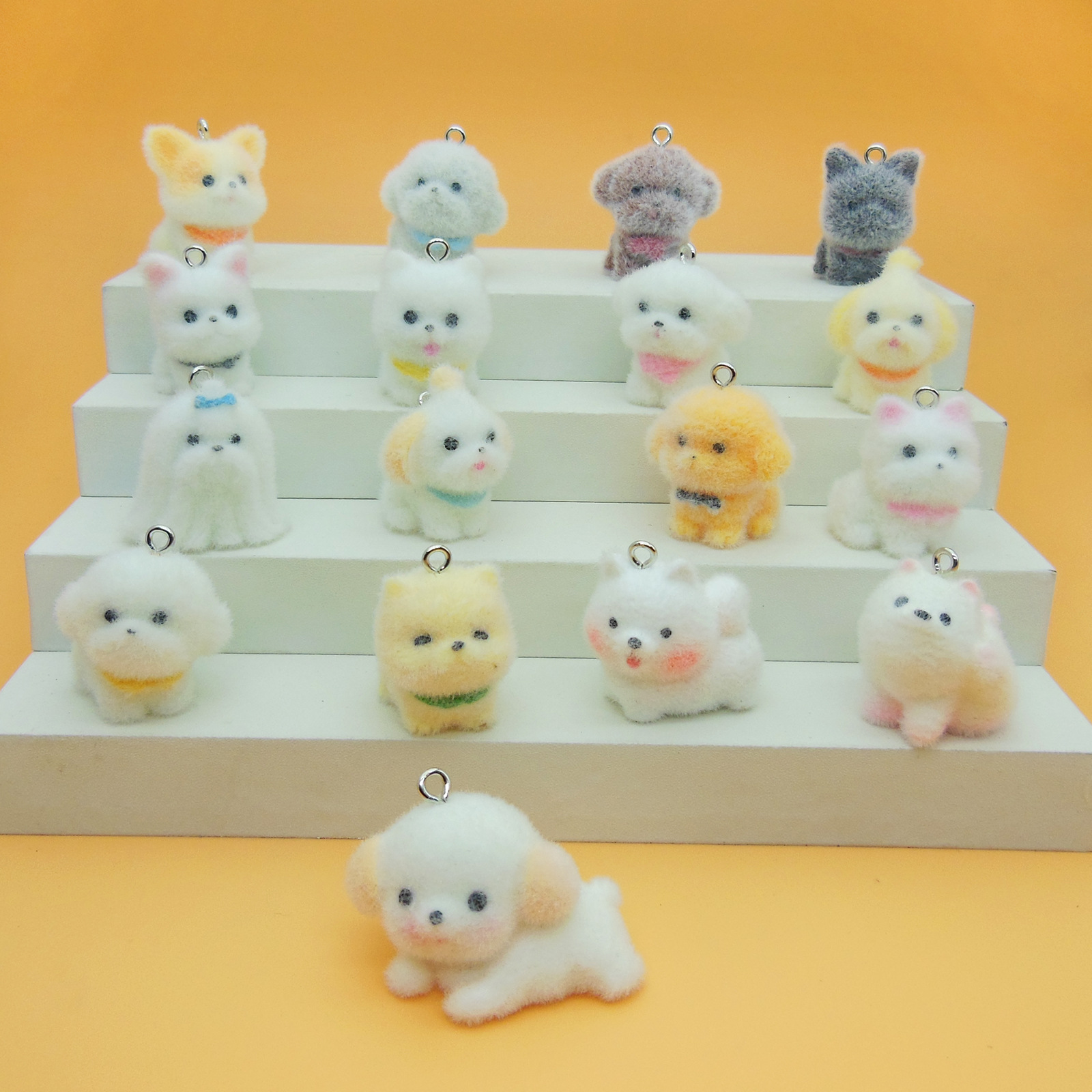 새로운 수지 벨벳 개 작은 동물 수제 DIY 키 체인 펜던트 애완 동물 강아지 가방 쥬얼리 펜던트 액세서리