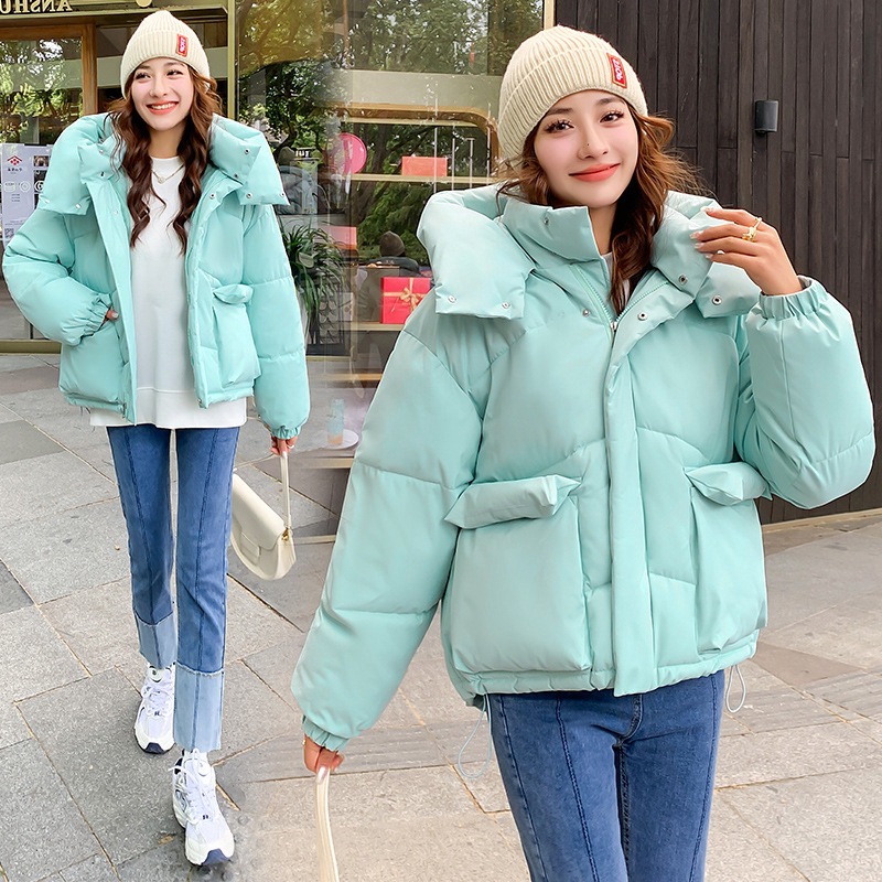 재고 있음 2025 새로운 스타일 여성용 푹신한 다운 코튼 코트 한국 스타일 느슨한 유럽과 미국의 코튼 코트 짧은 두꺼운 겨울 코트