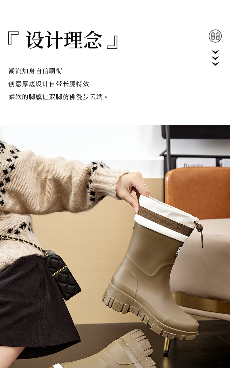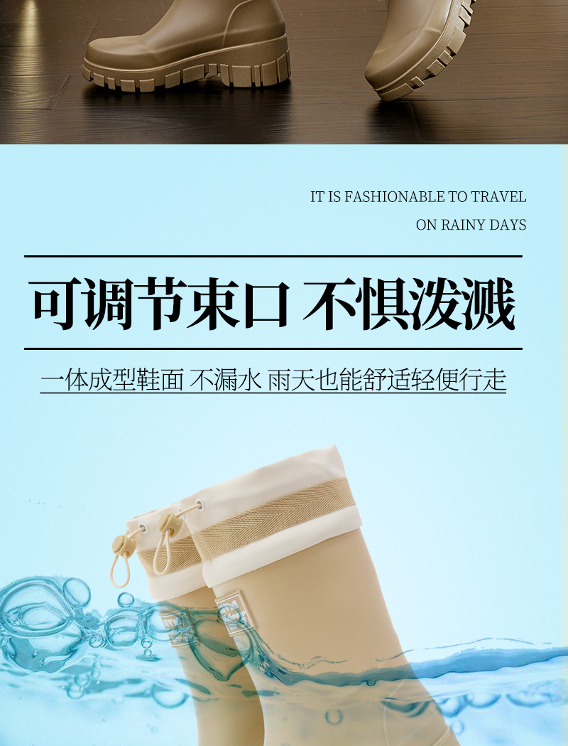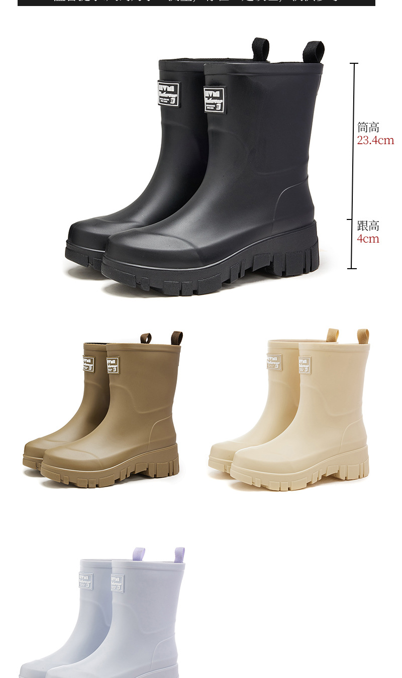 2025 여성용 새 장화, 미끄럼 방지 두꺼운 밑창 야외 캠핑 종아리 중간 장화, 방수 고무 신발, 두꺼운 밑창 패션 워터 슈즈