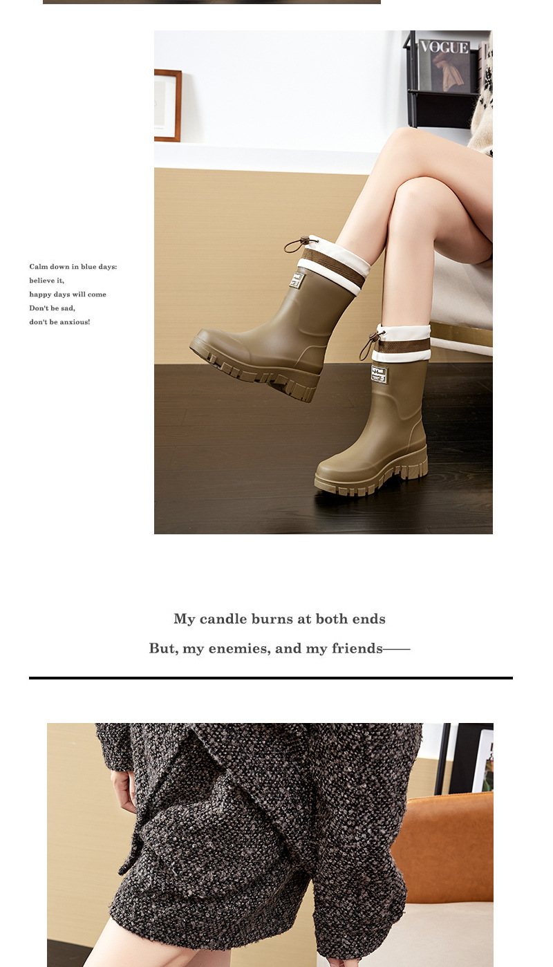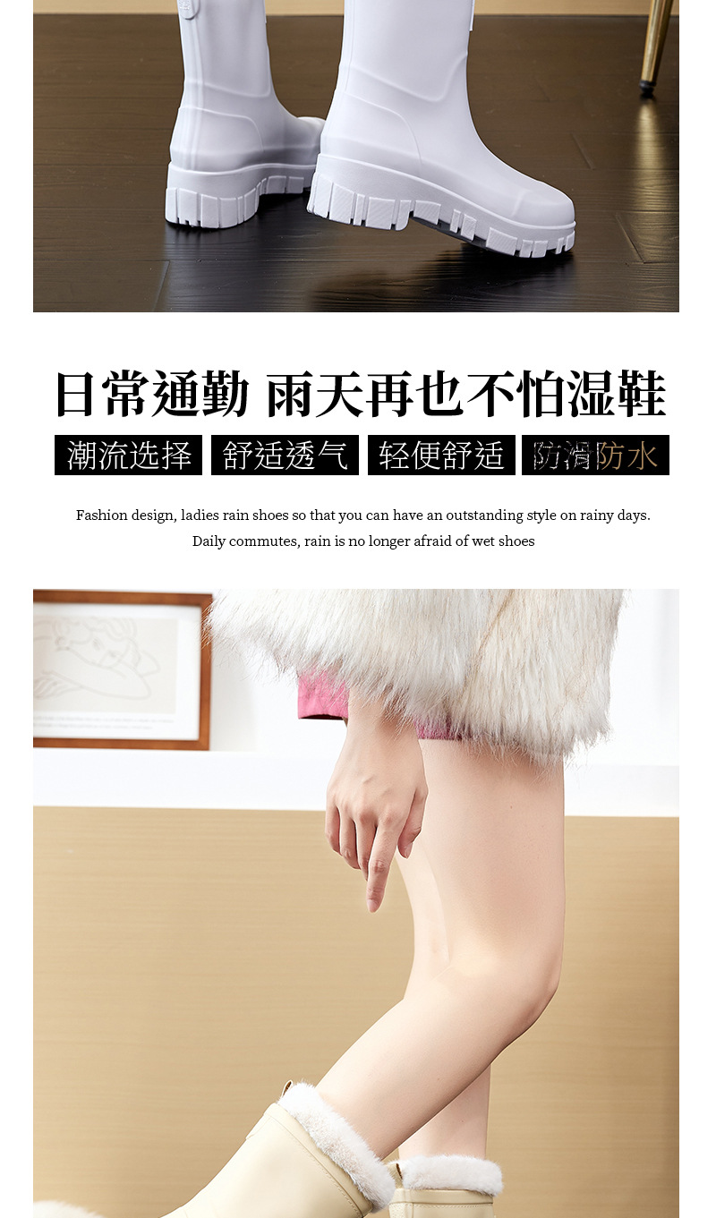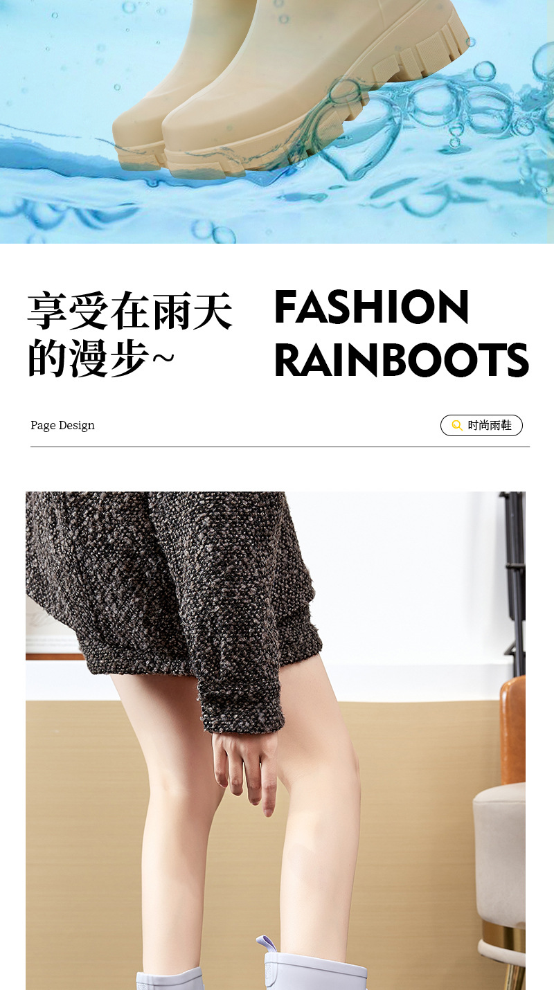 2025 여성용 새 장화, 미끄럼 방지 두꺼운 밑창 야외 캠핑 종아리 중간 장화, 방수 고무 신발, 두꺼운 밑창 패션 워터 슈즈