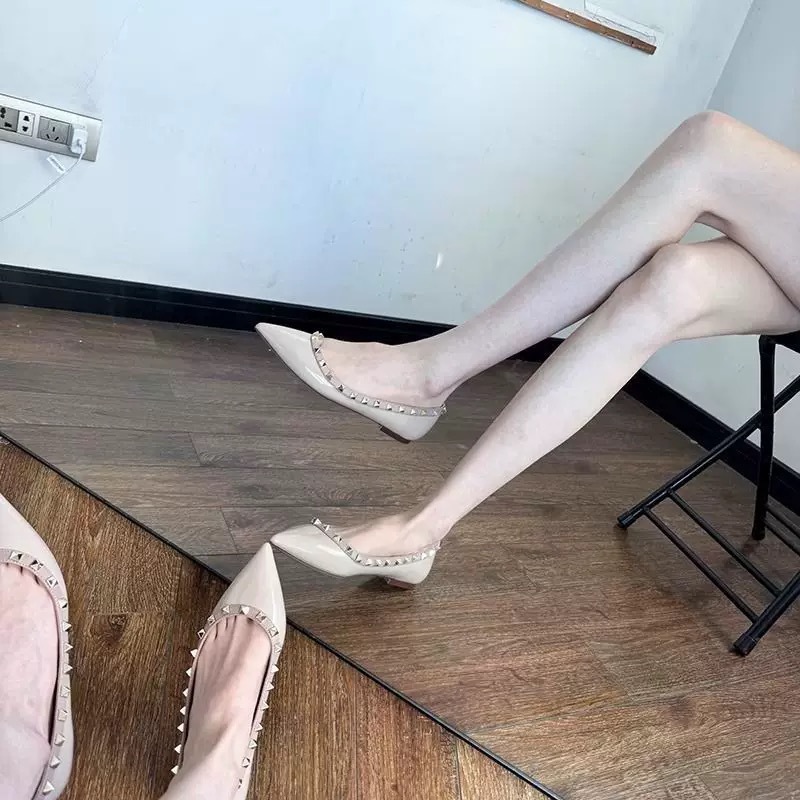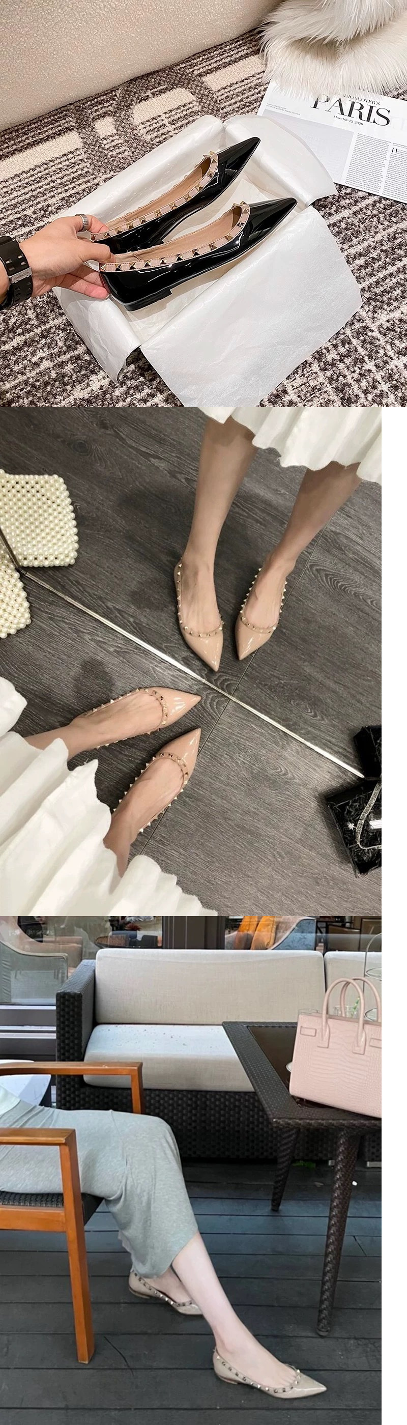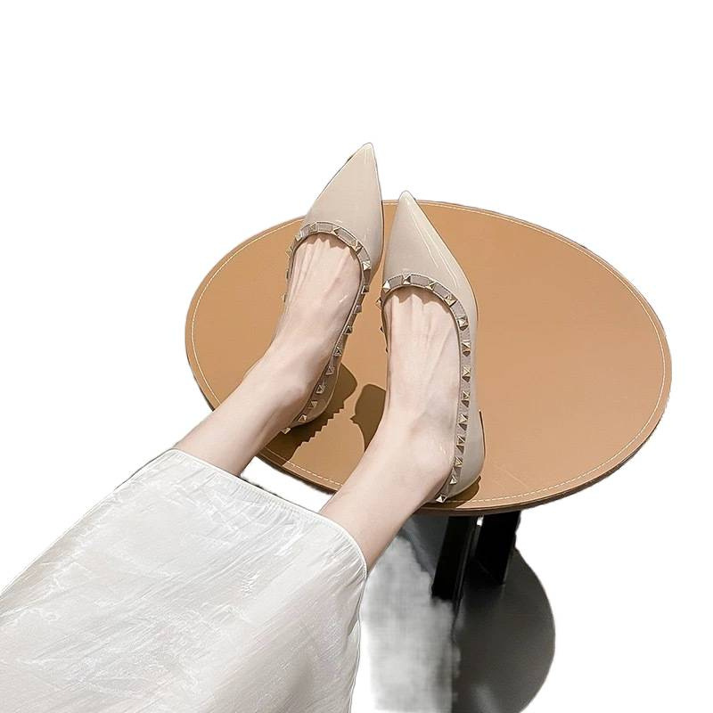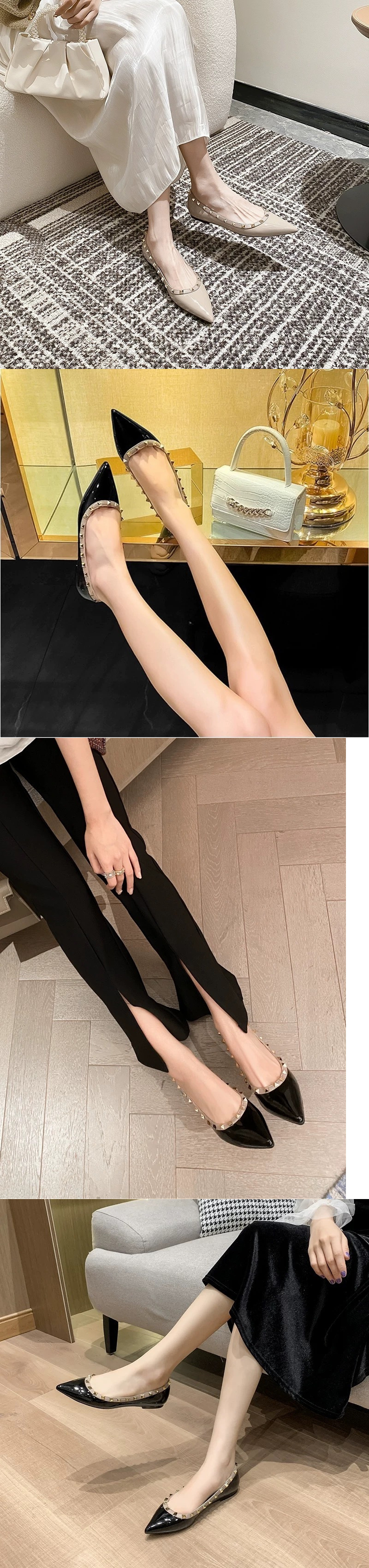 여성용 포인티드 토 싱글 슈즈, 플랫솔, 유럽 및 미국 소프트솔 보트 슈즈, 여성용 다용도 플랫 힐 슈즈, 2025 신형 리벳 슈즈