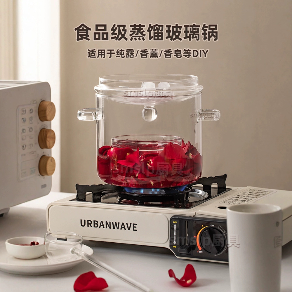 새로운 고붕규산 유리 냄비 세트 증류 유리 냄비 대용량 하이드로솔 이중 귀 절연 유리 냄비 도매