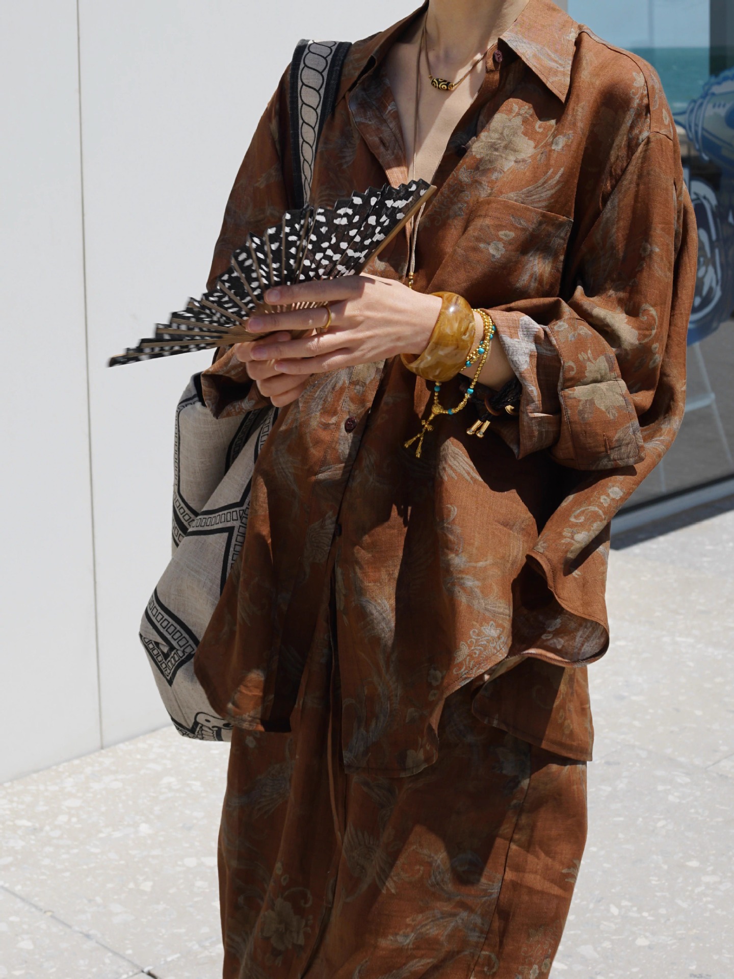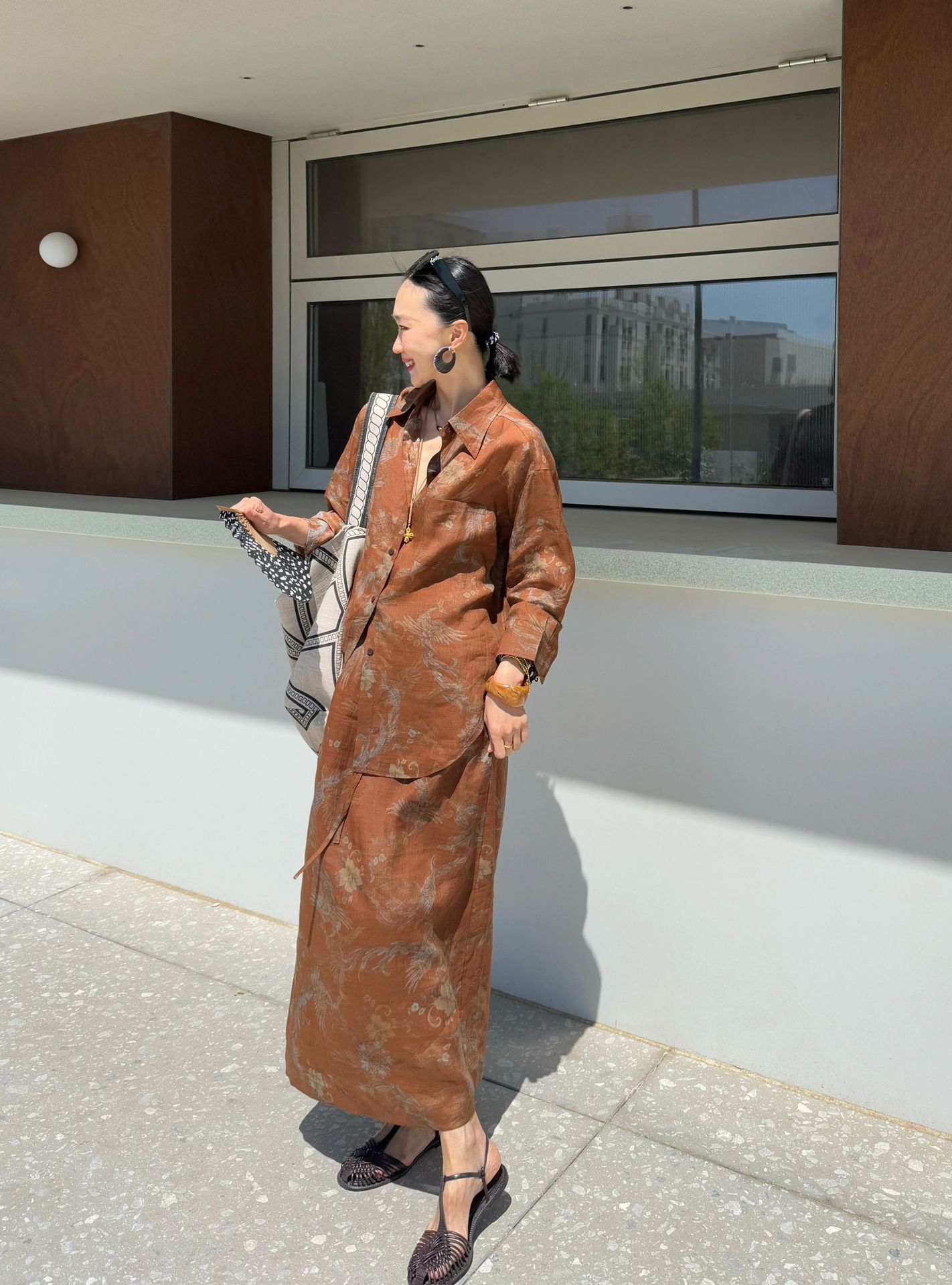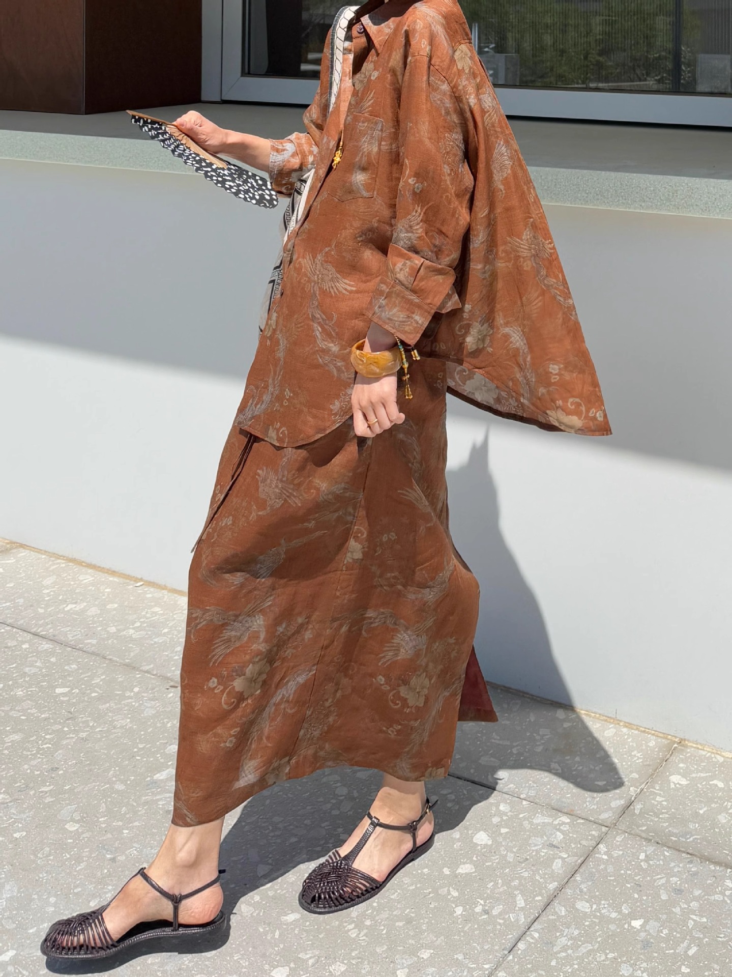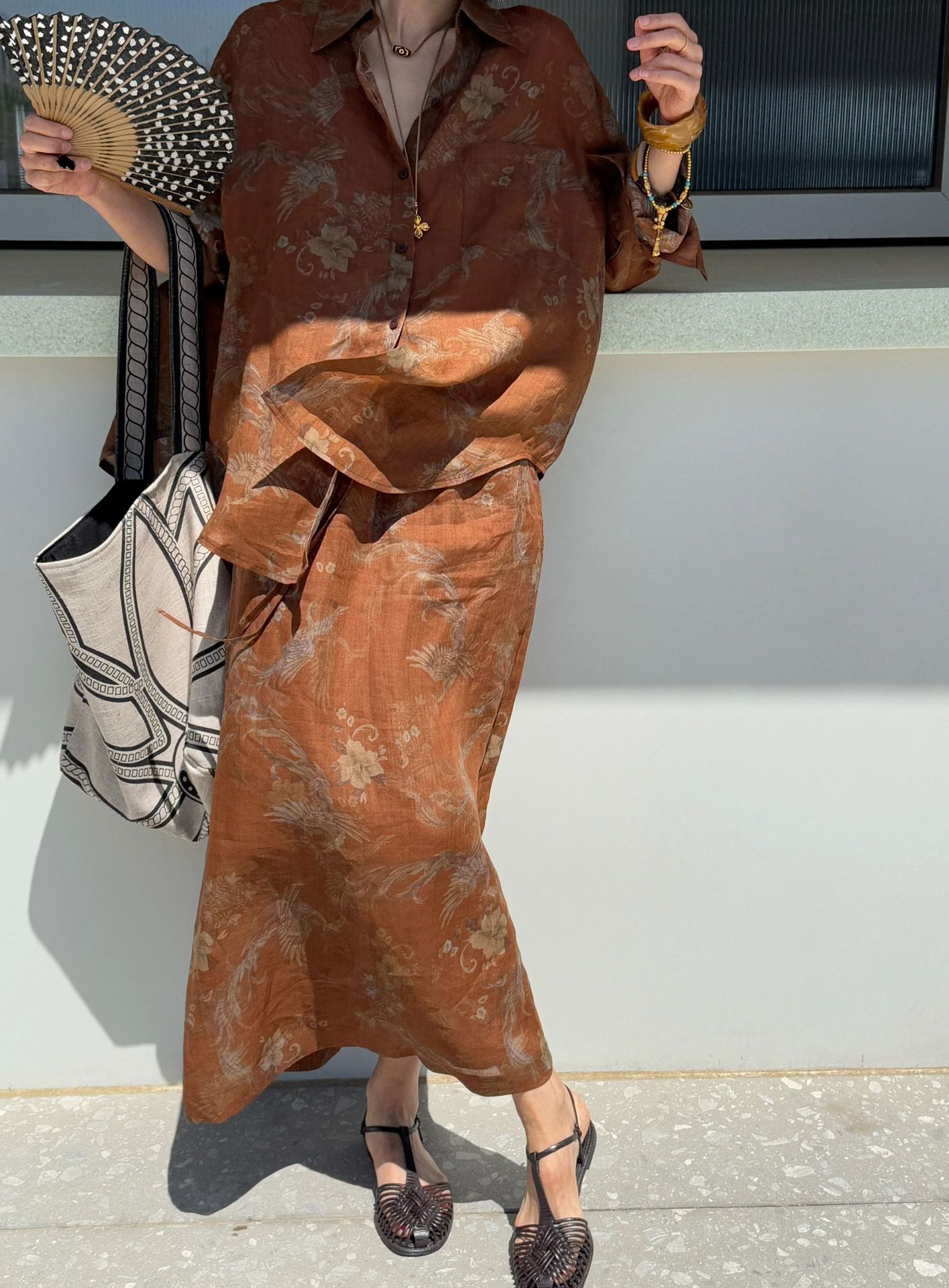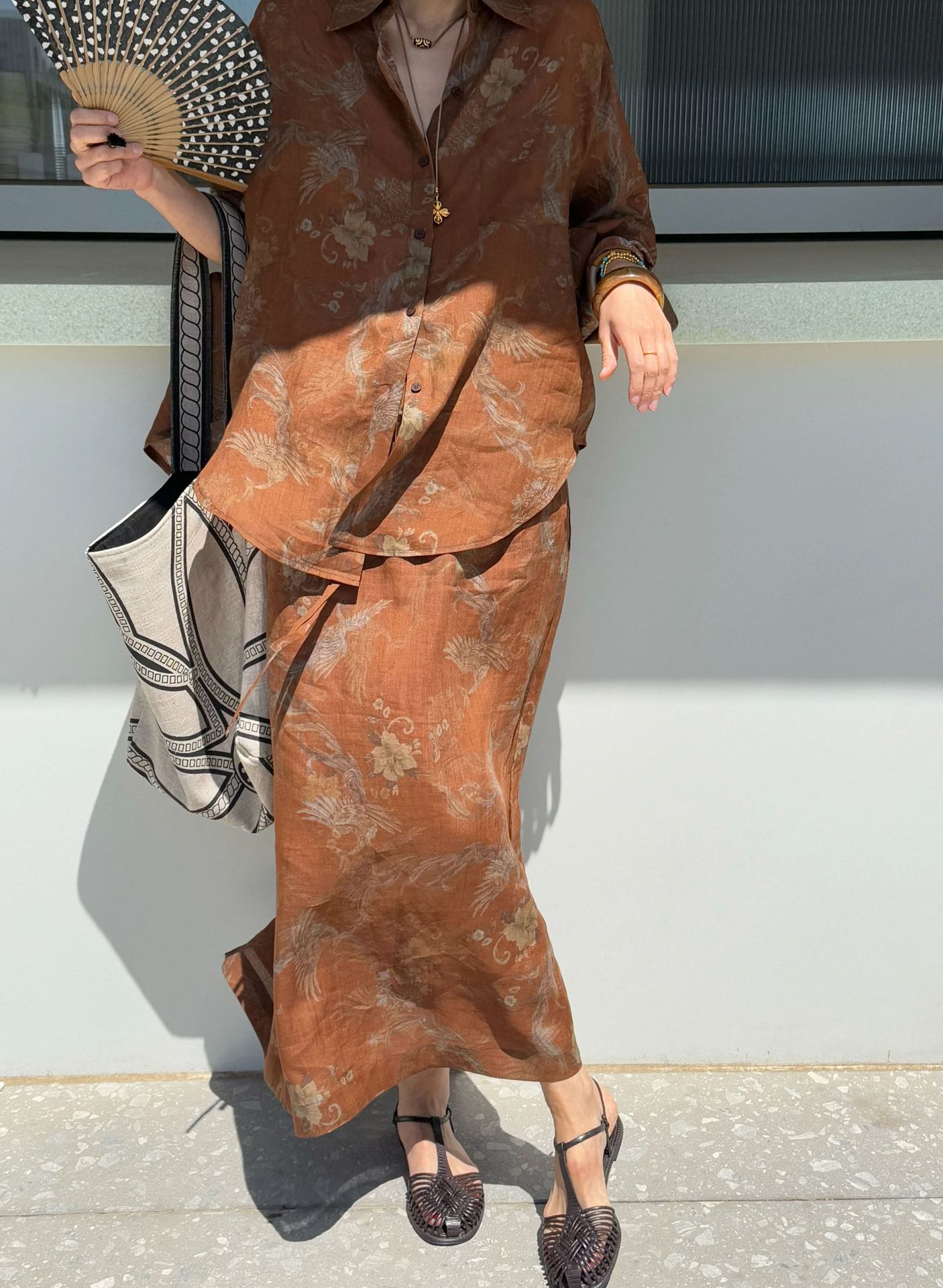 브라운 프린트 슈트