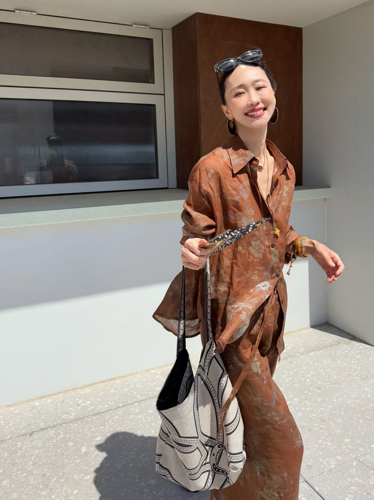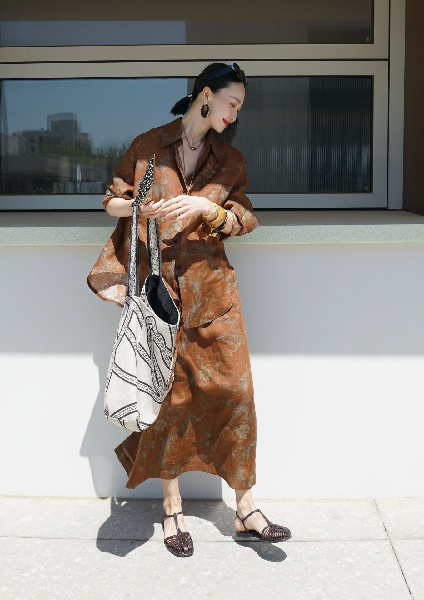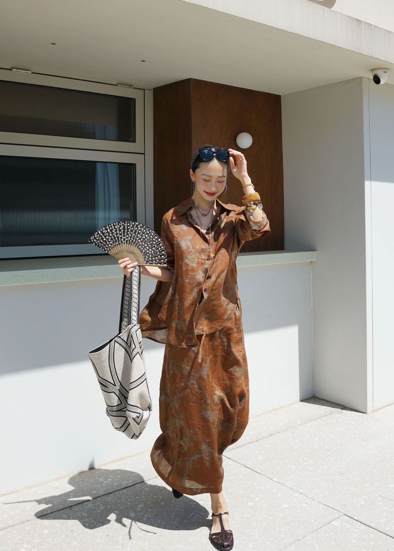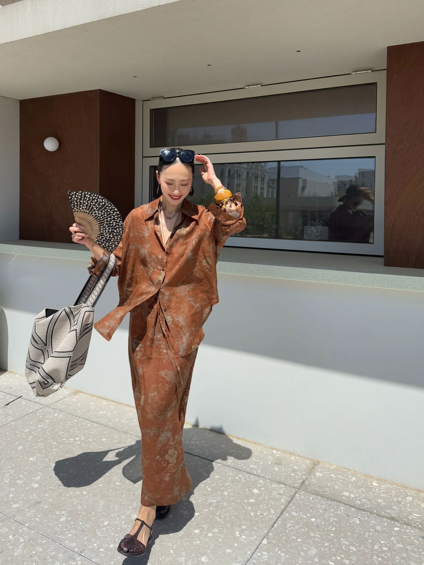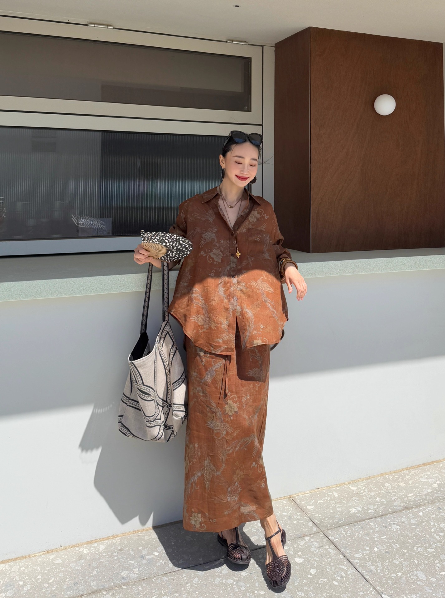 브라운 프린트 슈트