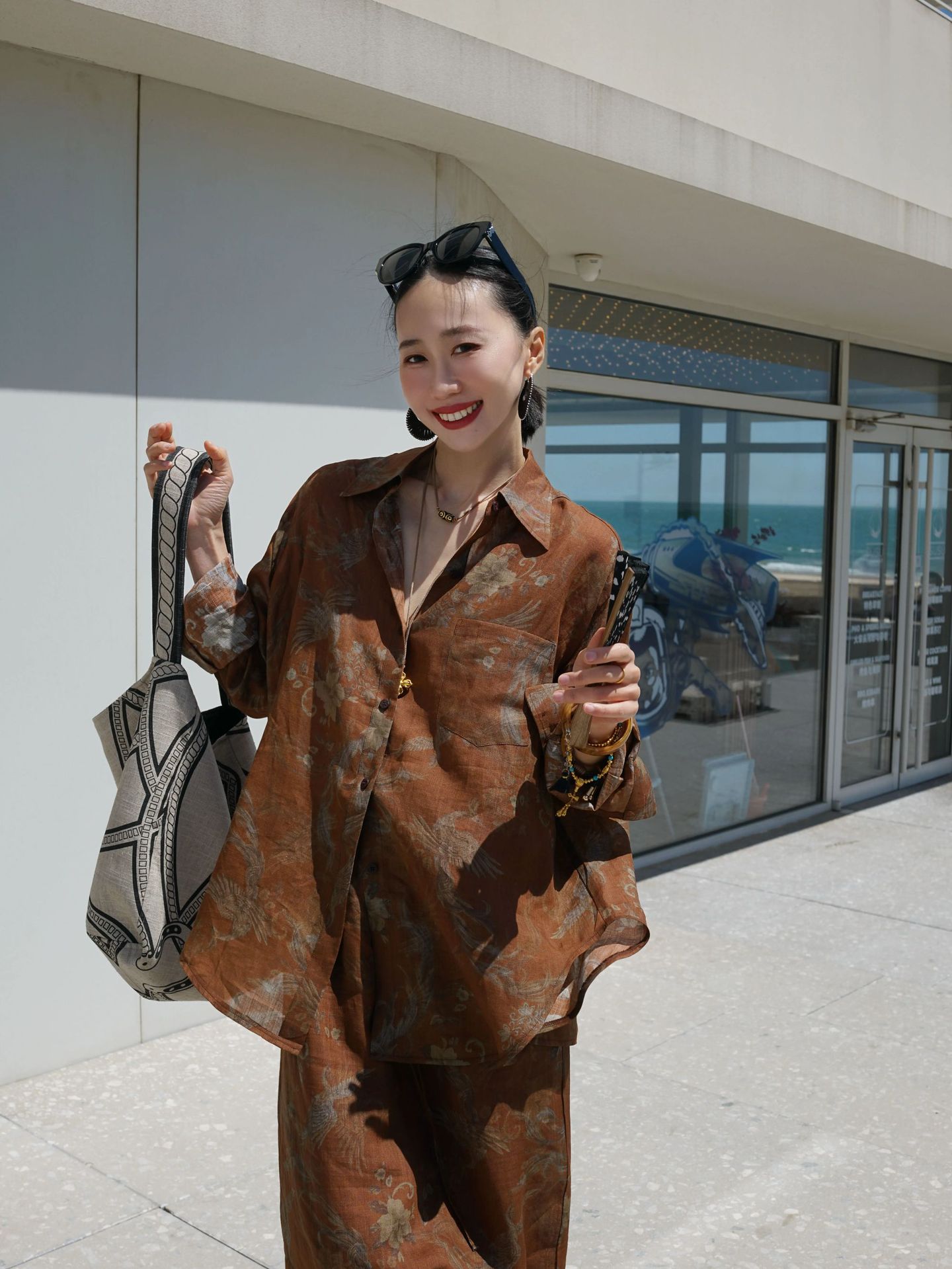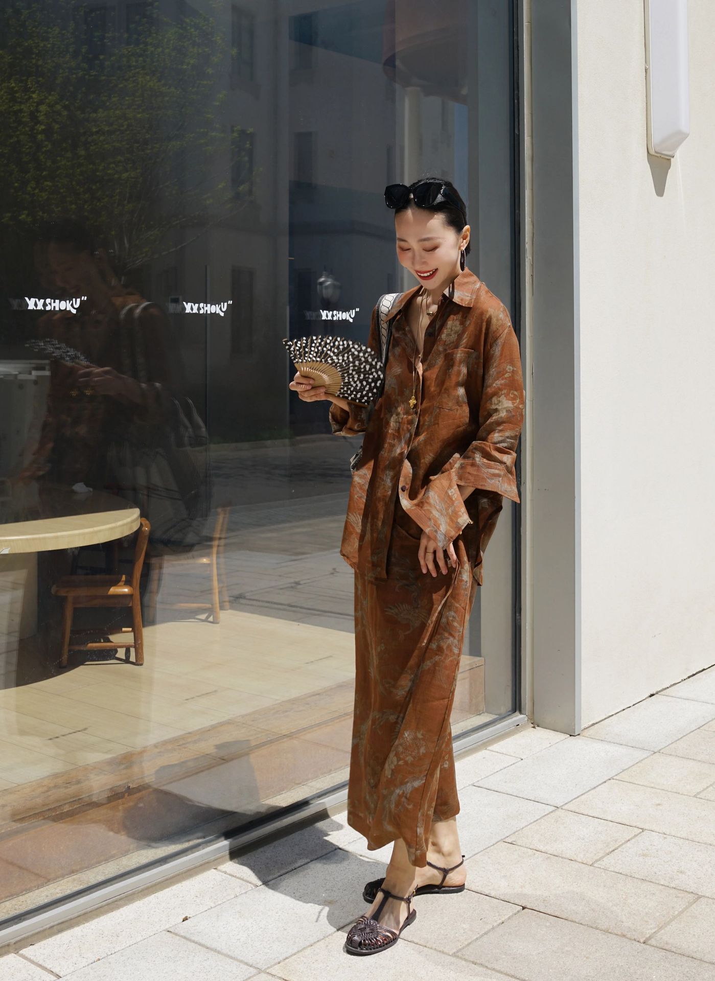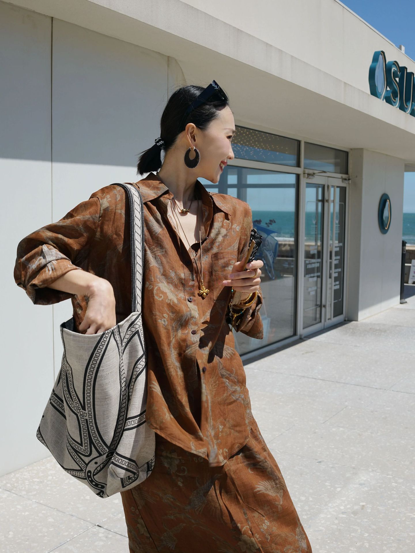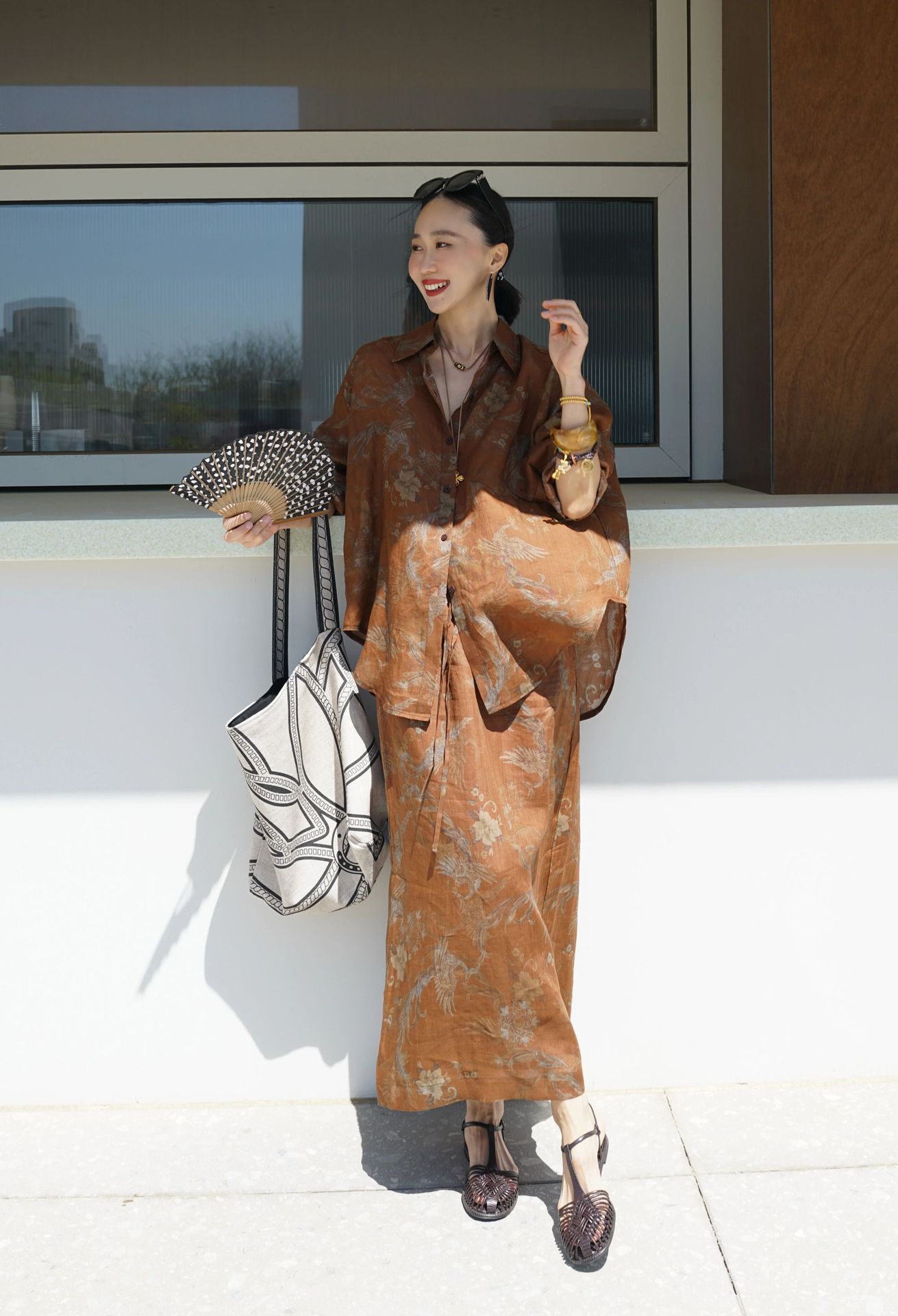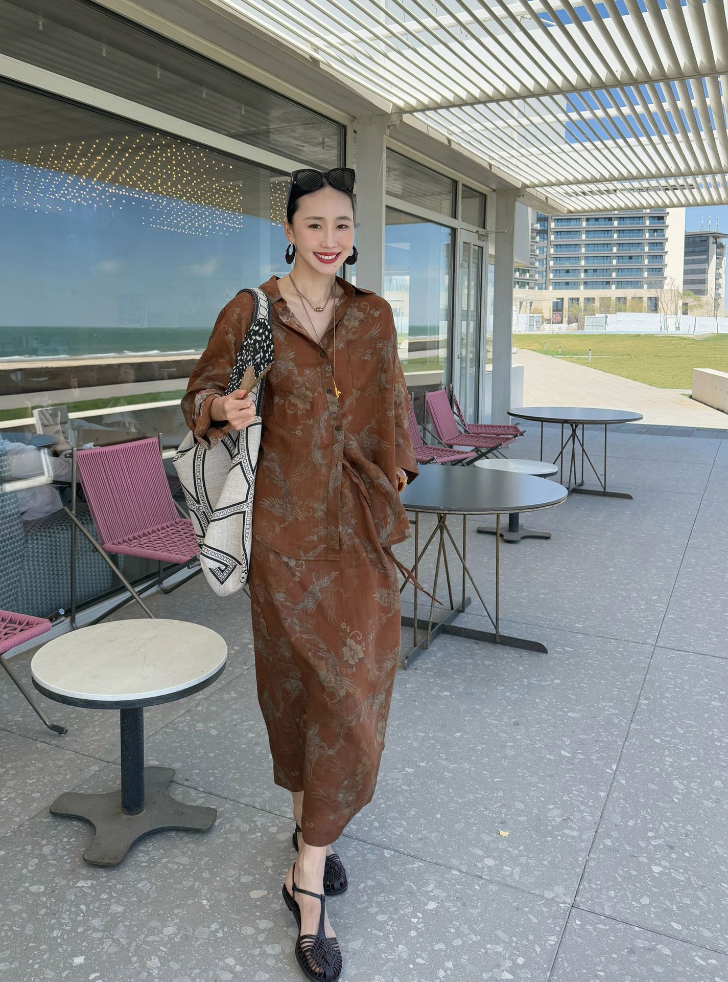 브라운 프린트 슈트