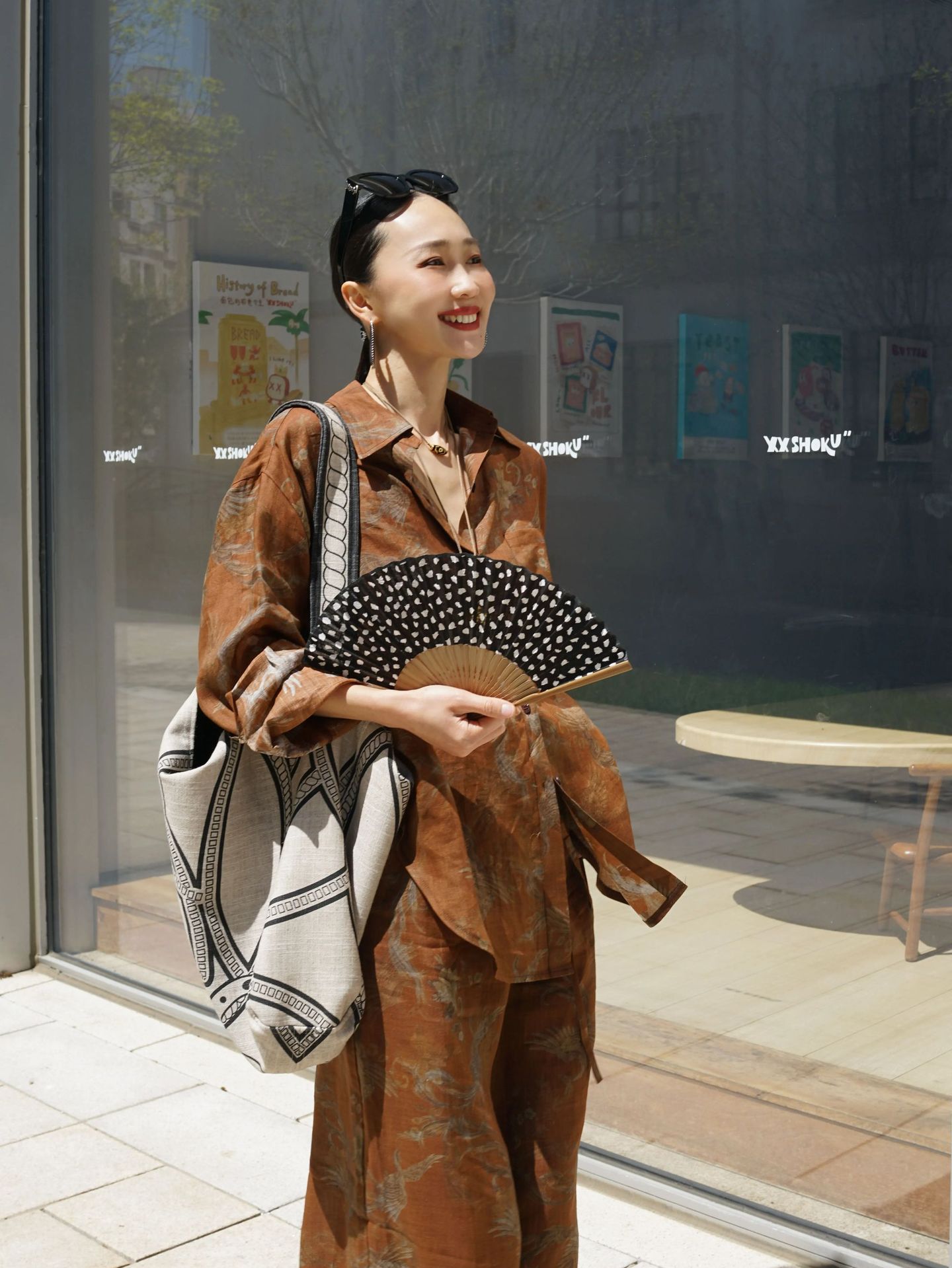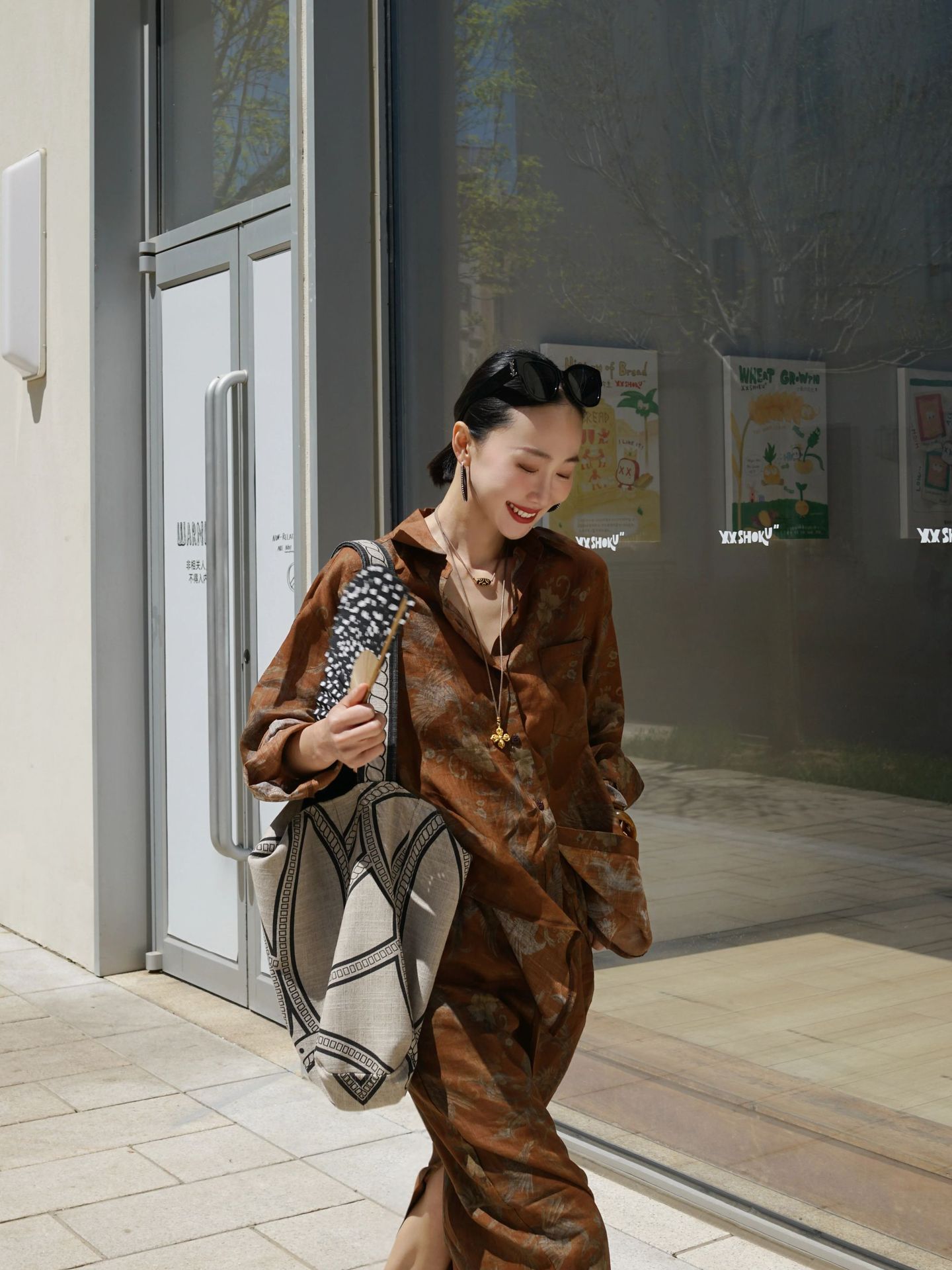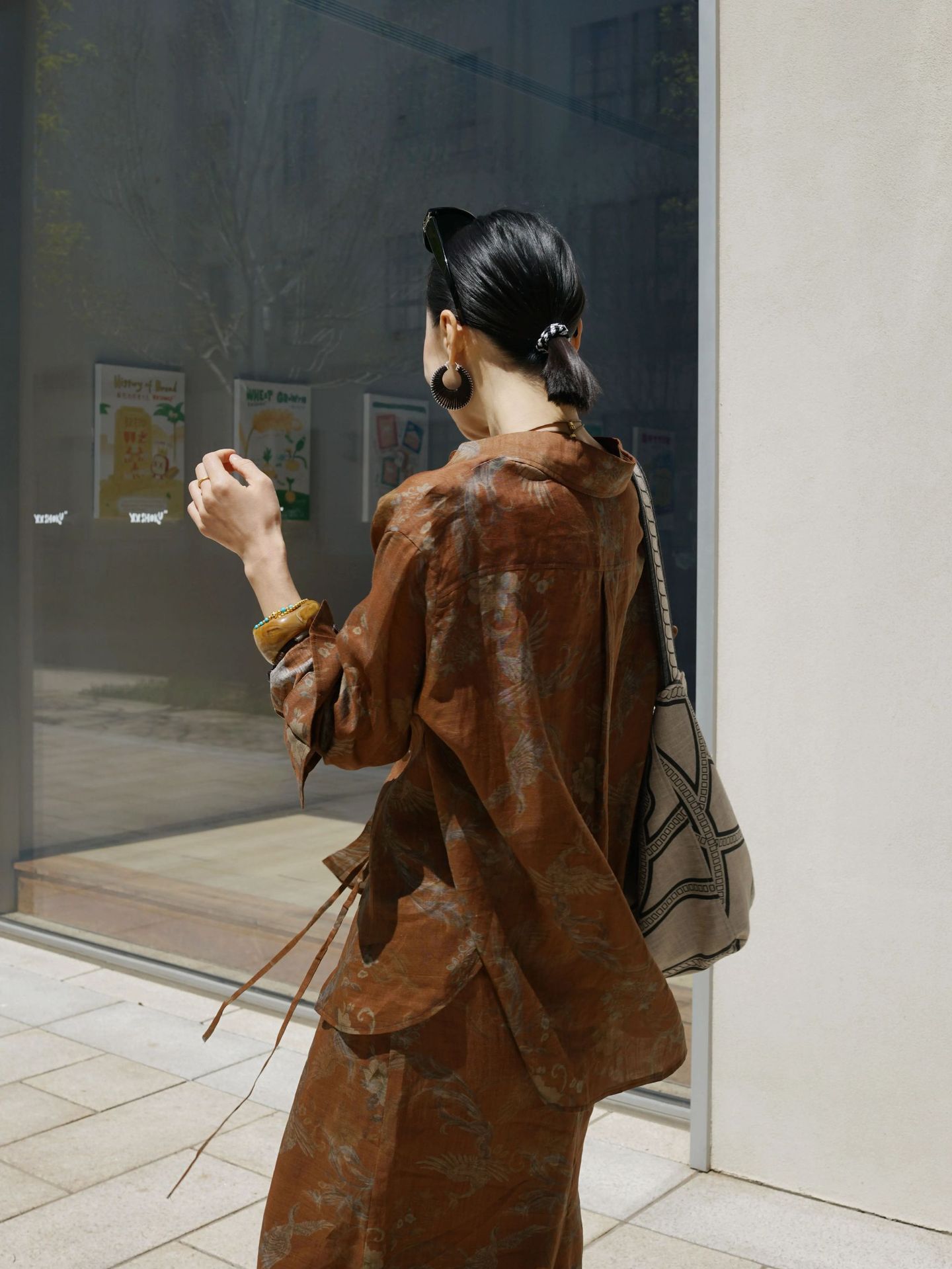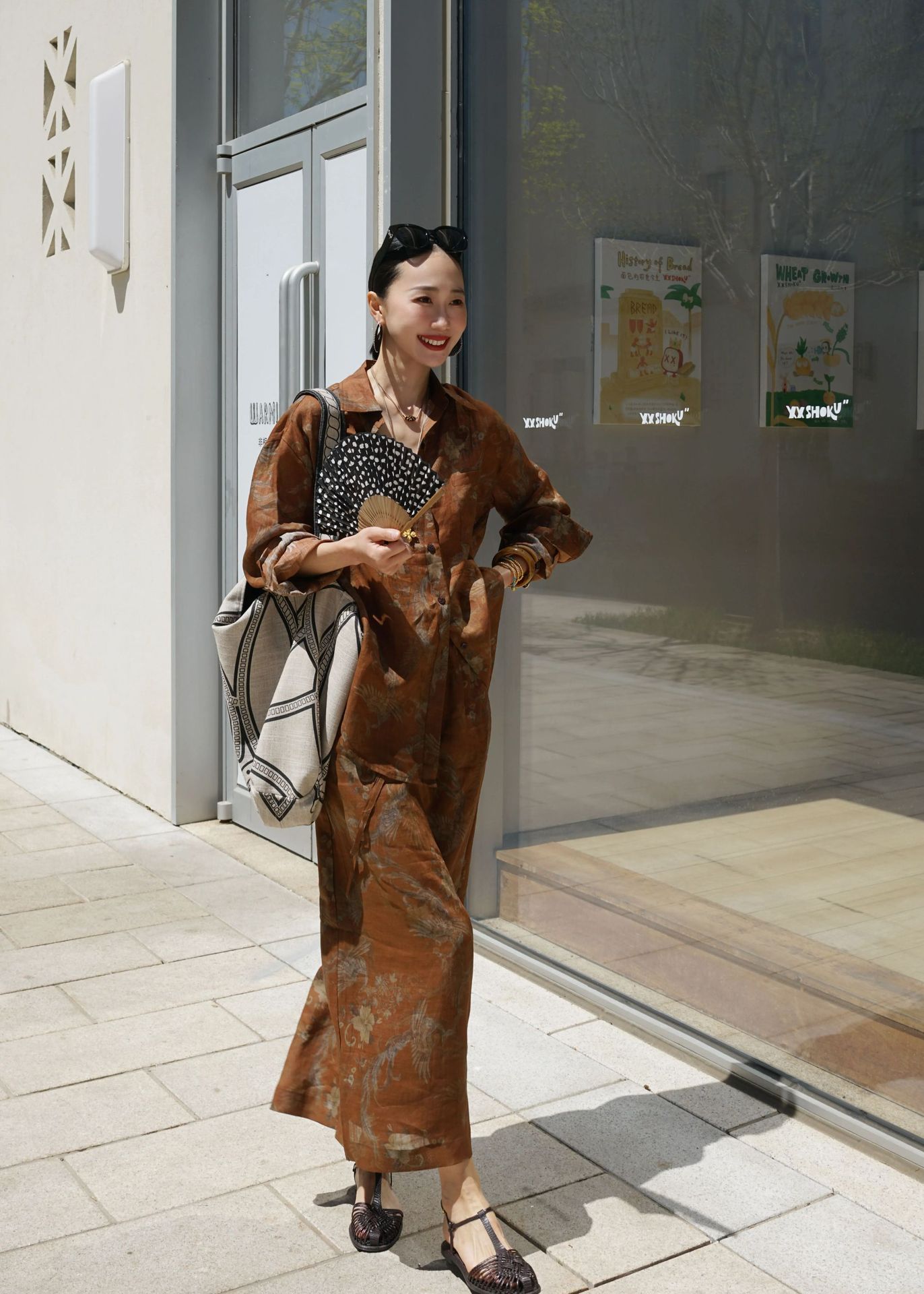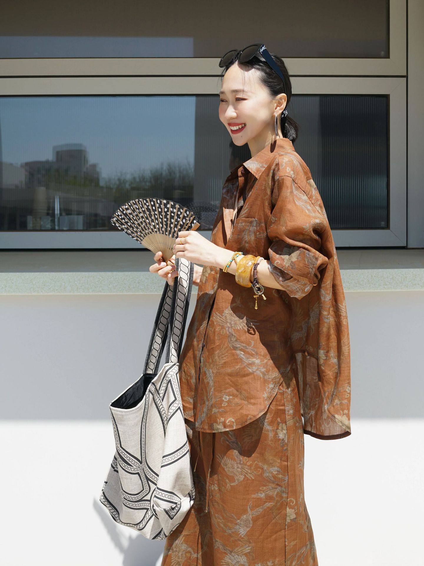 브라운 프린트 슈트