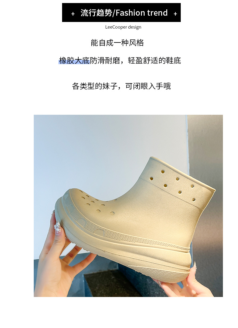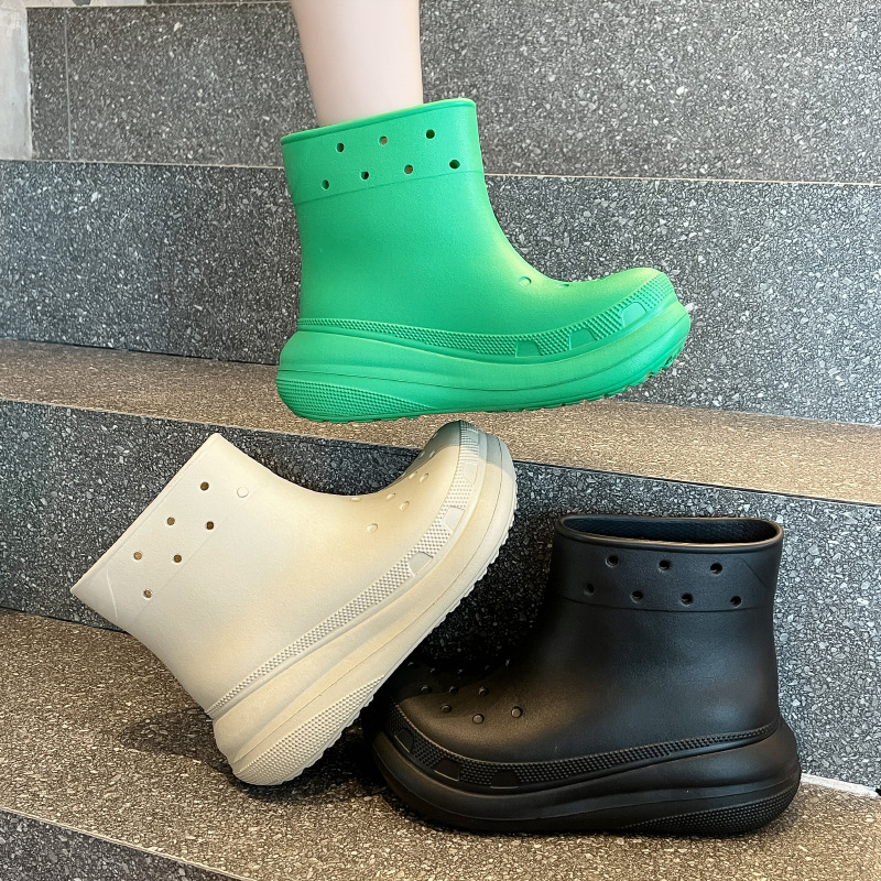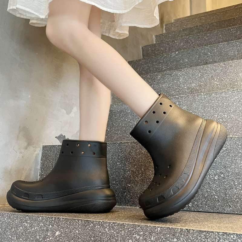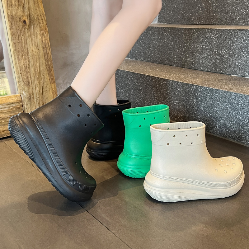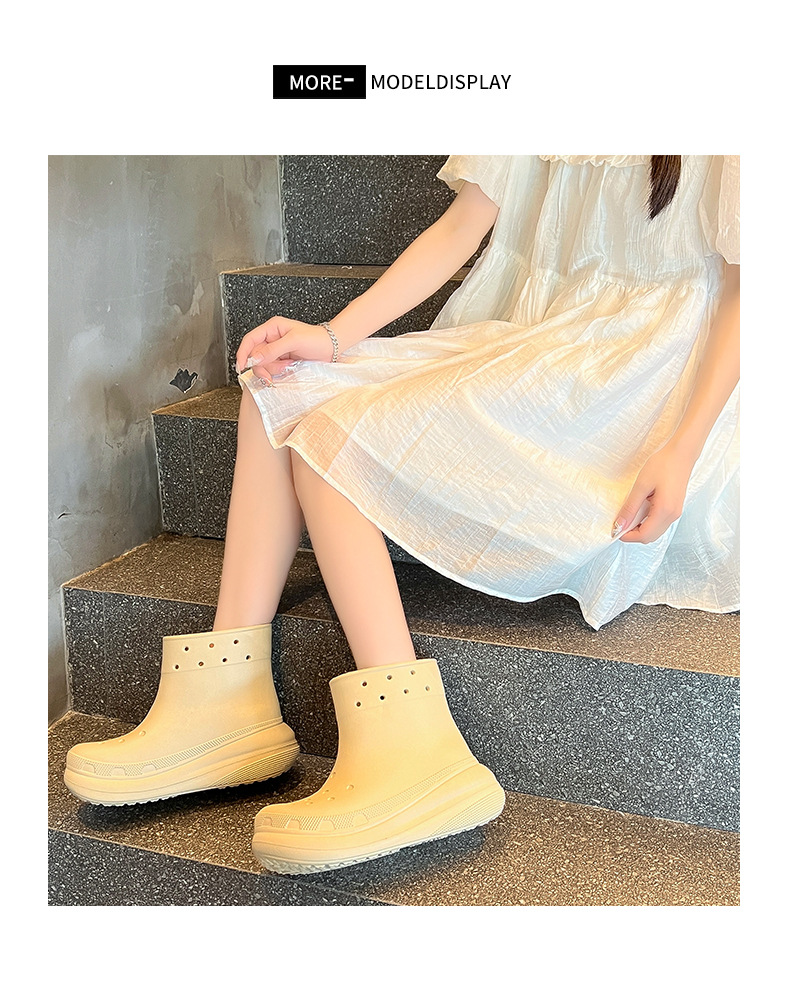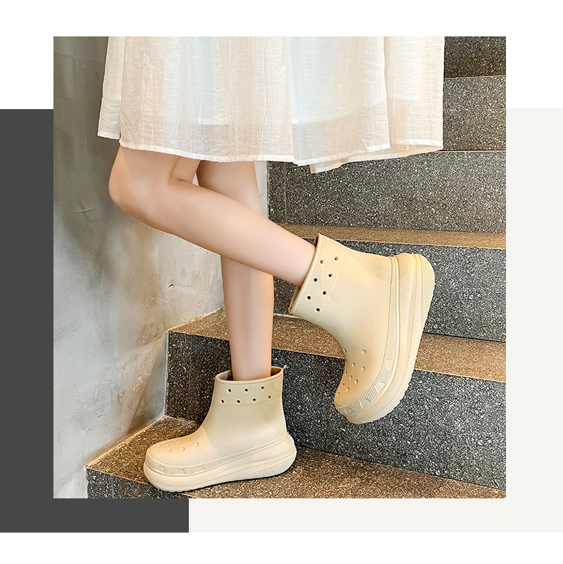 두꺼운 밑창의 편안한 EVA 소재 여성용 숏 레인부츠, 미끄럼 방지 레인부츠, 데일리 통근용 아웃도어 레인부츠