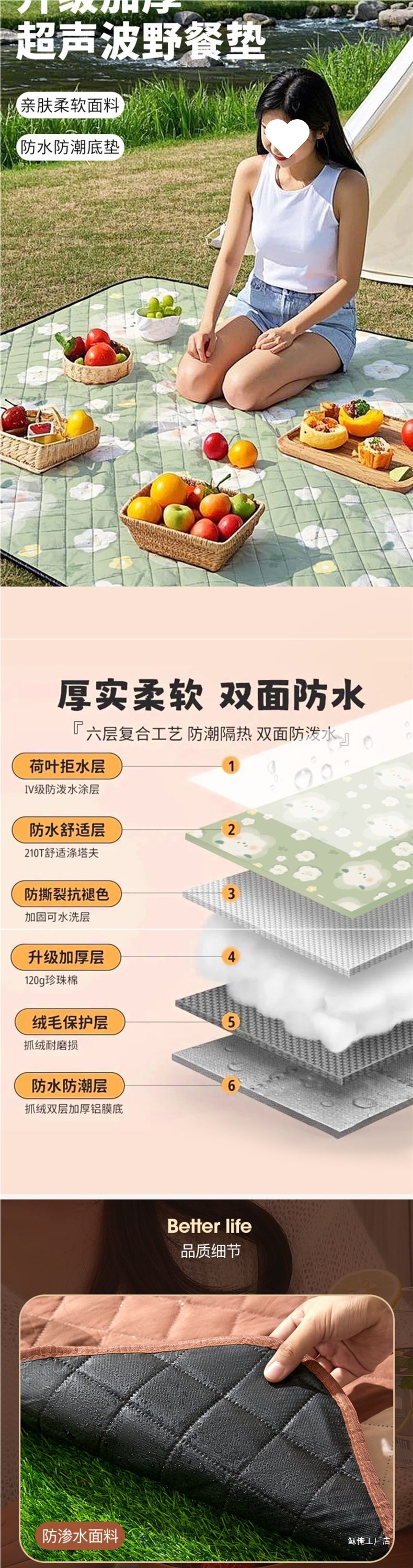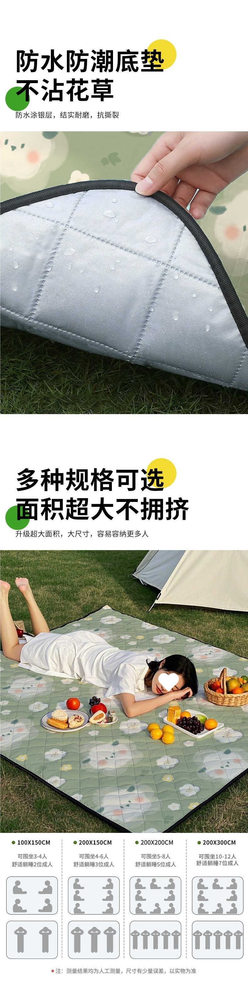 초대형 3m 초음파 피크닉 매트 방습 매트 두꺼운 야외 캠핑 매트 쿠션 비치 매트 휴대용 바닥 매트