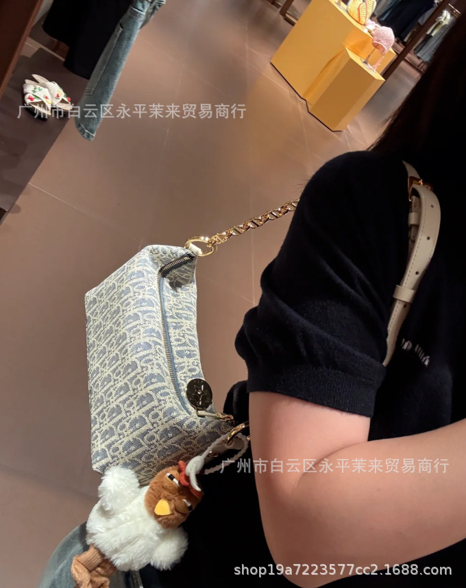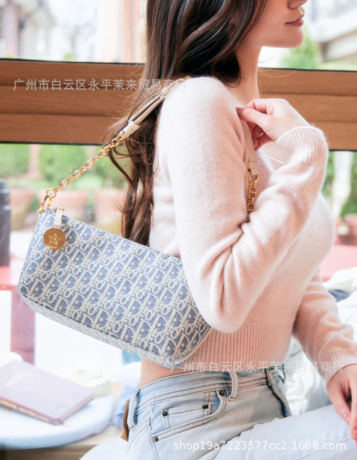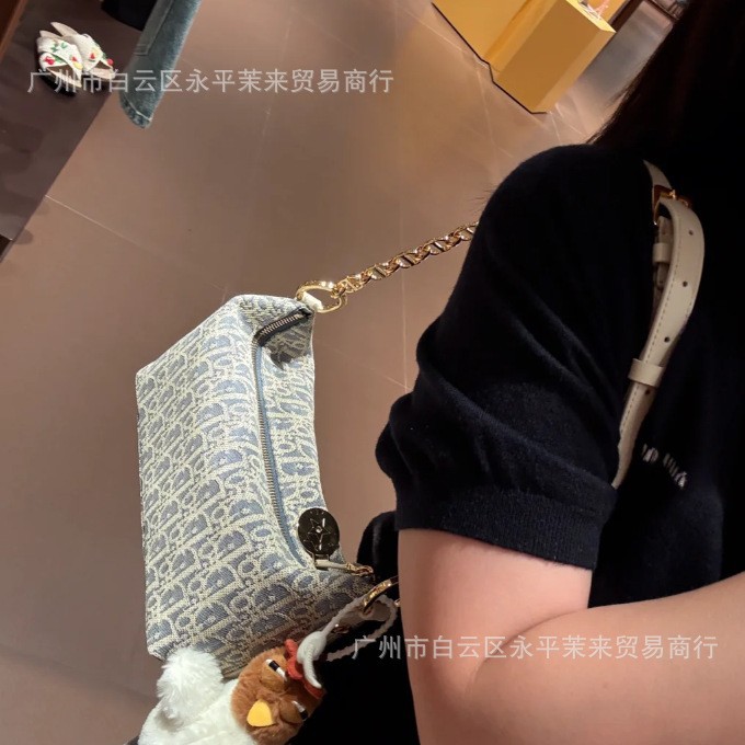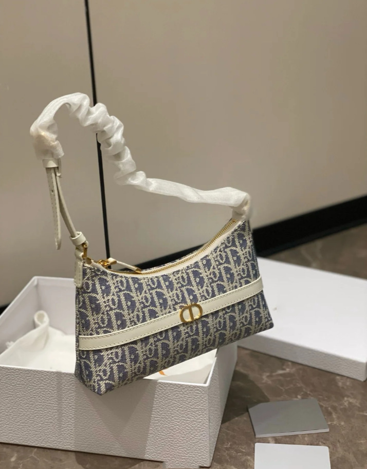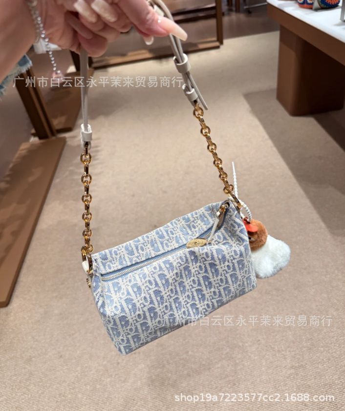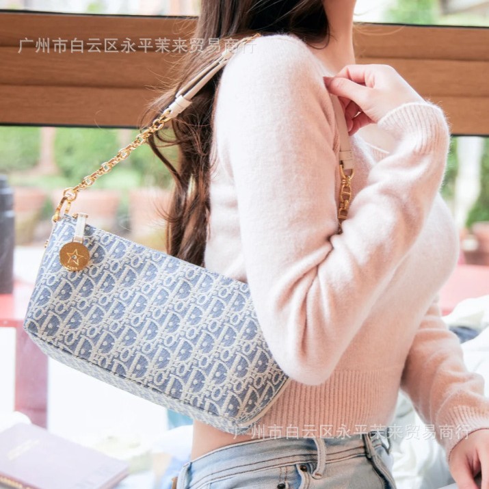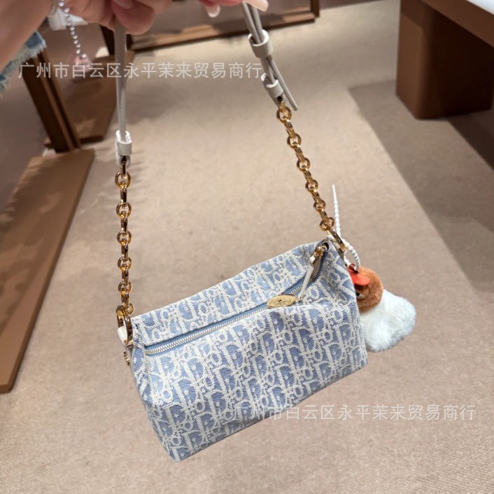 Diaojia 코코넛 스트로 라인 자수 호보 체인 겨드랑이 파란색과 흰색 노안 캔버스 도시락 가방 패션 도시락 가방 크로스보더