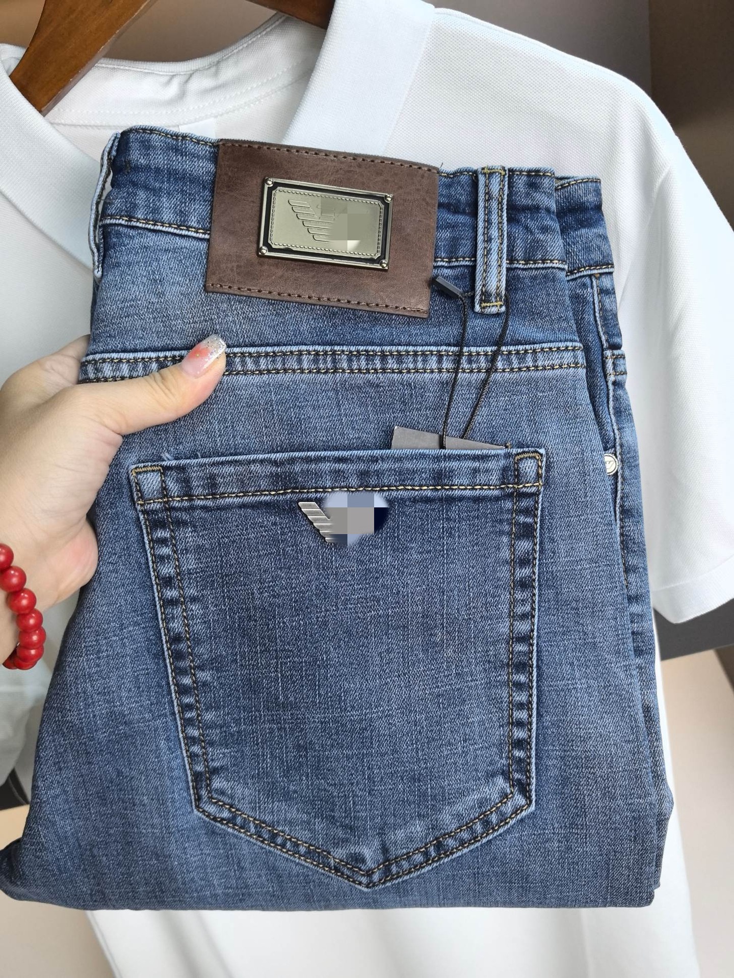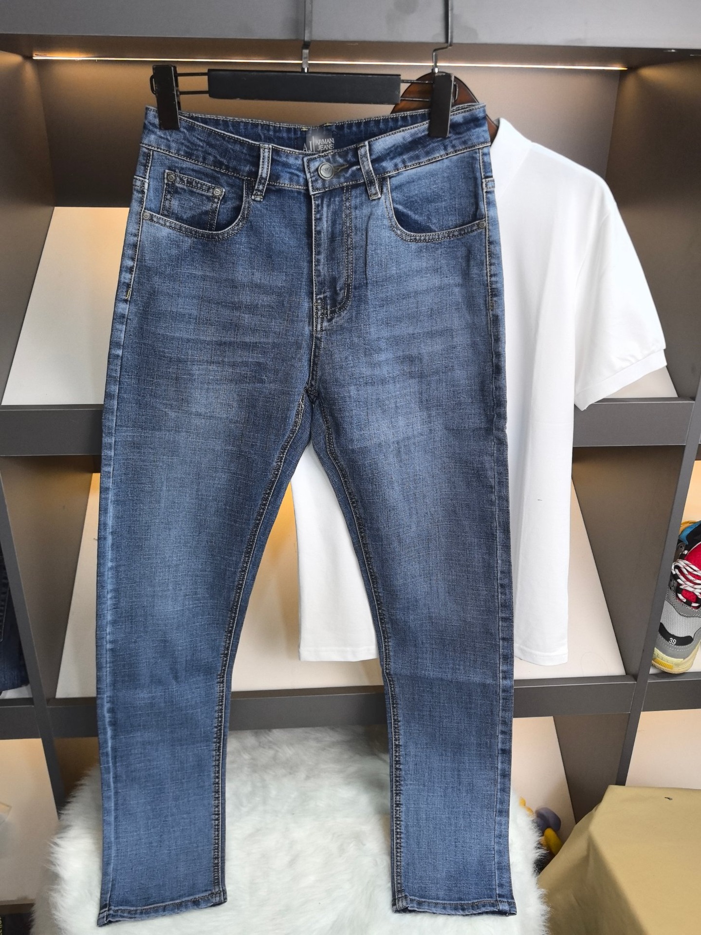 Old Eagle 하이 엔드 유럽 남성 청바지 블루 사계절 향수 스트레치 워시 슬림 스몰 스트레이트 남성 바지